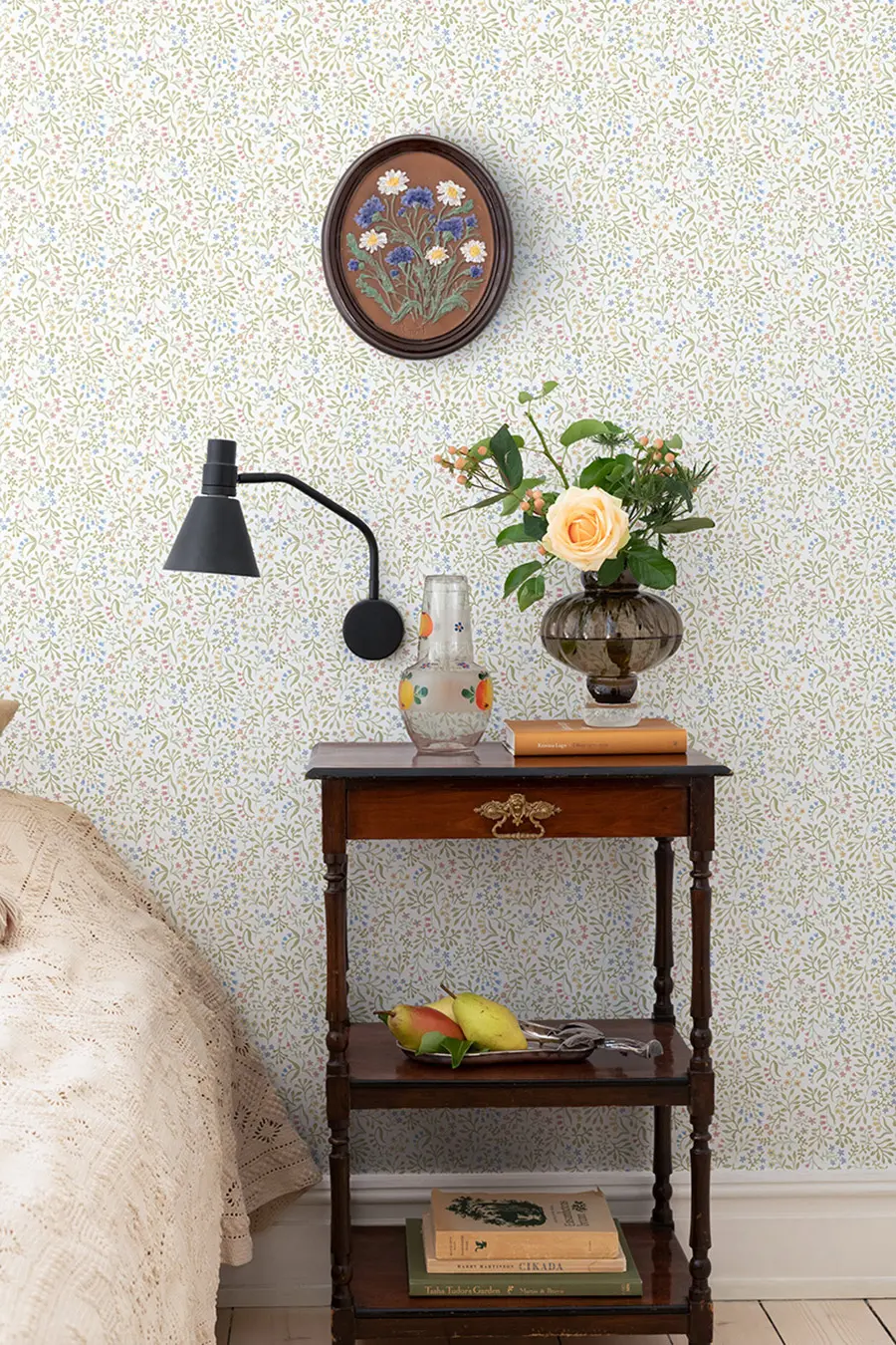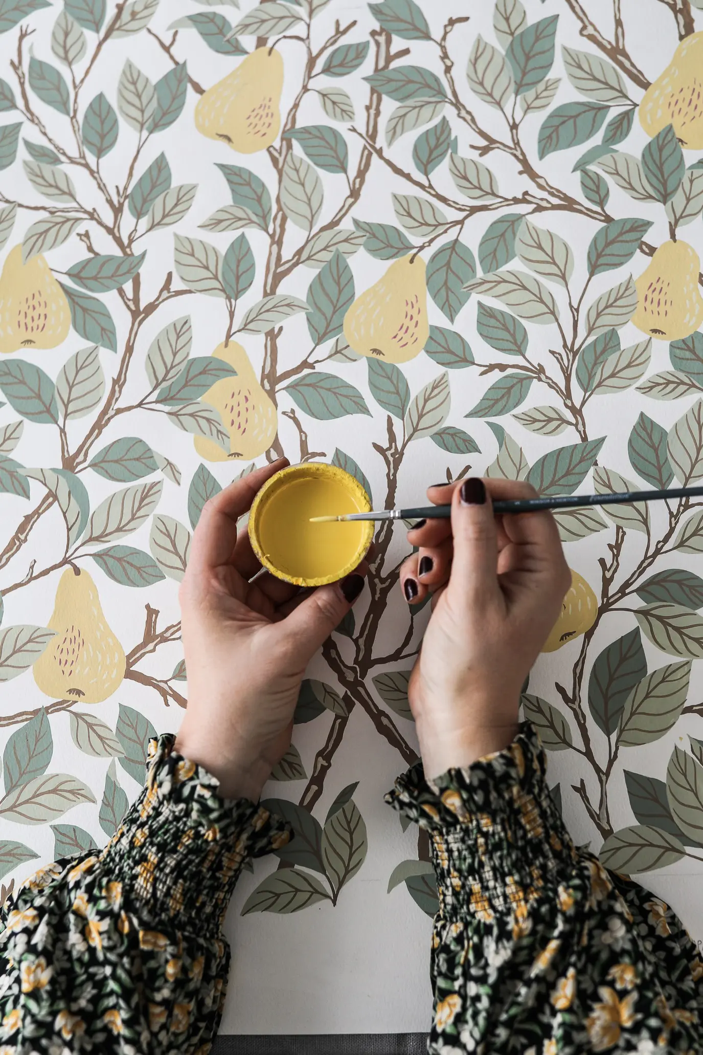 De Agnas collectie van het Zweedse Midbec zit vol verfijnde en gedetailleerde bloemen. Deze bloemenprints zijn altijd subtiel en warm, vaak getekend in kleurtinten die naast elkaar liggen. En ze hebben ook prachtig behang met een print van een perenboom. Een subtiele toevoeging aan de kinderkamer!