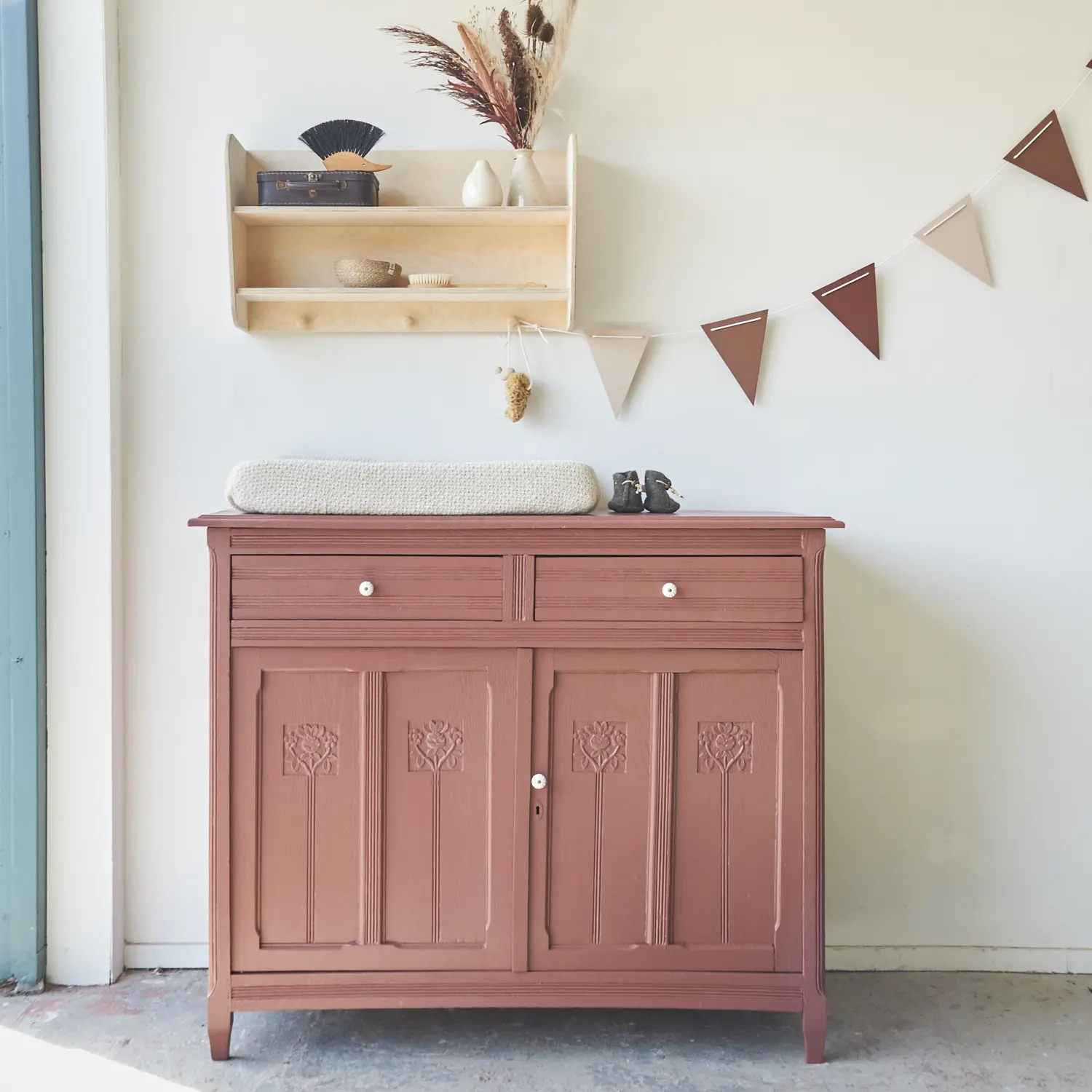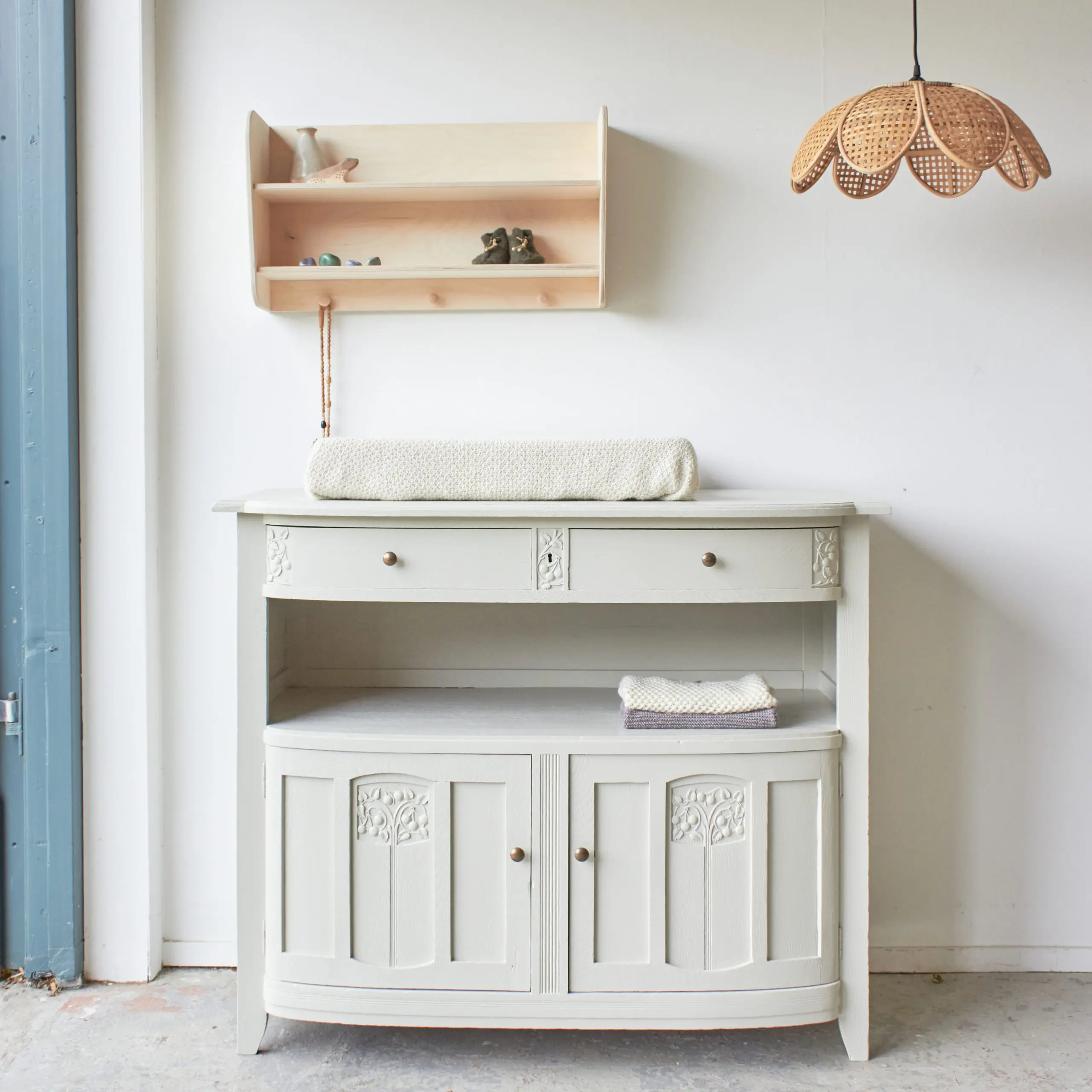 Een fijne, zacht vloerkleed onder je commode is ook iets wat eigenlijk niet kan ontbreken. Het staat niet alleen heel mooi, het is ook heerlijk om op te staan tijdens het verschonen van je kindje.