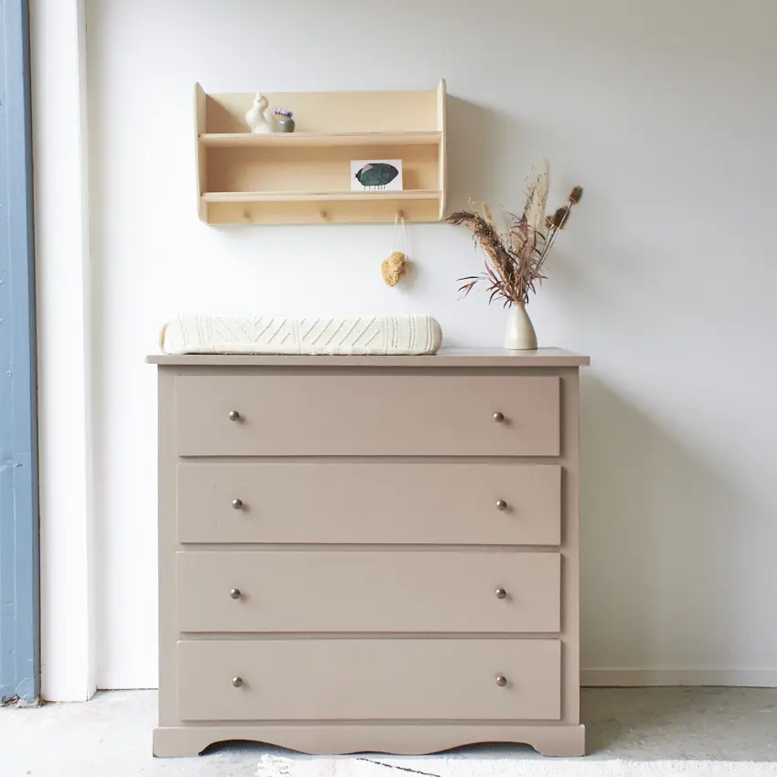 Het kan natuurlijk zijn dat je geen ruimte hebt voor een grote commode en gedwongen bent om een klein formaat aan te schaffen. Je verzorgingsproducten en spulletjes kan je dan misschien niet op de commode zelf kwijt, maar je kan wel ruimte creëren door bijvoorbeeld ons wandplankje boven de commode te hangen.