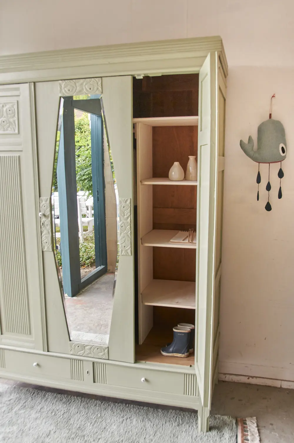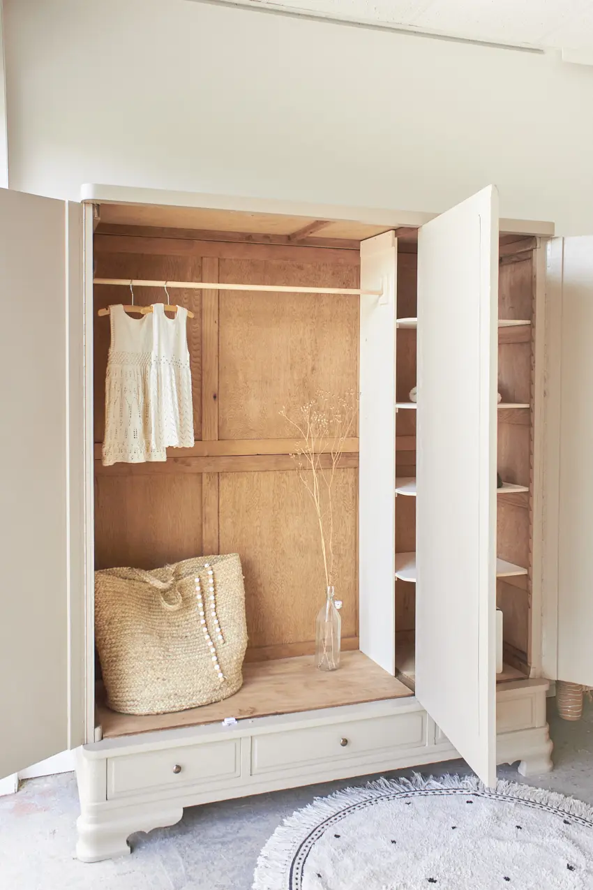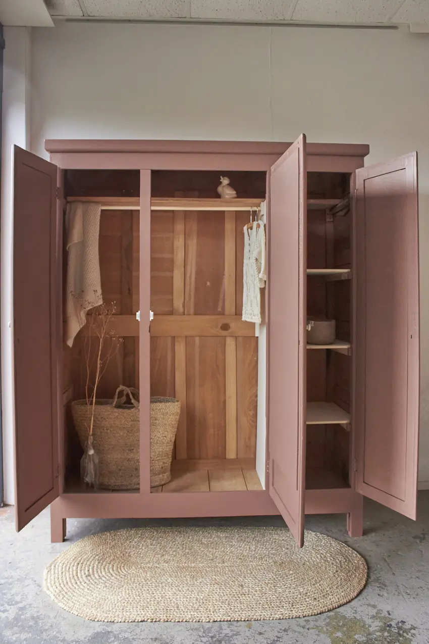 De indeling voor deze kast kunnen we naar wens voor je maken. Wil je alleen planken, of een combinatie van een roede met planken?