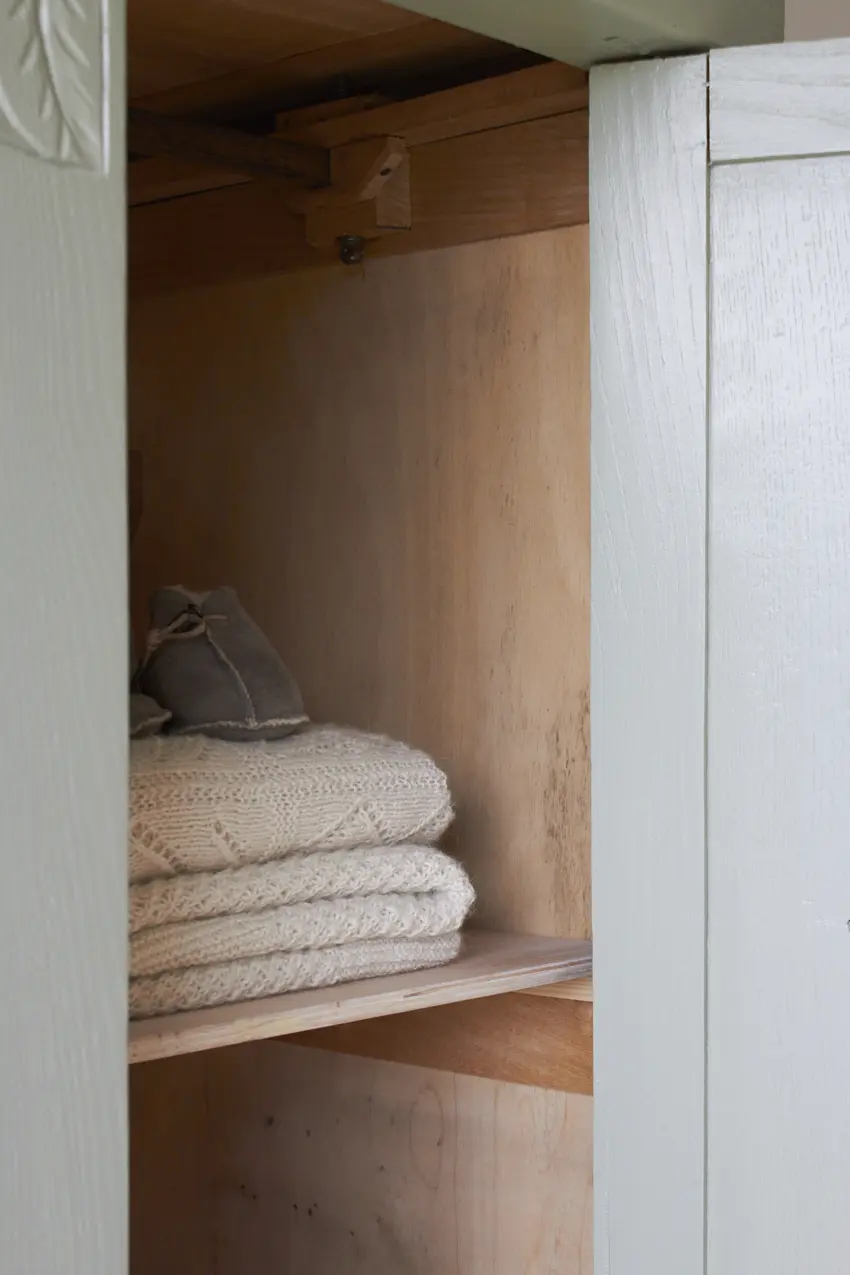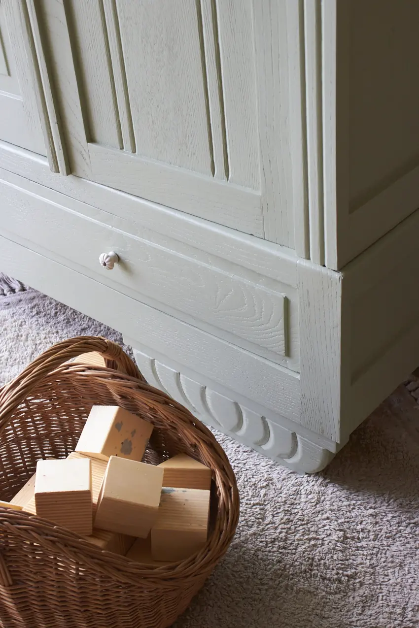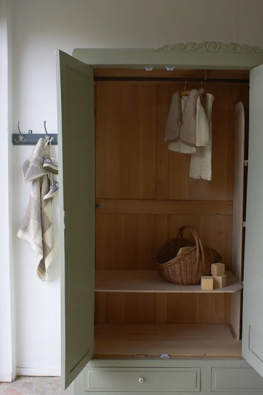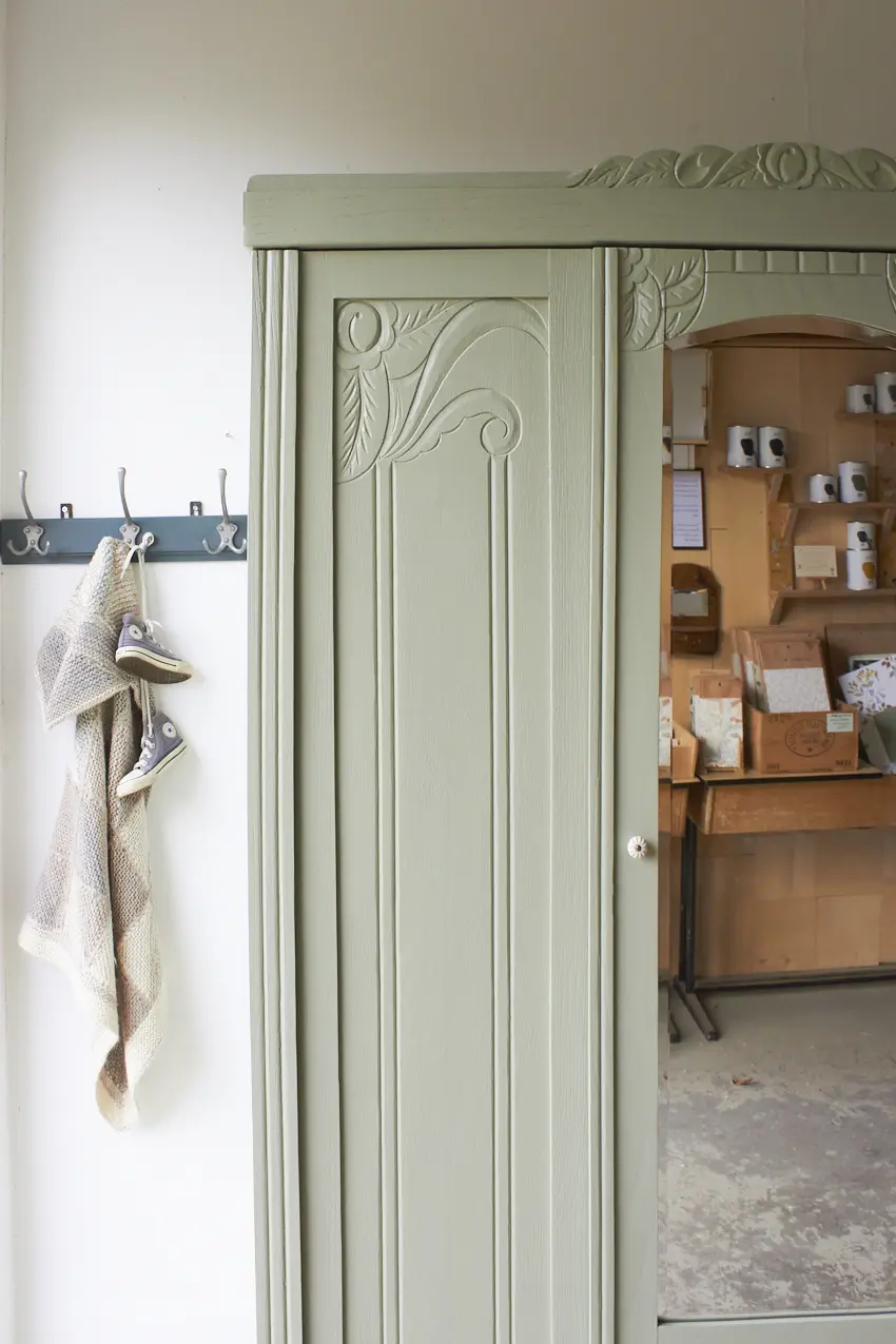 We hebben voor deze prachtige kast gekozen voor onze kleur Artisjok. Artiskok is zo’n mooie, kalme kleur. Als je een meubel in de kleur Artisjok schildert, past het overal bij. Dat zijn de wetten van de natuur, leerde ik ooit van Liselot van Studio HEM. Natuurlijke groentinten kunnen met alles. Een allemansvriend, maar wel een kleur met karakter.