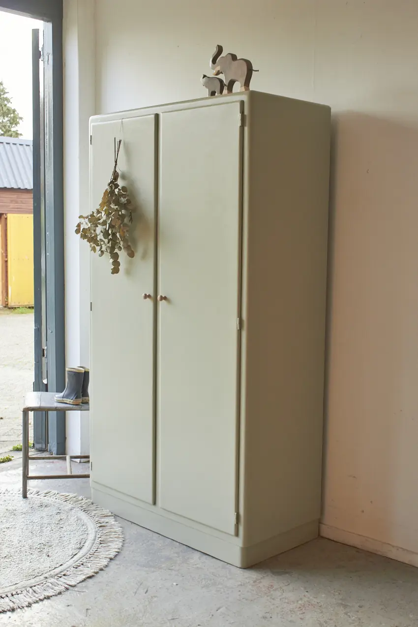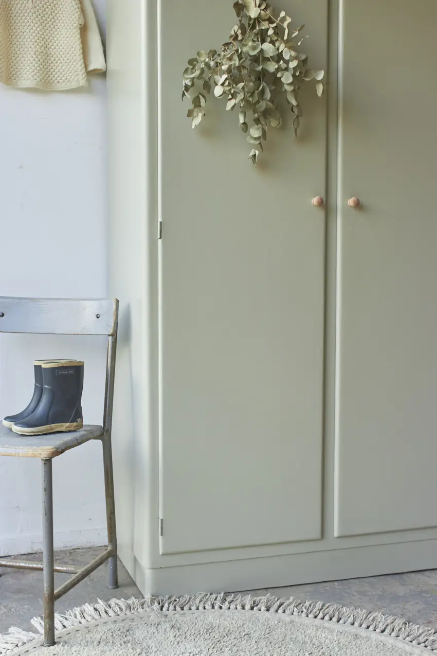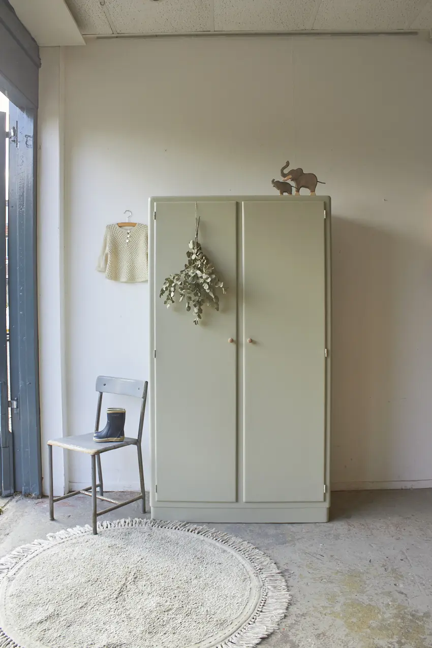 Het is een kast die overal in huis wel kan staan. In de keuken voor servies en kookboeken of in de woonkamer voor spelletjes en knutselspullen. Of op de kinderkamer, we maken met liefde nog een roede er in voor baby kleertjes. Na de grondverf laag kozen we voor onze kleur Voorjaar. Wat zijn we blij met deze kleur! Ook op deze kast staat hij weer zo mooi, samen met de houten knopjes. Helemaal klaar voor een nieuwe plek.