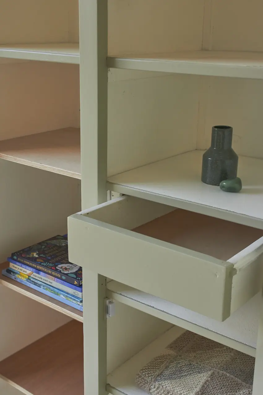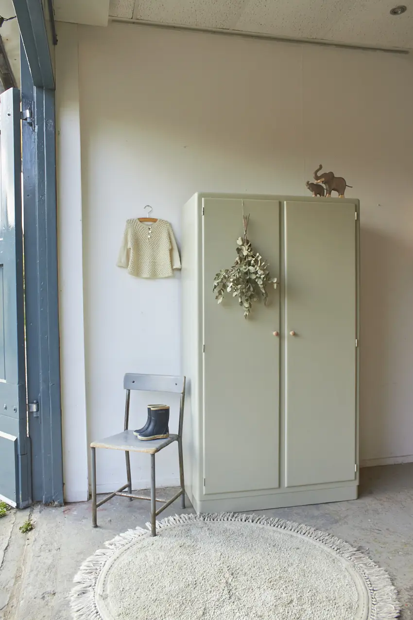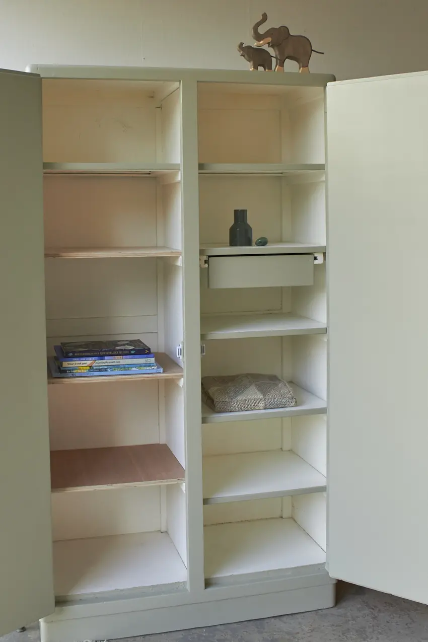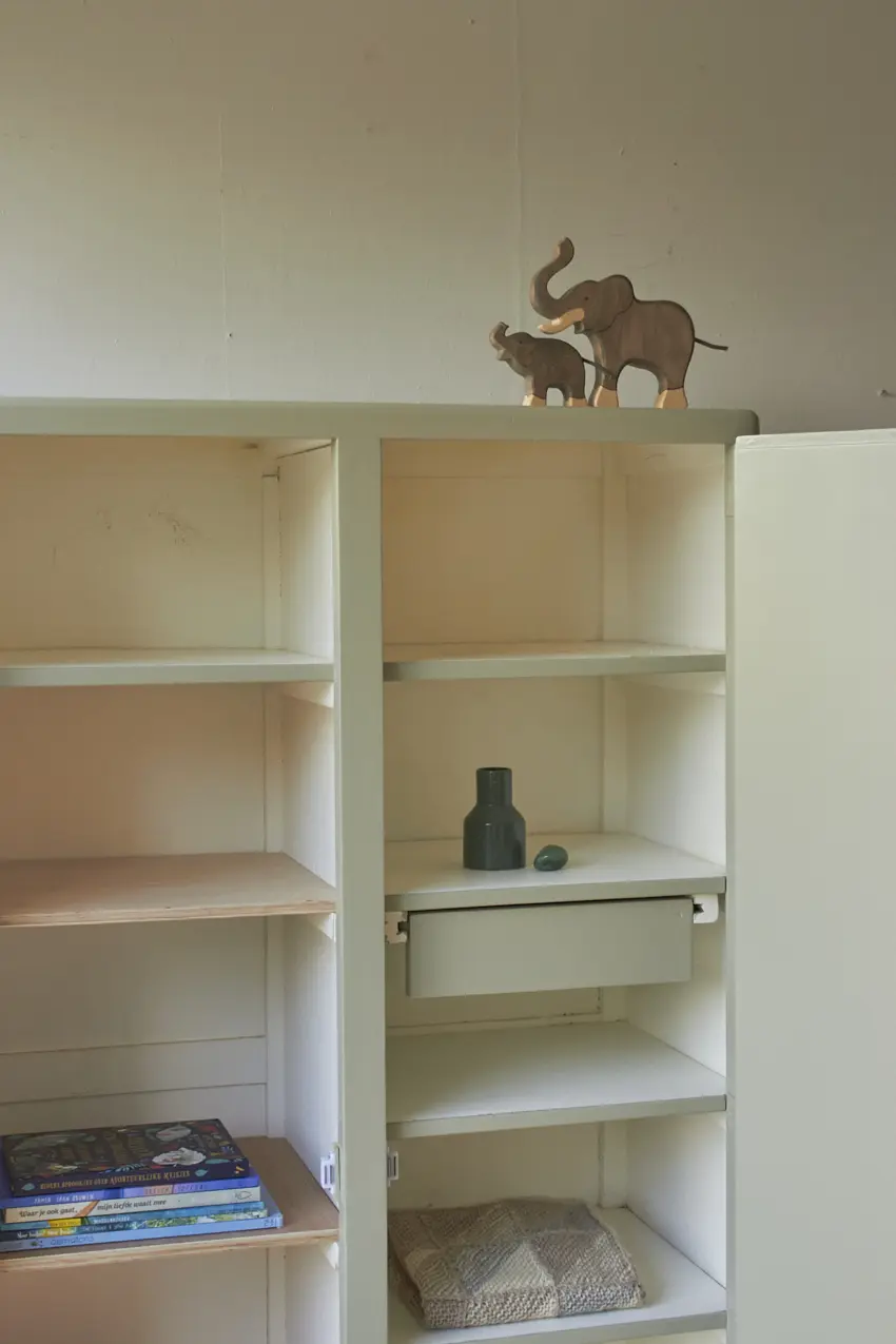 Het is een kast die overal in huis wel kan staan. In de keuken voor servies en kookboeken of in de woonkamer voor spelletjes en knutselspullen. Of op de kinderkamer, we maken met liefde nog een roede er in voor baby kleertjes. Na de grondverf laag kozen we voor onze kleur Voorjaar. Wat zijn we blij met deze kleur! Ook op deze kast staat hij weer zo mooi, samen met de houten knopjes. Helemaal klaar voor een nieuwe plek.