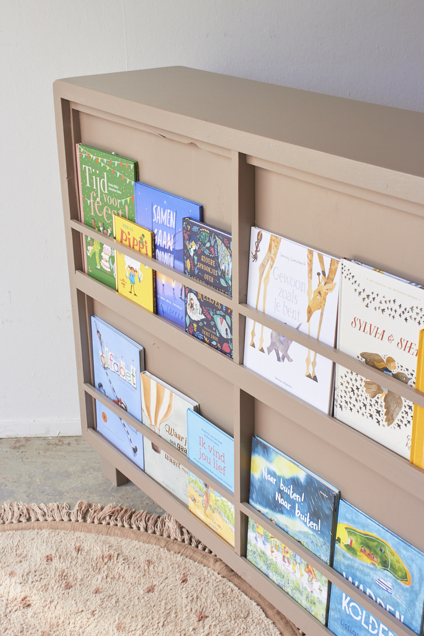 Zo speels, al die deurtjes en lades en met in het midden een open vak. Nu is dit fijne retro meubel perfect om het speelgoed in op te bergen. En een verassing, de achterkant kan je ook gebruiken voor boekjes, tijdschriften of de krant. Deze kast kan eigenlijk op heel veel plekken nu staan. In de woonkamer lijkt ons helemaal te gek, als afscheiding, of in de keuken. Maar in de kinderkamer natuurlijk helemaal fijn.