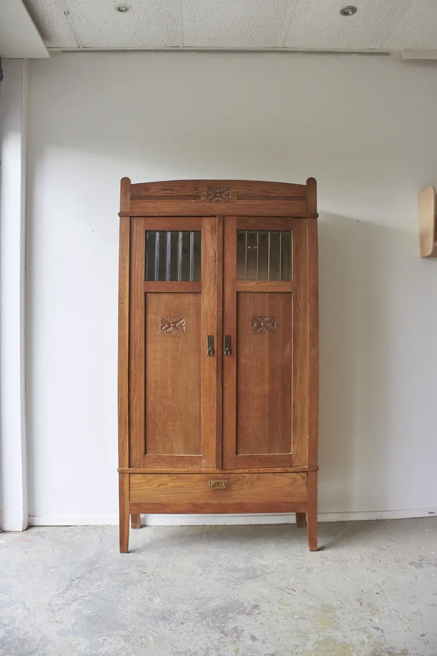 Een prachtig vintage meubel, demontabel en een heel fijn formaat, ze zal geweldig zal staan op de kinderkamer of natuurlijk in de woonkamer voor alle spelletjes. Deze kast is helemaal naar jouw wens samen te stellen! Let op er zit een ster in twee geslepen ruitjes. We kunnen het glas ook vervangen voor een houten paneel.