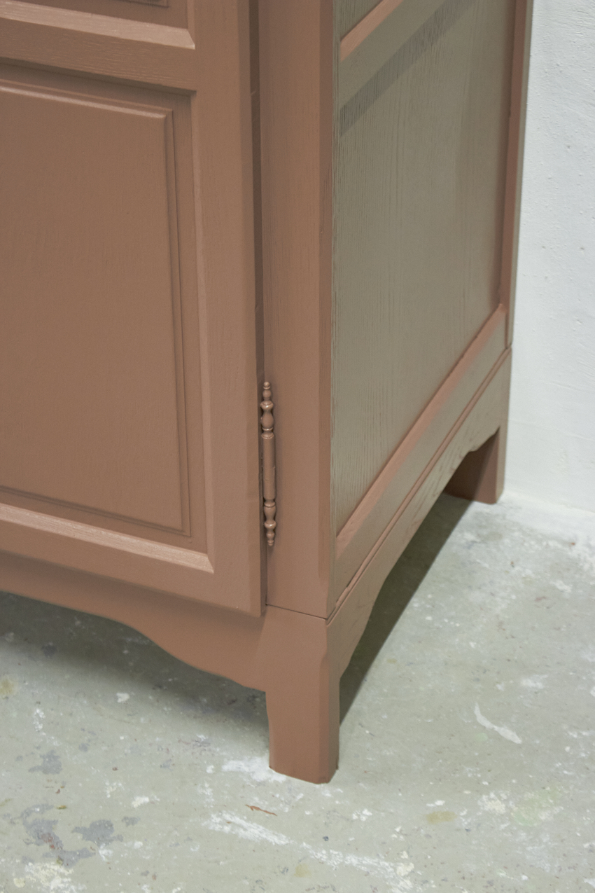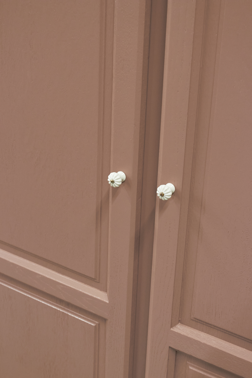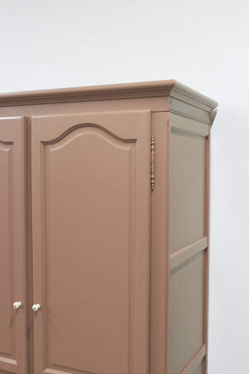 Deze vintage demontabele kledingkast is uitgevoerd in onze eigen kleur Vijg, een tint waar we elke keer weer blij van worden. Dit type kast hebben we vaker in huis; stuk voor stuk uniek, met hun eigen karakter. Dit exemplaar heeft het perfecte formaat voor een kinderkamer. De kast is heerlijk diep, waardoor je verrassend veel kleding kunt opbergen. Praktisch én mooi. En je kan bovenop een mooie lamp of riete manden plaatsen.