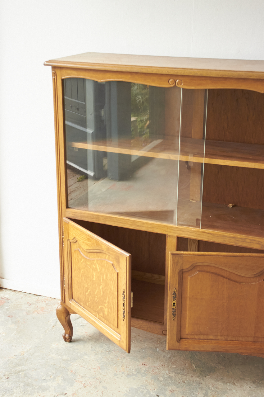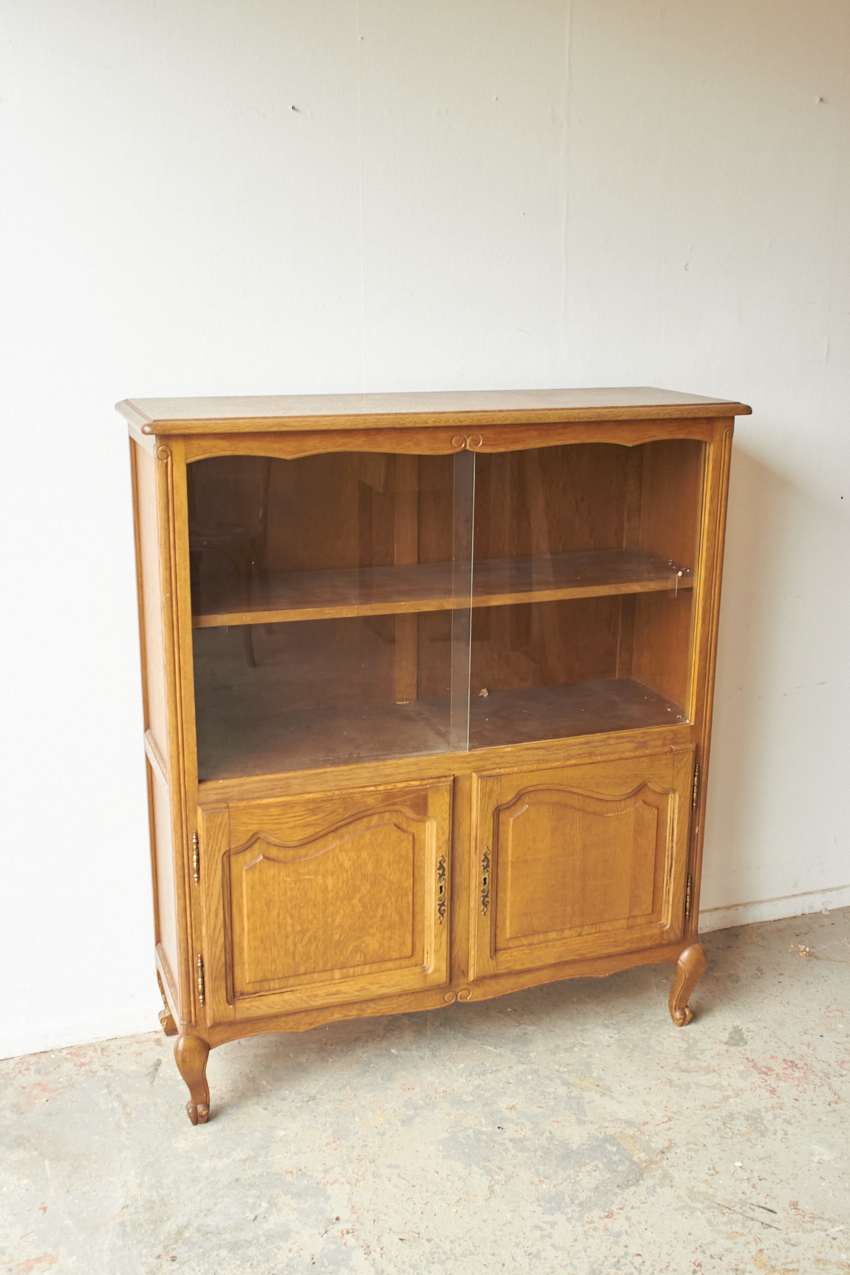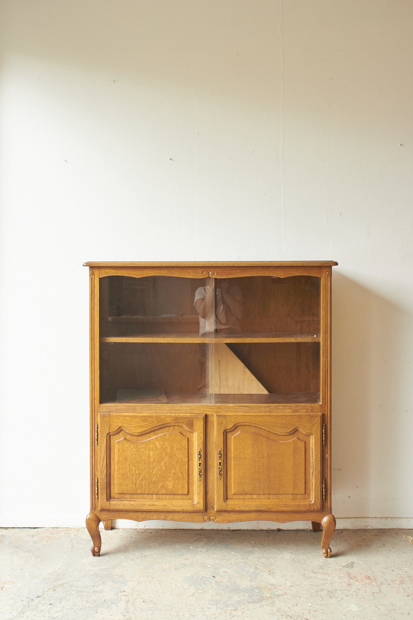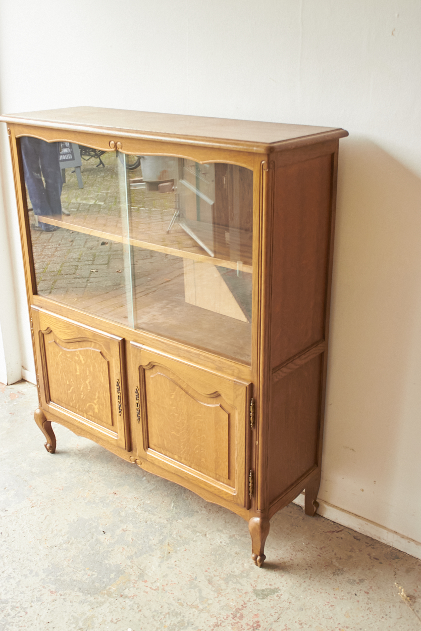 Wat een leuk meubel is dit, een klein vintage vitrine kastje! Deze kast is perfect om mooi servies, boeken of andere schatten in uit te stallen. We kunnen eventueel het glas vervangen voor houten panelen. Deze vitrinekast is helemaal naar jouw wens samen te stellen.