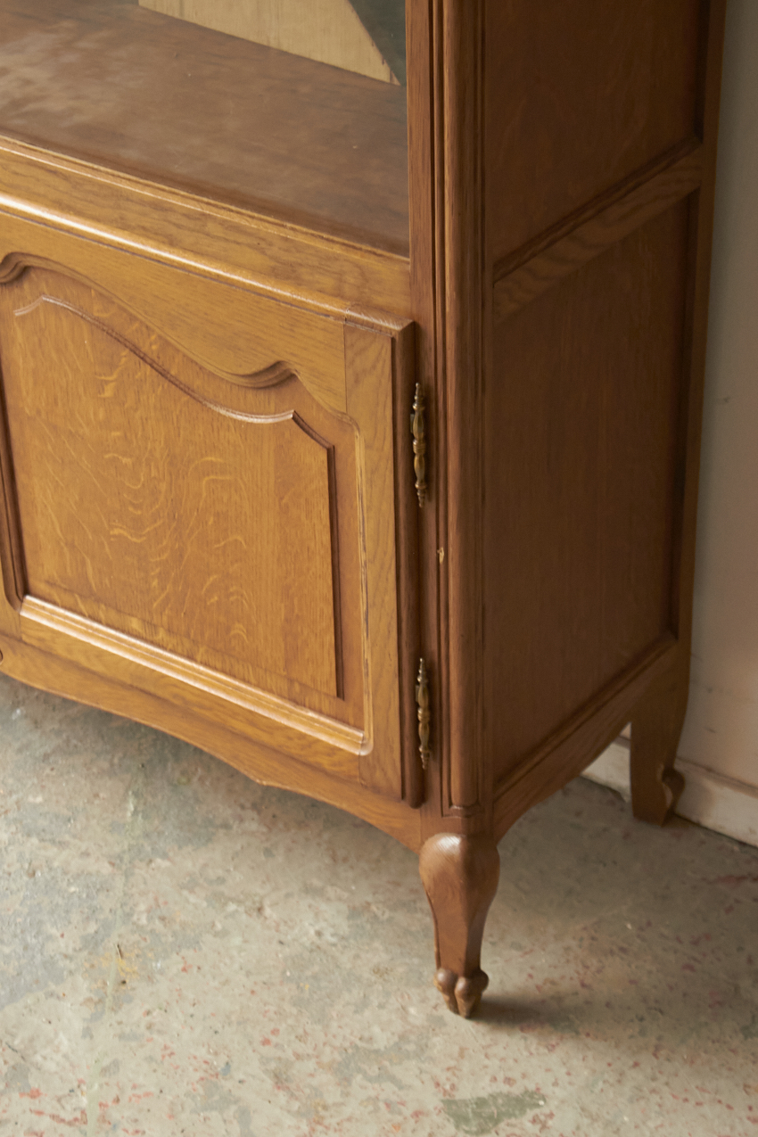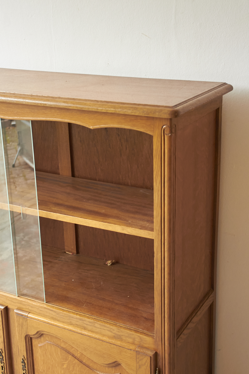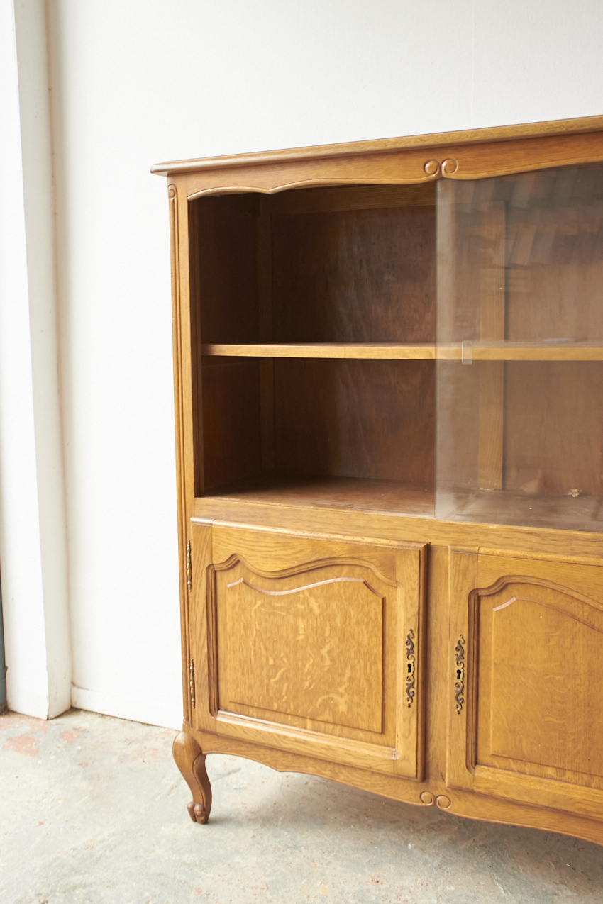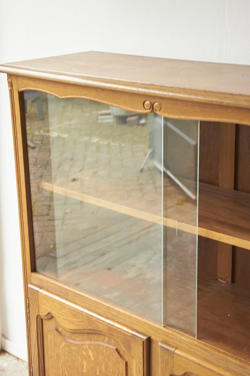 Wat een leuk meubel is dit, een klein vintage vitrine kastje! Deze kast is perfect om mooi servies, boeken of andere schatten in uit te stallen. We kunnen eventueel het glas vervangen voor houten panelen. Deze vitrinekast is helemaal naar jouw wens samen te stellen.