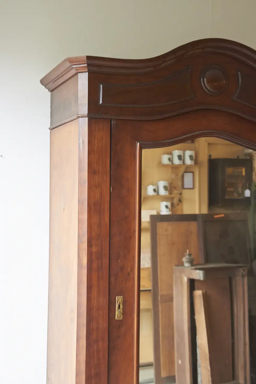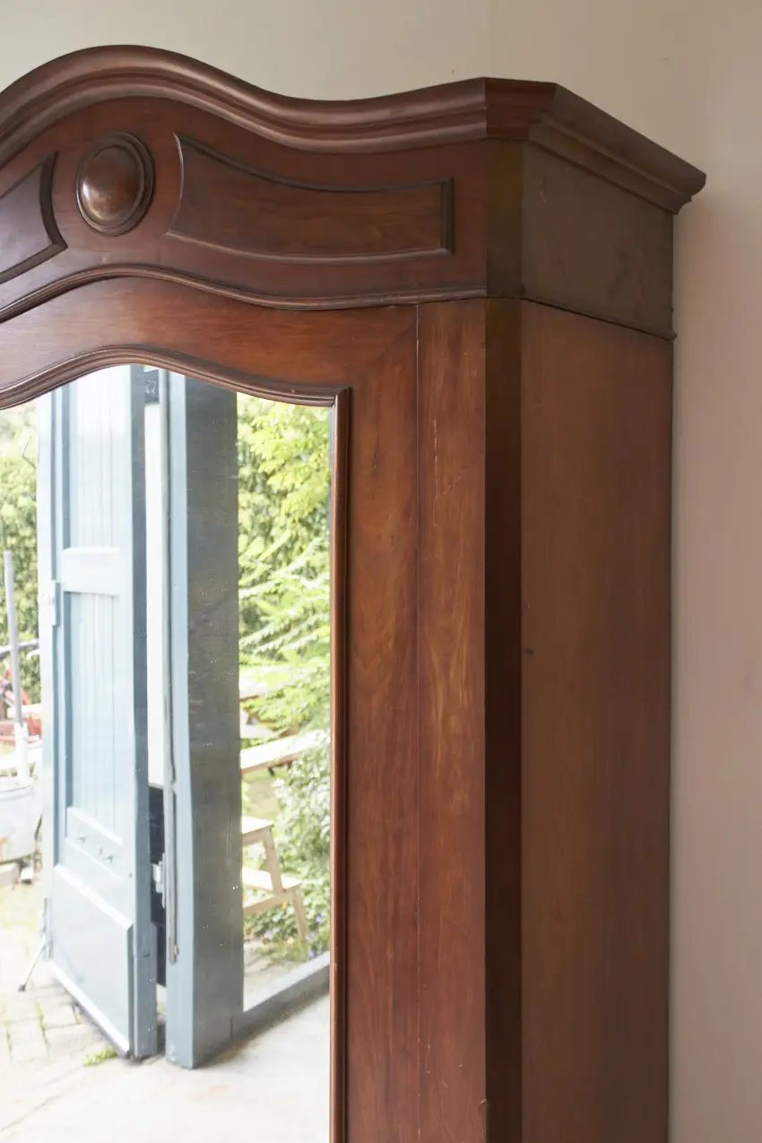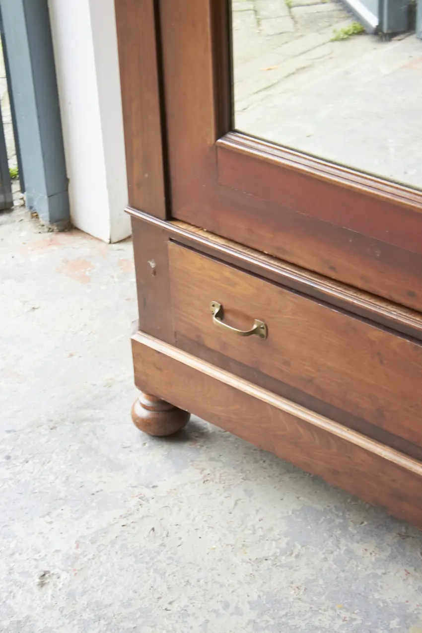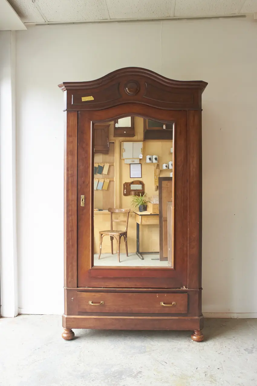 Wat een prachtig meubel! Met een vintage spiegel is dit een perfecte kledingkast voor op de slaapkamer of voor in de hal. We kunnen niet wachten om dit meubel op te knappen. De spiegel kan eventueel vervangen worden voor hout, zodat het een stijlvolle paneeldeur wordt.