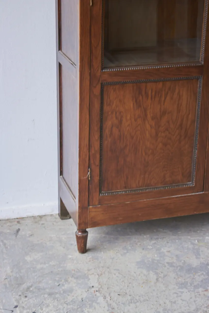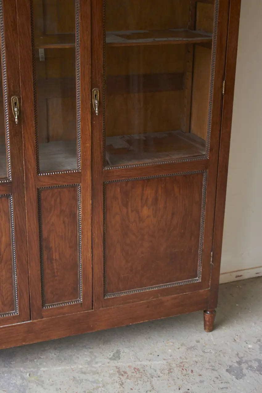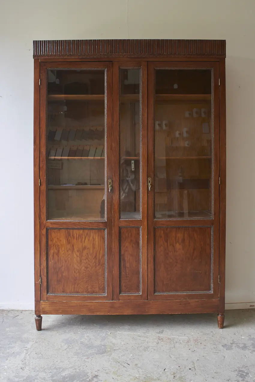 Wat een prachtige vitrinekast! En die houten sierlijsten! Deze kast is perfect om mooi servies, boeken of andere schatten in uit te stallen. Met zijn 37 cm diep is het een kast die tegen elk stuk kale muur past. Twee deuren en een tussenstuk met ook een glazen paneeltje, wauw. Deze kast is helemaal naar jouw wens op te knappen en samen te stellen. We kunnen eventueel het glas vervangen voor houten panelen.