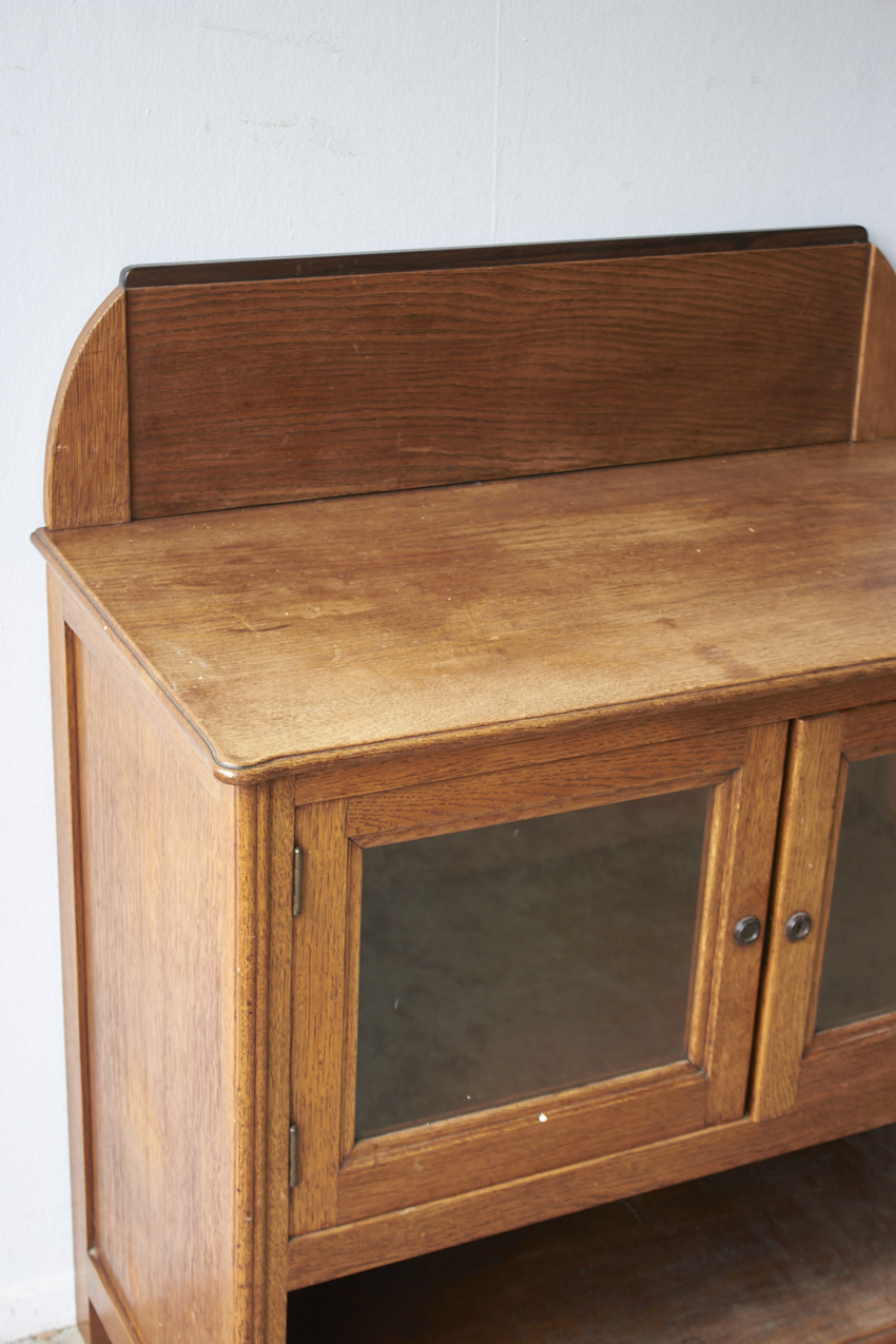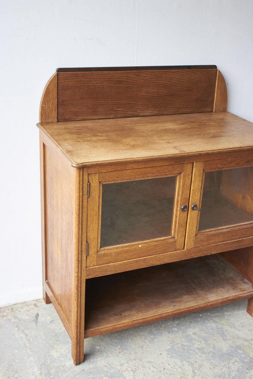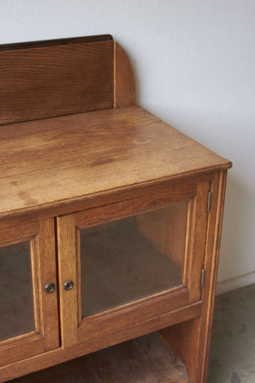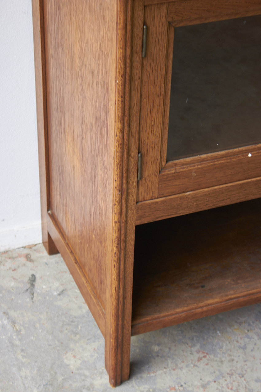 Dit vitrinekastje kwam bij ons, vanuit Zeeland. Wat zijn we er blij mee. Wat een leuk meubel is dit, een klein vintage vitrine kastje! Deze kast is perfect om mooi servies, boeken of andere schatten in uit te stallen. We kunnen eventueel het glas vervangen voor houten panelen. Deze vitrinekast is helemaal naar jouw wens samen te stellen en zelfs aan te passen zodat deze ook als commode zou kunnen dienen. Denk hierbij aan het verhogen van de pootjes, het plaatsen van een extra vak boven of juist onderaan de kast.