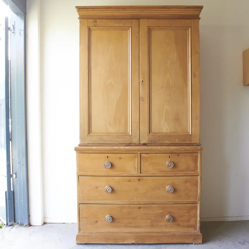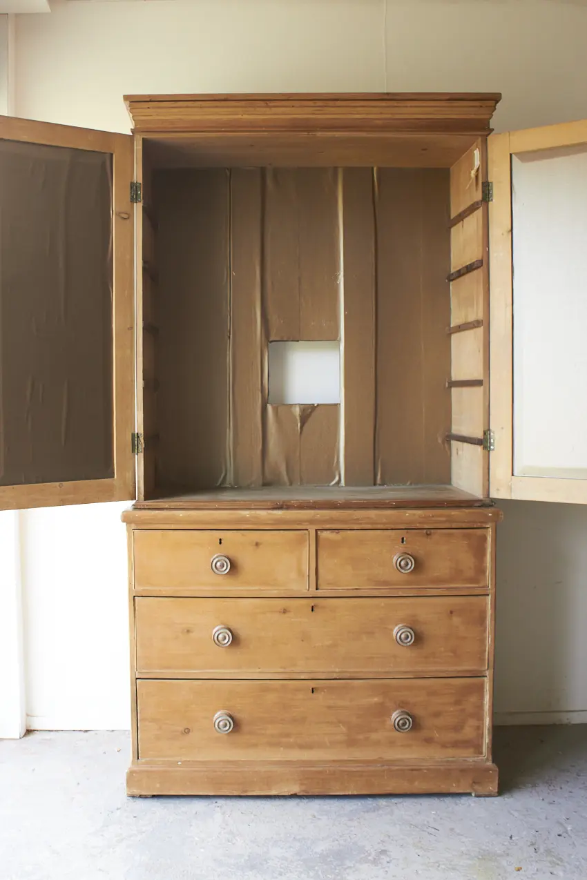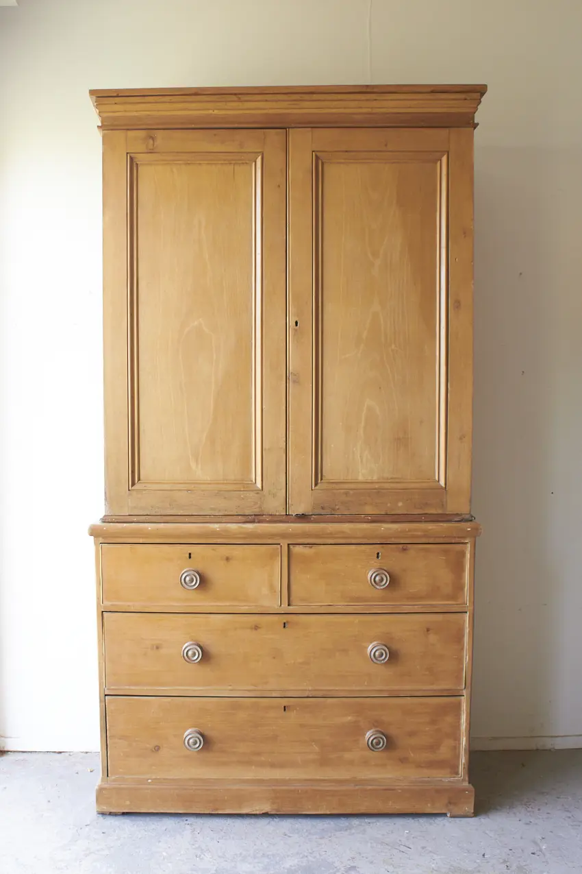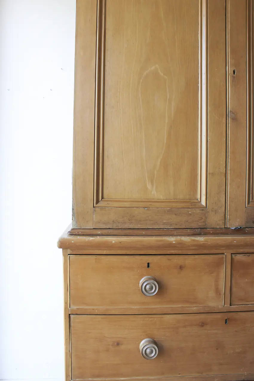Deze tweedelige kast bestaat uit een stevige ladekast met brede diepe lades en hebben we nu opgeknapt voor onze winkel.