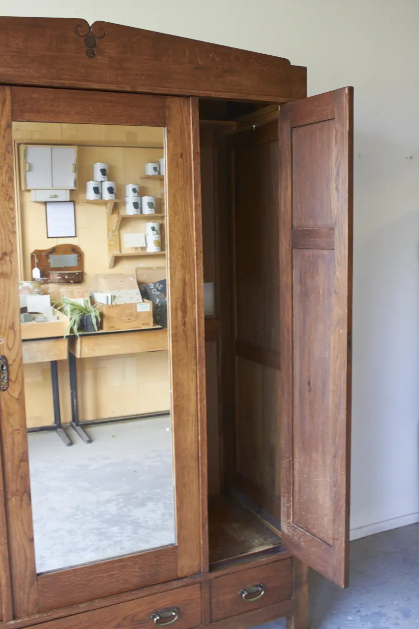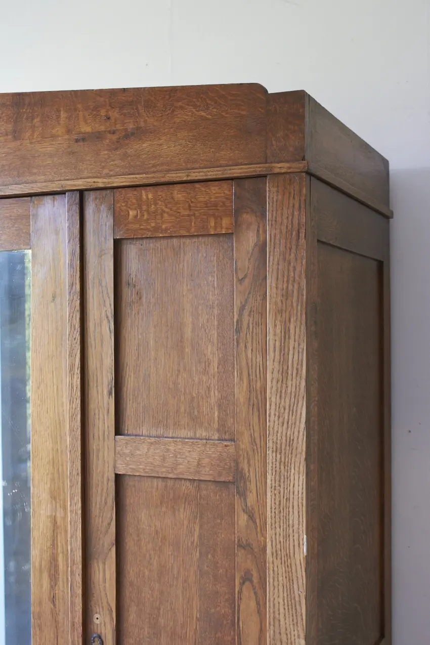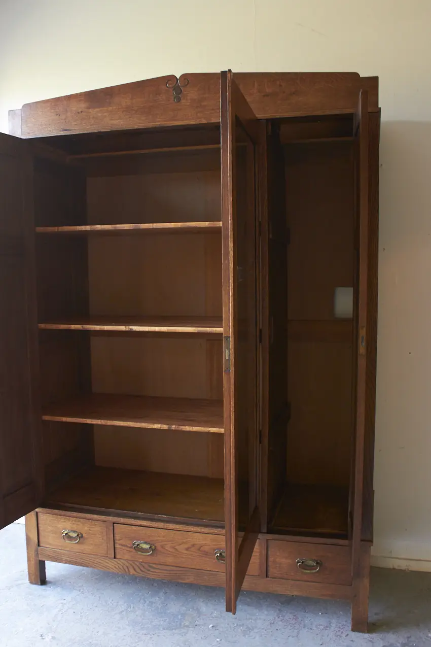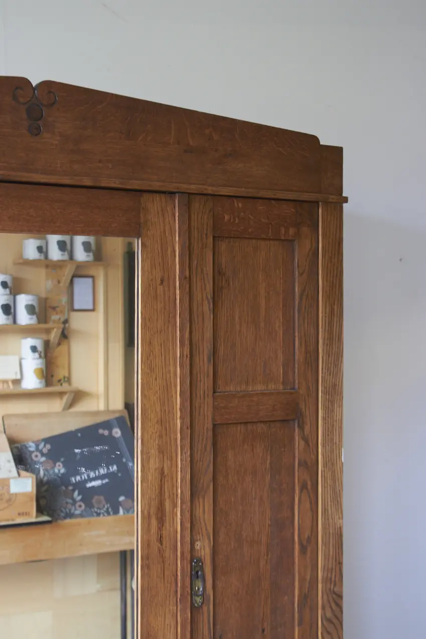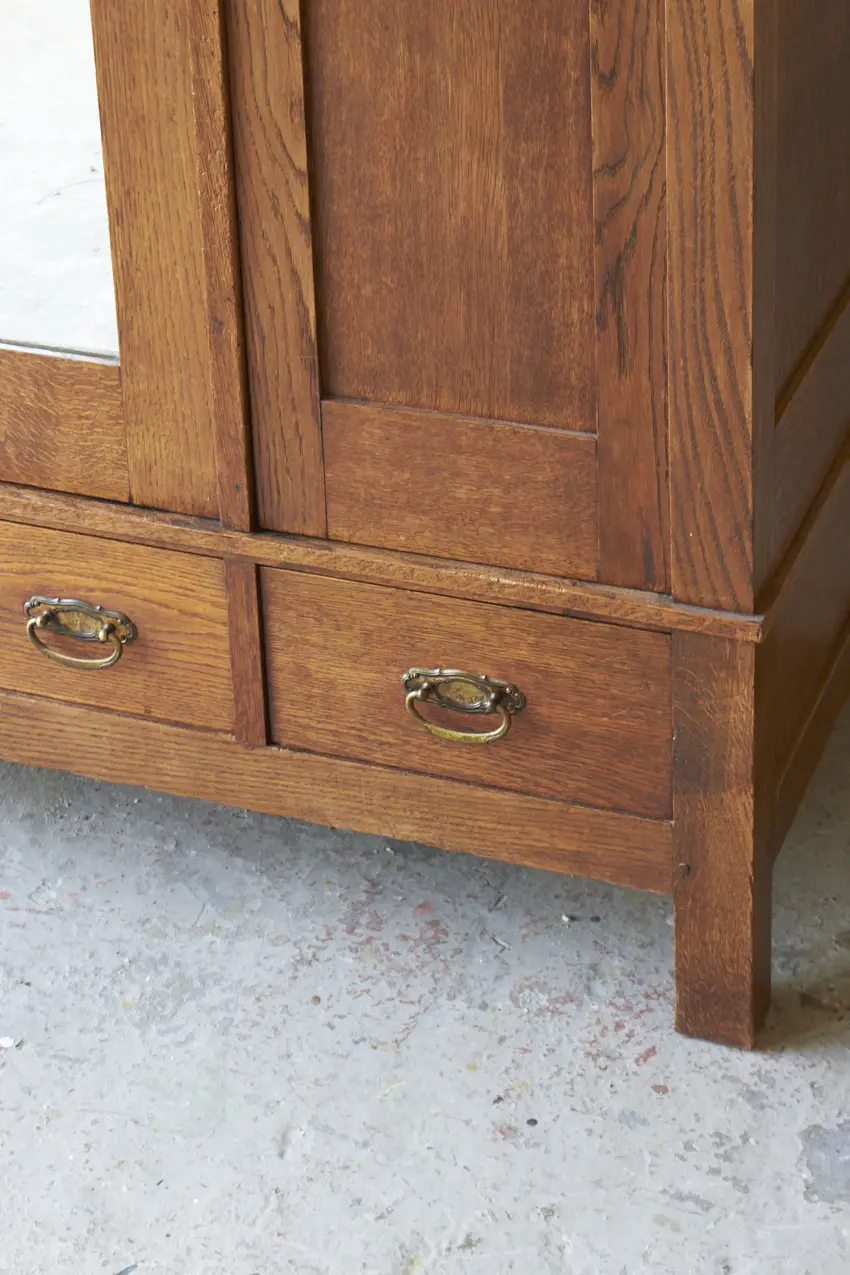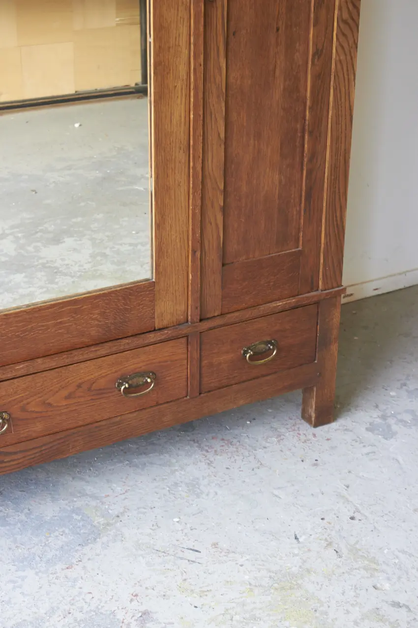 Less is more, bewijst ook dit meubel weer. Want zo prachtig door zijn eenvoudige paneeldeuren en rechte lijnen. Maar dan toch net even die sierlijke bewerking aan de bovenkant. Wat een prachtig meubel! Met een fijne spiegeldeur in het midden is dit een perfecte kledingkast voor op de slaapkamer of voor in de hal. We kunnen niet wachten om dit meubel te schilderen. We kunnen ook de spiegel vervangen voor hout en meeschilderen.