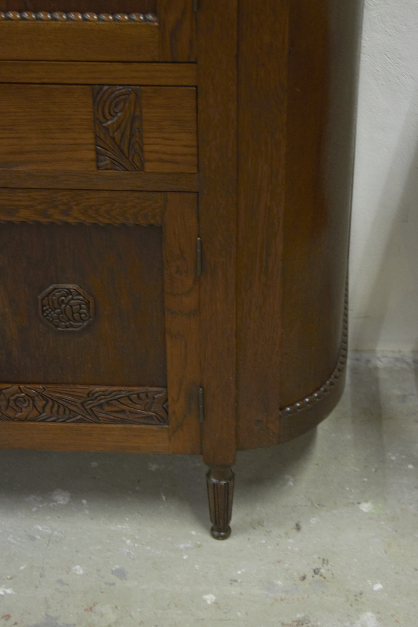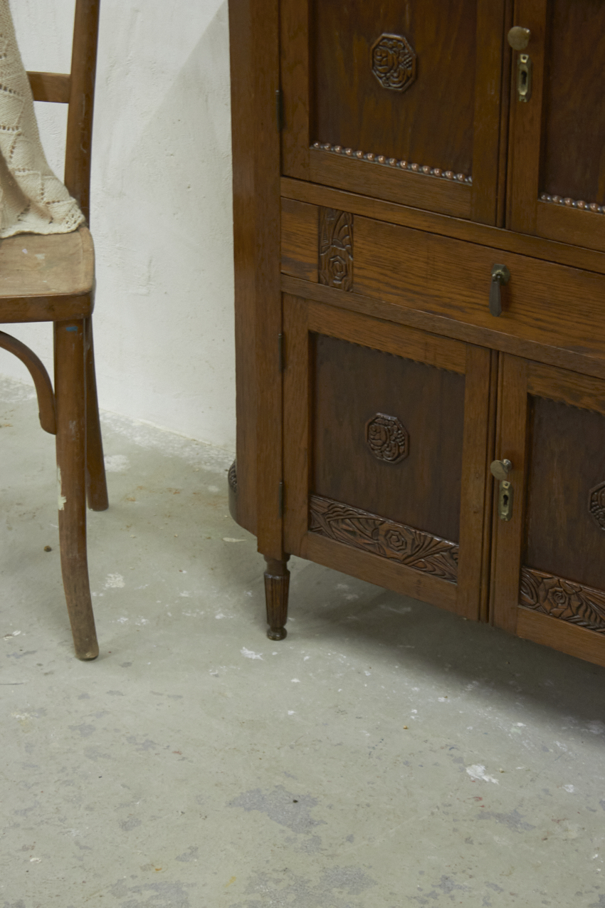 Het meubel is grondig schoongemaakt en behandeld tegen houtworm. Vervolgens is ze licht opgeschuurd en voorzien van een nieuwe laklaag. De originele legplank hebben we eveneens schoongemaakt en opgeschuurd, zodat deze behouden kon blijven. Het resultaat? Een meubel die er weer prachtig uitziet, vintage oud, maar met een frisse, nieuwe uitstraling. De deuren sluiten met een magneetje.