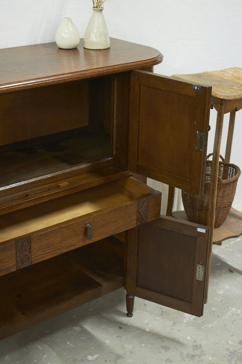 Een vintage meubel in zijn eigen, prachtige houtkleur. Het gebeurt maar zelden dat een kast nog zo mooi origineel is, dat we hem in zijn natuurlijke houtkleur kunnen behouden. Dit dressoir was zó goed bewaard gebleven, dat we deze keuze met alle liefde hebben kunnen maken en daar worden we heel blij van.