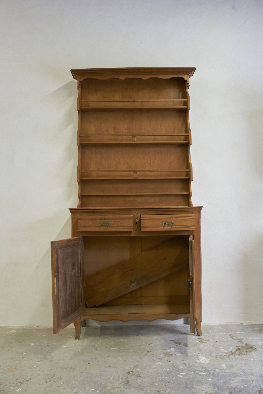 Wauw, dit meubel is zo mooi, nu al. Wij hebben ontzettend zin om deze op te knappen. Deze kast heeft er al een heel leven op zitten, dat zie je aan alles. Wat zal deze perfect staan op de kinderkamer als boekenkast. Of als prachtige winkelkast achter de toonbank nu helemaal naar wens samen te stellen.