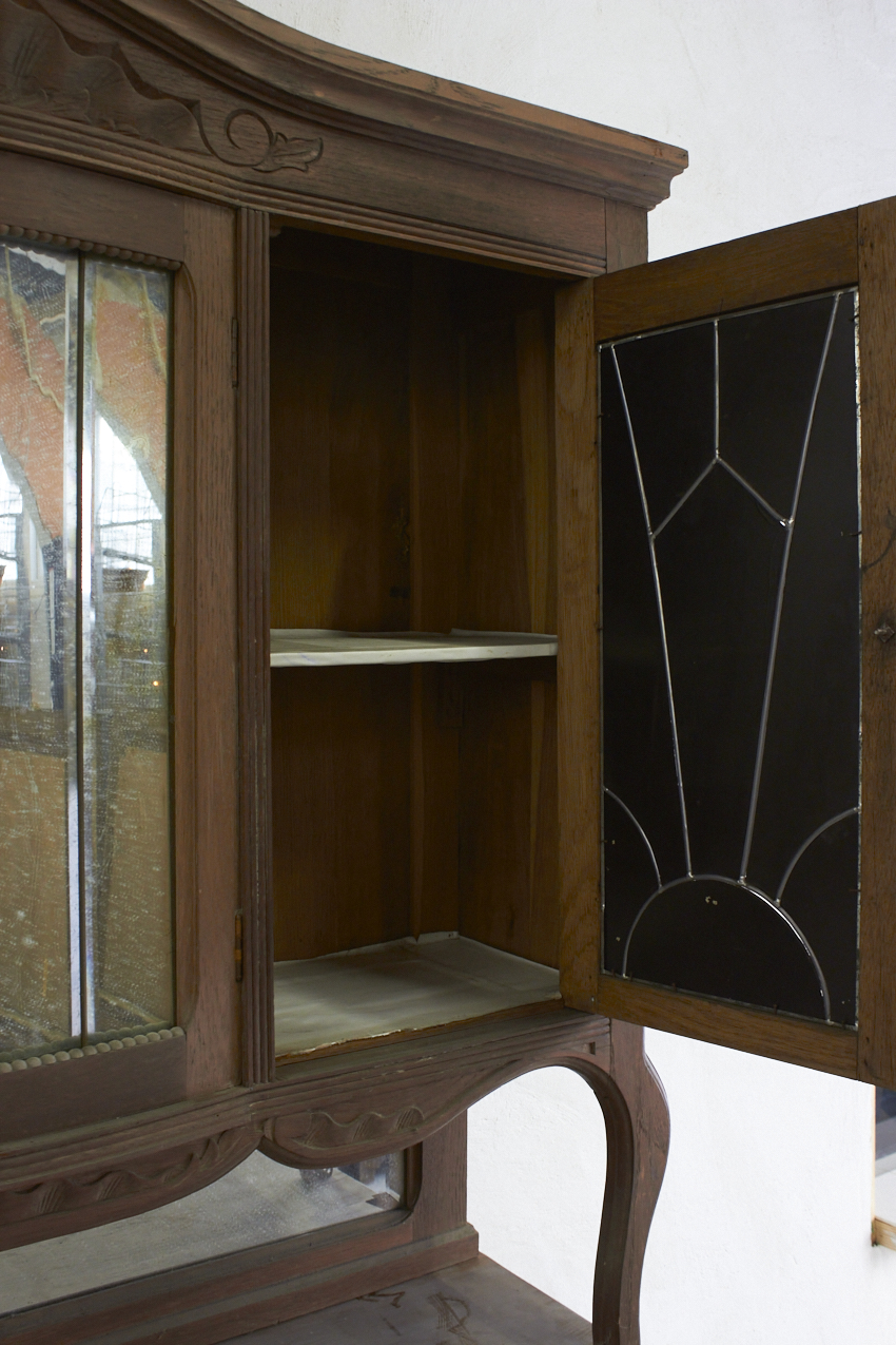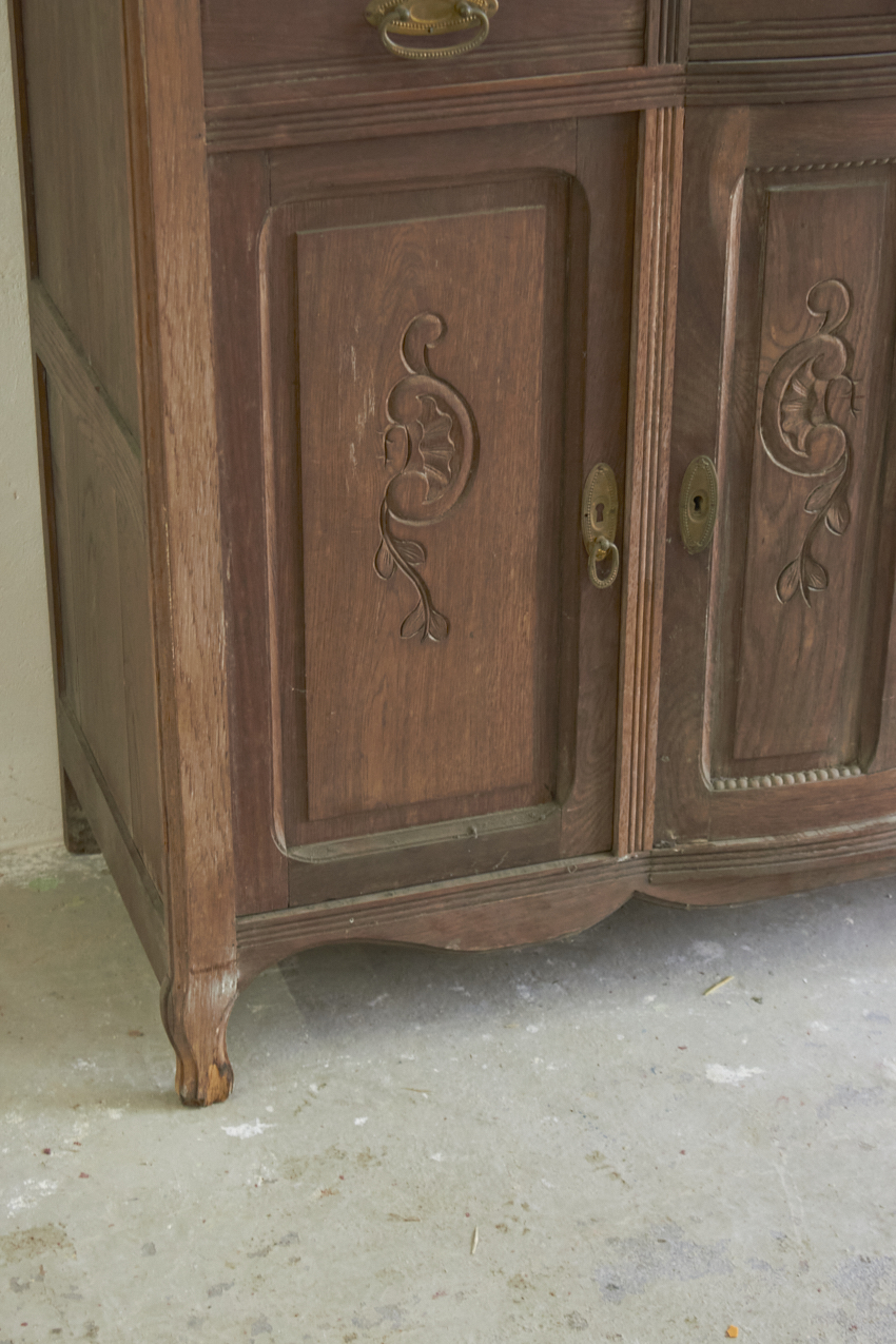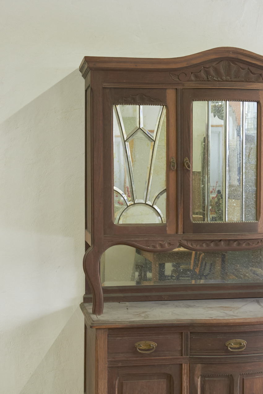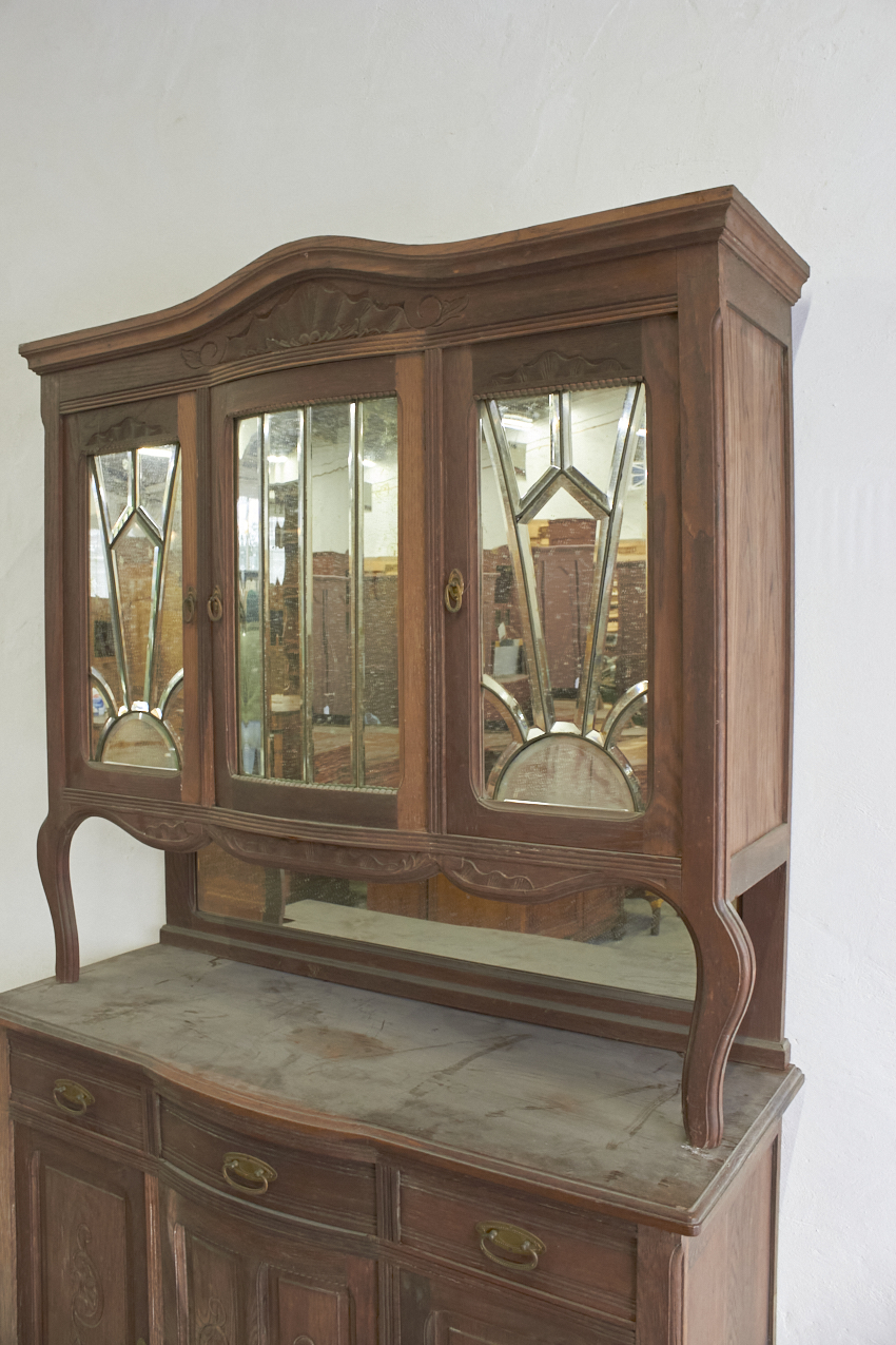 Een prachtig, vintage commode en of buffetkast, die op dit moment in onze opslag staat. Echt perfect voor op de babykamer, je kan de onderkant eerst als commode gebruiken. Vroeger heeft deze gediend als buffetkast, en de bovenkant is ook nog aanwezig. En deze is uitzonderlijk mooi met spiegels.
