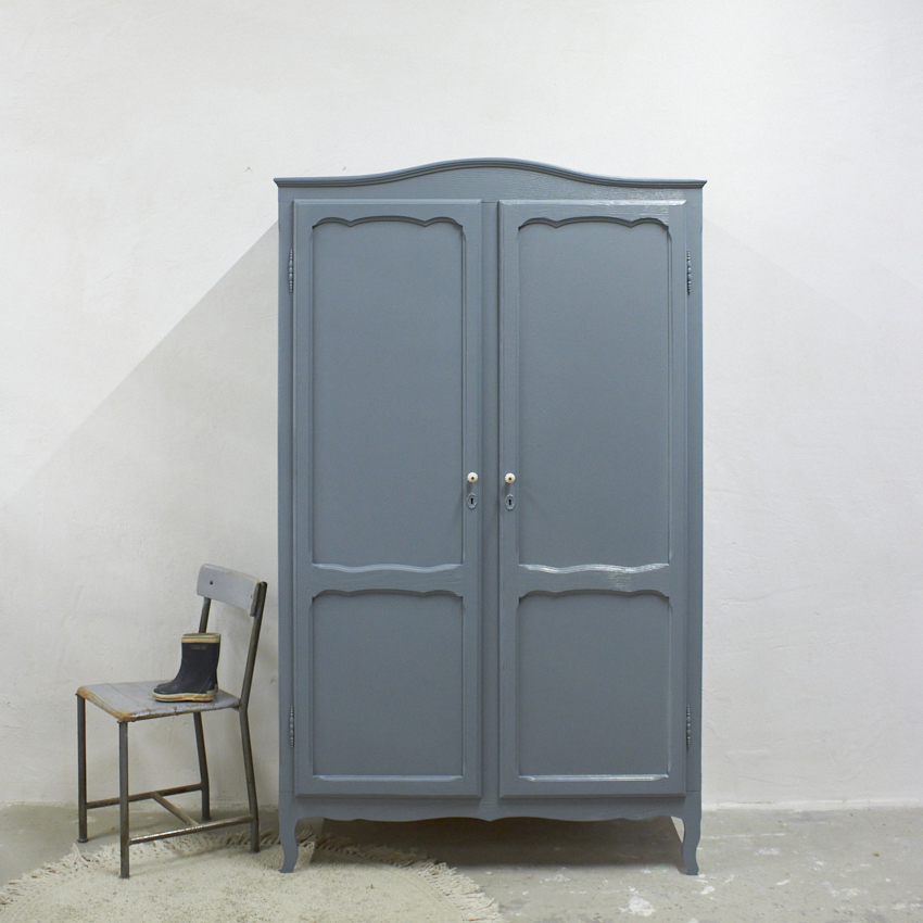 Deze vintage demontabele kledingkast is geschilderd in onze eigen kleur Bron, een tint waar we elke keer weer blij van worden. Dit type kast hebben we vaker in huis; stuk voor stuk uniek, met hun eigen karakter. Dit exemplaar heeft het perfecte formaat voor een kinderkamer. De kast is heerlijk diep, waardoor je verrassend veel kleding kunt opbergen. Praktisch én mooi.