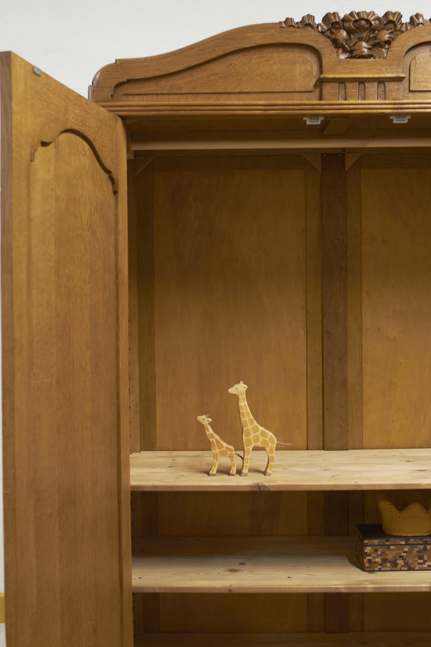 We hebben alle onderdelen goed schoongemaakt en behandeld met een anti-houtworm spray. Zo zijn we er zeker van dat die niet meer leven. Hij is demontabel en kan helemaal uit elkaar gehaald worden. Heel fijn als je hem moet verplaatsen of naar boven wilt tillen via de trap. We hebben hem helemaal nagelopen en we hebben hem voorzien van een verse, nieuwe laag meubelolie.
