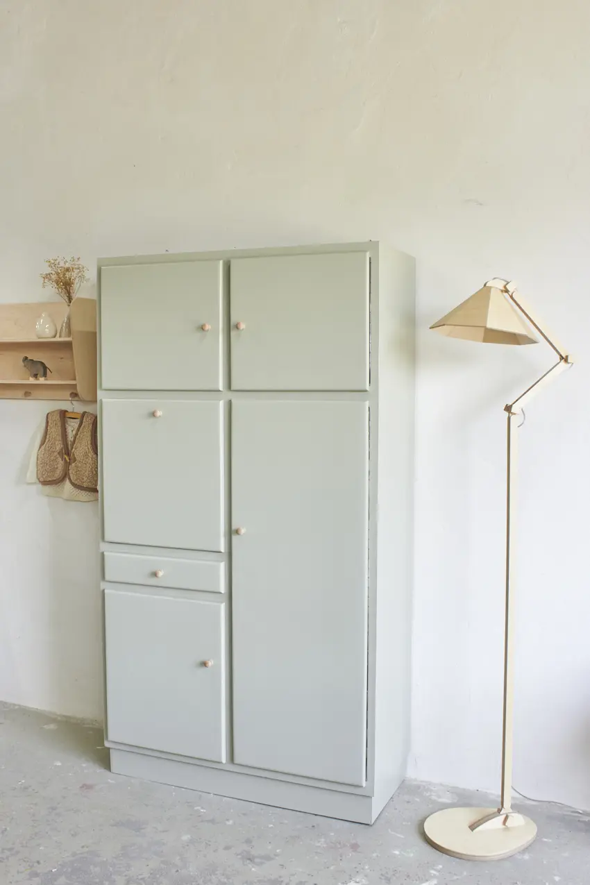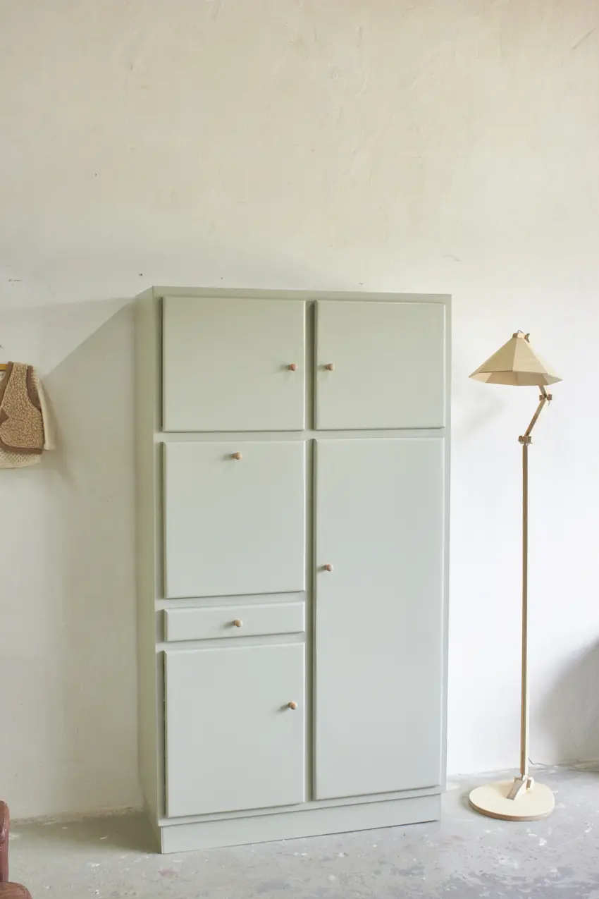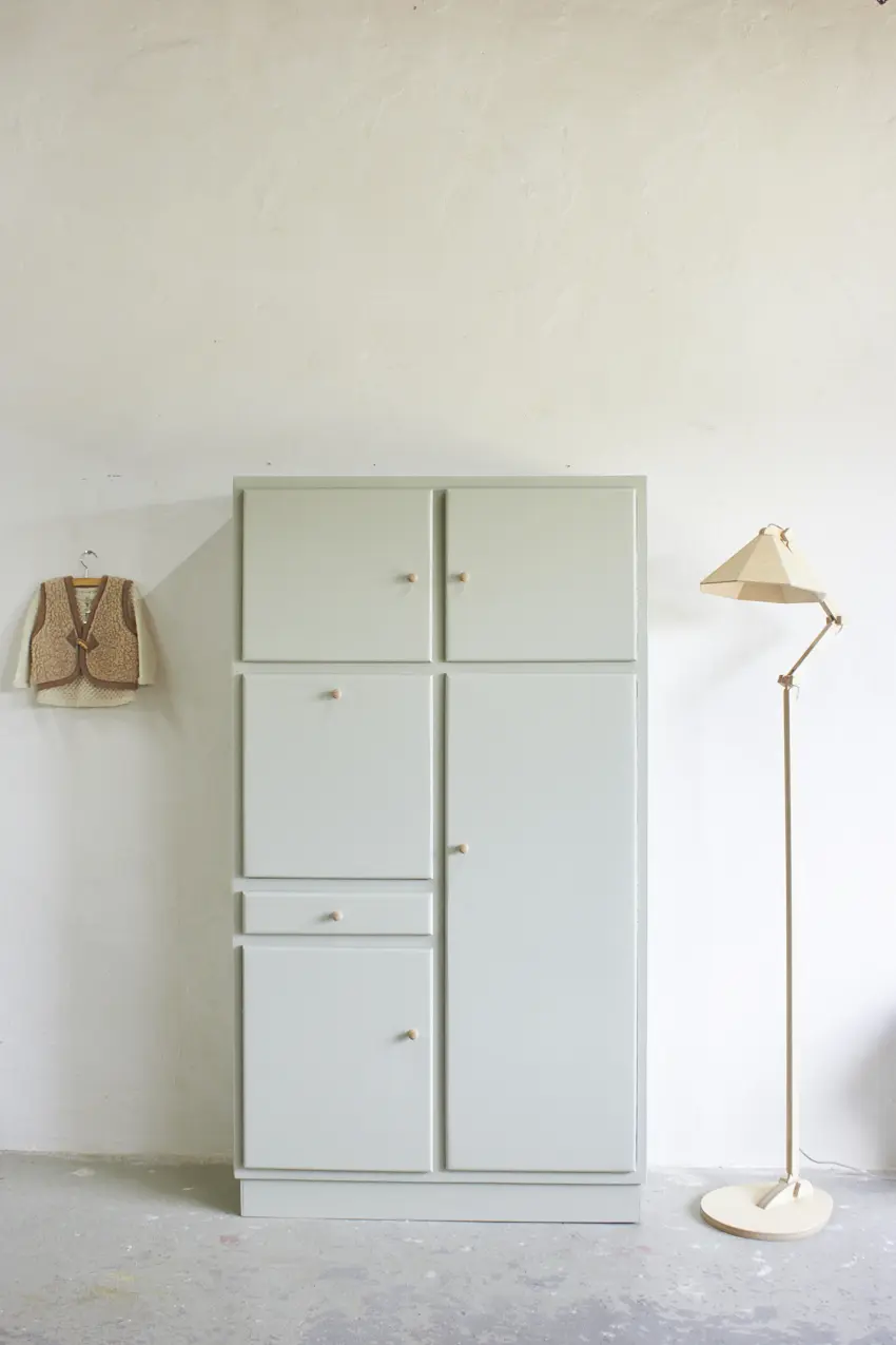 Deze retro kast in onze kleur Voorjaar is zó mooi geworden! Met de houten knopjes brengt hij meteen warmte en sfeer in elke ruimte. Dit type kast werd vroeger vaak gebruikt als keukenkast en heeft die heerlijke, herkenbare retro uitstraling.