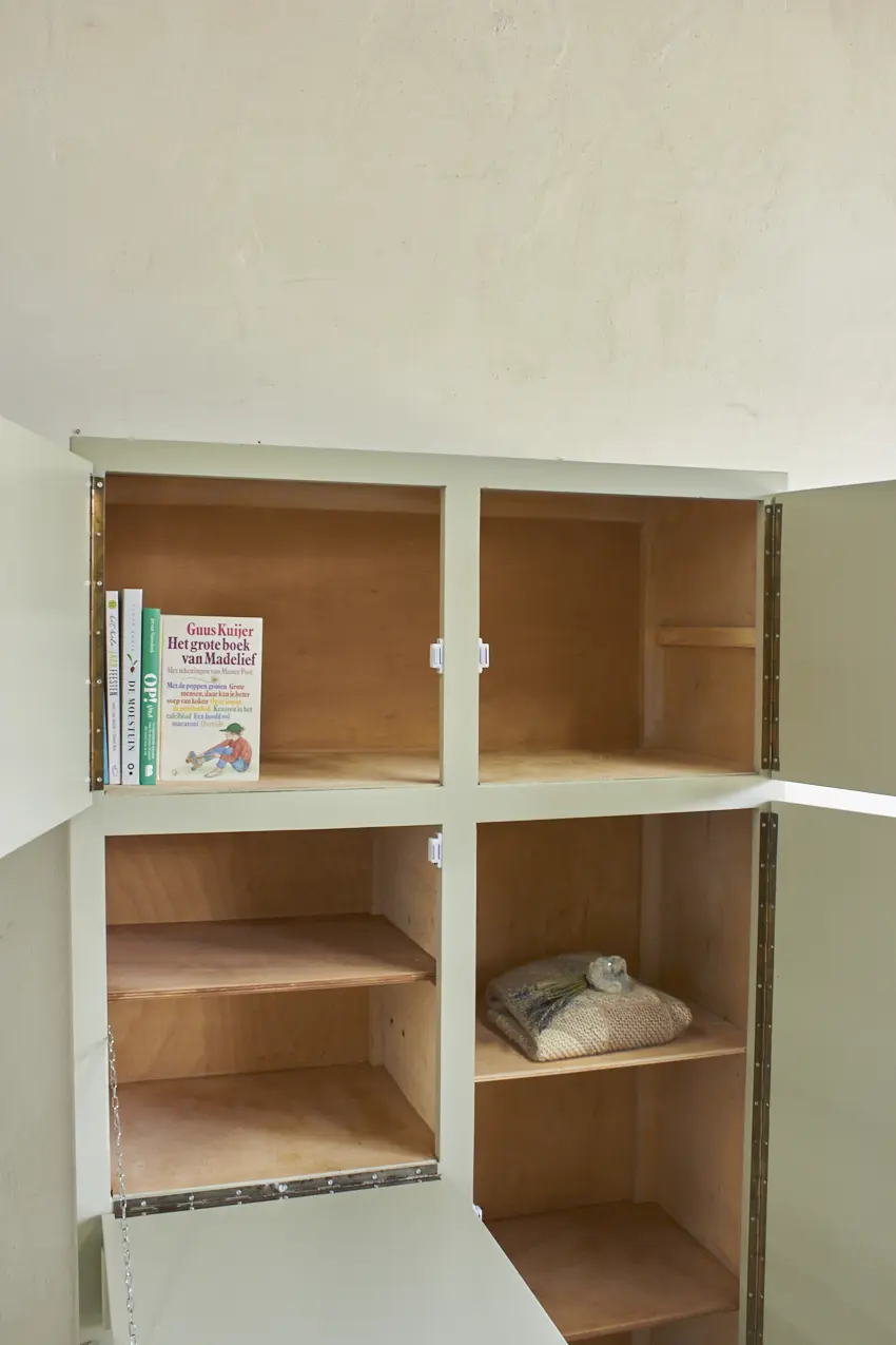 Het fijne aan deze kast is dat hij eigenlijk overal in huis past. In de keuken voor servies en kookboeken, in de woonkamer voor spelletjes en knutselspullen, of op de kinderkamer voor al het speelgoed. Dankzij de magneetjes sluiten alle deuren netjes. Het formaat is prettig compact, maar biedt toch verrassend veel opbergruimte. Na een laag grondverf hebben we gekozen voor onze kleur Voorjaar. Wat zijn we blij met deze kleur, ook op deze kast komt hij weer prachtig tot zijn recht, in combinatie met de houten knopjes. Helemaal klaar voor een nieuw thuis.