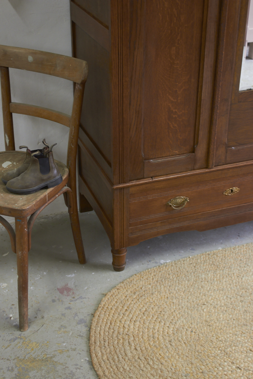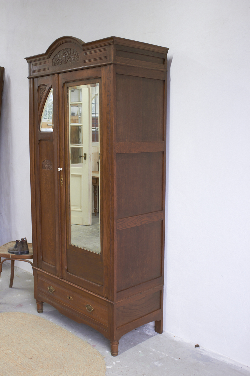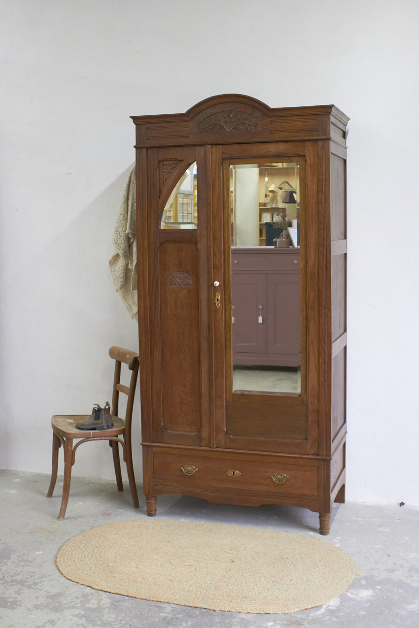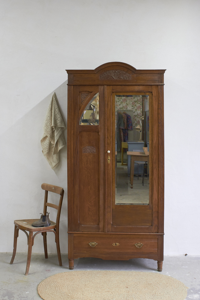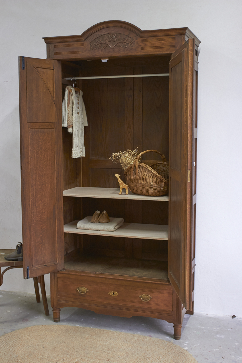 Er is heel veel opbergruimte om kleding op te hangen en neer te leggen! En zo fijn, je kan de planken zelf stellen. Mocht je alleen maar planken willen, die kunnen we tegen een kleine meerprijs nieuw op maat voor je maken. De deuren sluiten met een magneetje. Wat zal hij mooi staan in huis. Hij is weer helemaal klaar voor een nieuwe plek!