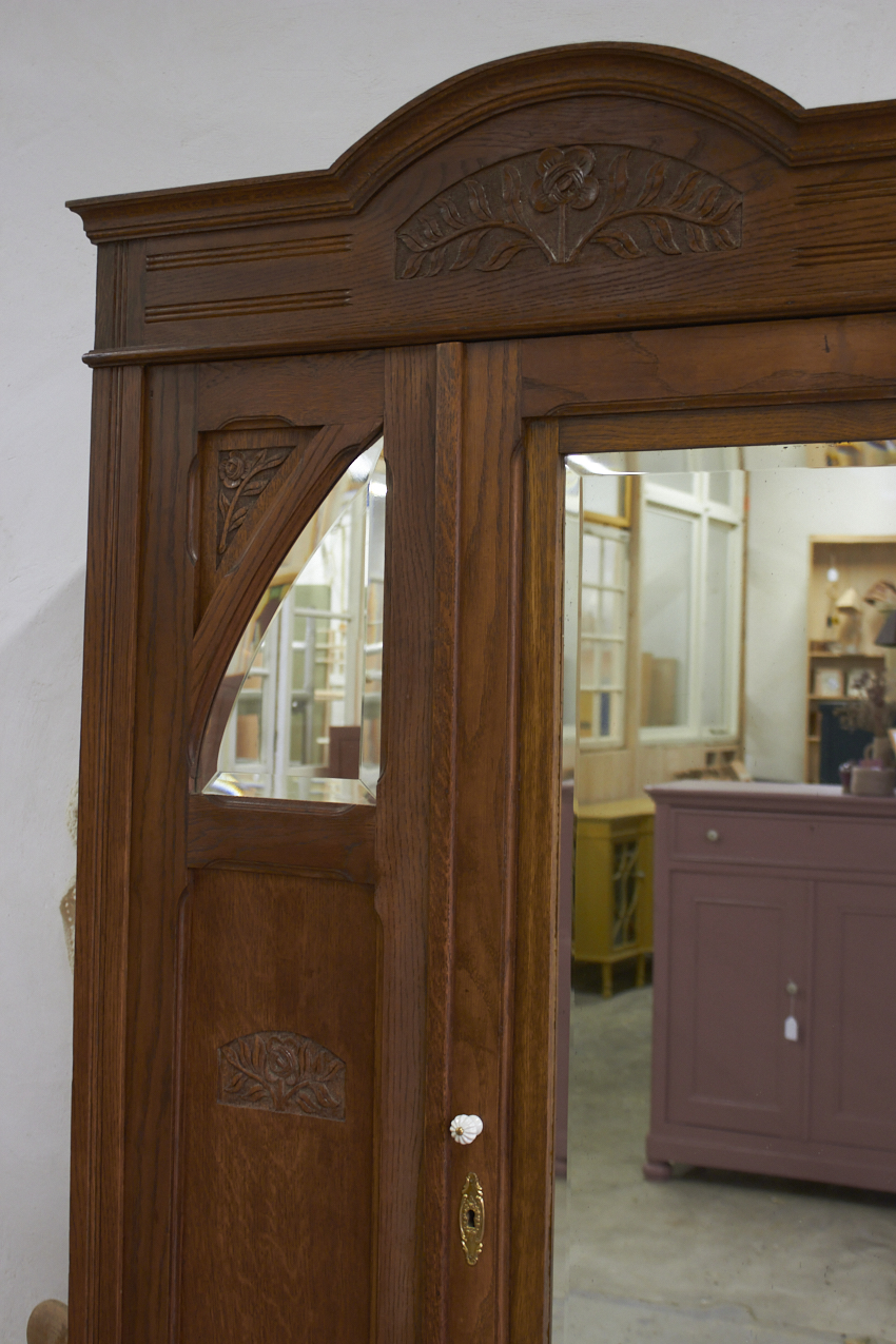 Wauw, wat een cadeau is deze prachtige demontabele spiegel kast in originele kleur! We hebben ze niet vaak, kasten die nog in zo’n mooie staat zijn dat we ze niet hoeven te schilderen. En dan is het ook nog zo’n mooi exemplaar met twee deuren. Zelfs de handgreepjes op de lades zijn origineel. Wat een plaatje!