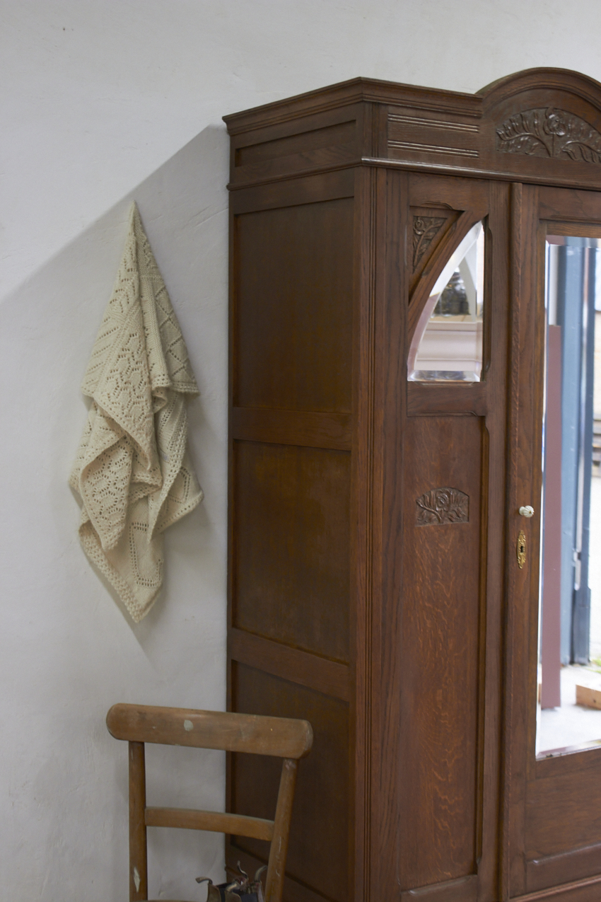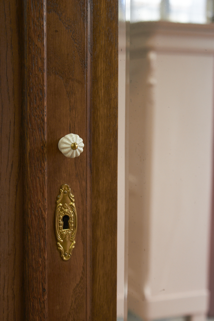 We hebben alle onderdelen goed schoongemaakt en behandeld met een anti-houtworm spray. Zo zijn we er zeker van dat die niet meer leven. Hij is demontabel en kan helemaal uit elkaar gehaald worden. Heel fijn als je hem moet verplaatsen of naar boven wilt tillen via de trap. We hebben hem helemaal nagelopen en we hebben hem voorzien van een verse, nieuwe laag meubellak.
