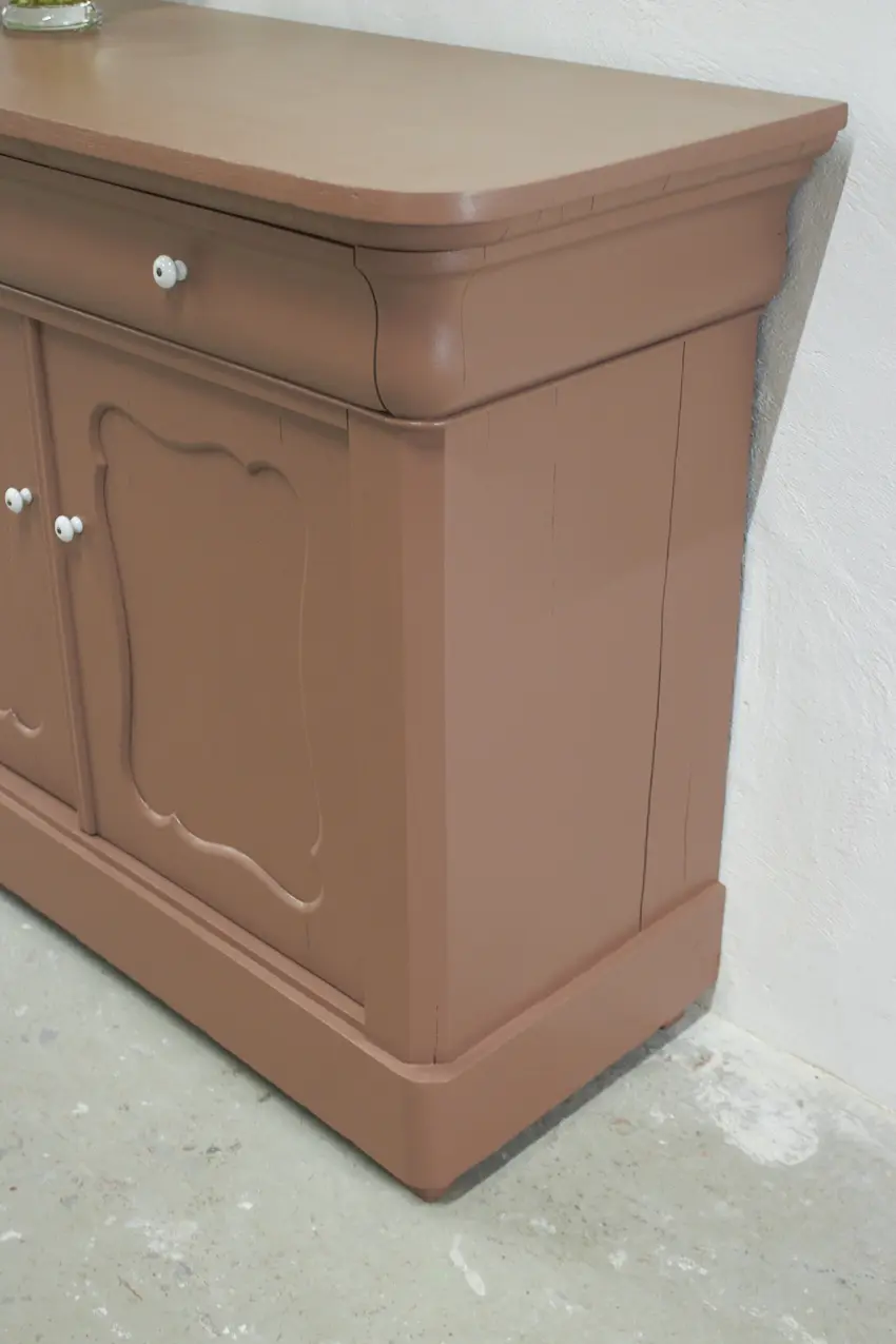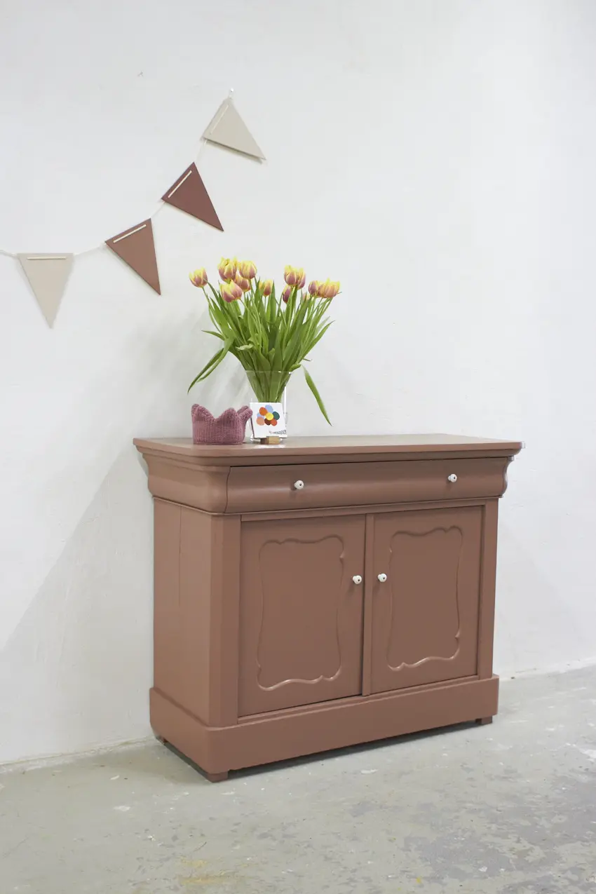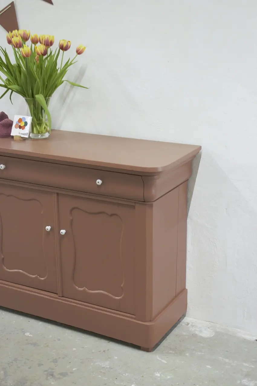 Dit meubel hebben we gevonden in België en is daarna naar de meubelstraler gegaan, waar alle oude laklagen volledig zijn verwijderd. Vervolgens hebben we de kast grondig schoongemaakt en behandeld met een anti-houtwormspray. Zo weten we zeker dat eventueel aanwezige houtworm geen kans meer heeft, wel zo’n fijn idee. De deurtjes sluiten perfect dankzij een magneetsluiting en de porseleinen knopjes maken het geheel helemaal af. De kast is nu helemaal klaar voor een nieuwe plek en een nieuw verhaal.