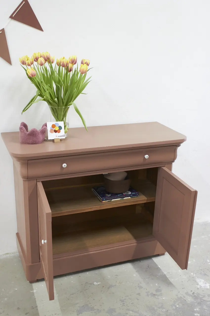Dit speelgoed kastje is zo mooi geworden in onze prachtige kleur Vijg. Achter de deurtjes en in de lade is meer dan genoeg opbergruimte voor al het speelgoed, knutselspullen en andere schatten die je wil bewaren. Maar dit kastje is ook ideaal te gebruiken als kleine commode. Perfect voor een kleine babykamer of voor een commode op jullie eigen slaapkamer. De hoogte van de pootjes kunnen we altijd nog aanpassen voor je, mocht je het kastje als commode graag iets hoger willen hebben.