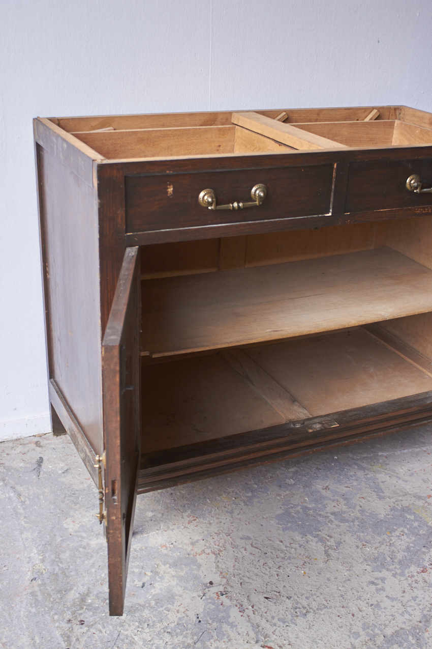 Mail ons gerust bij vragen, we denken graag met je mee over de afwerking en details van deze mooie vintage kast.