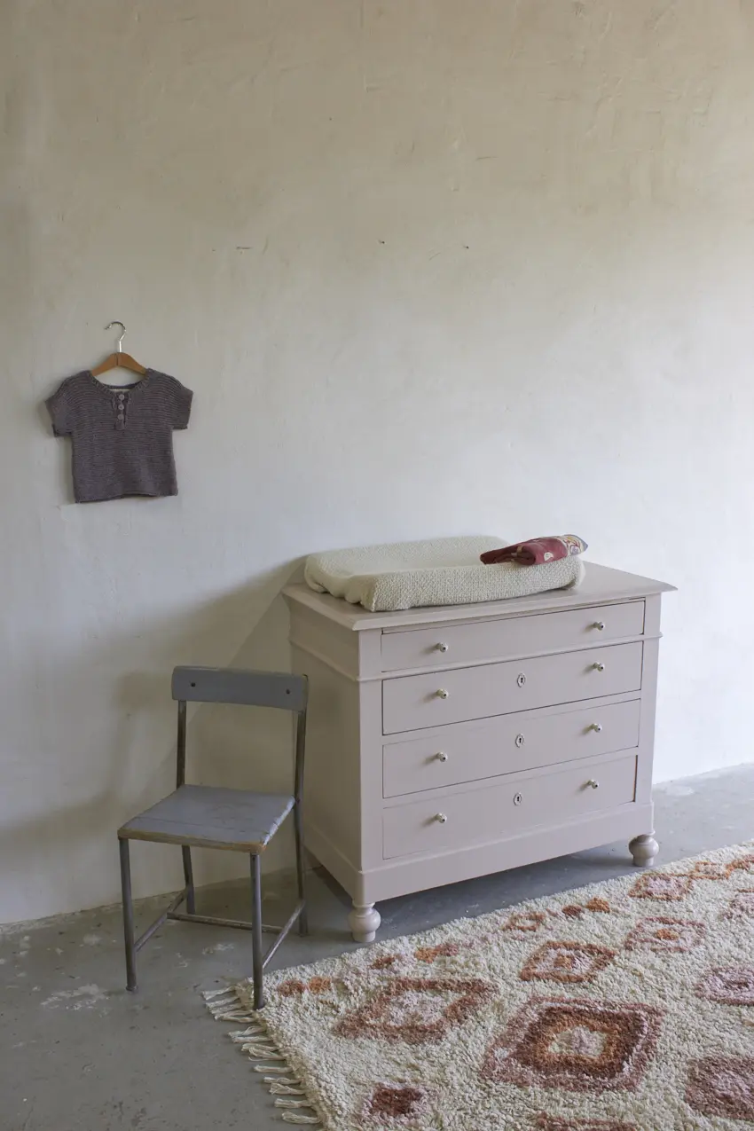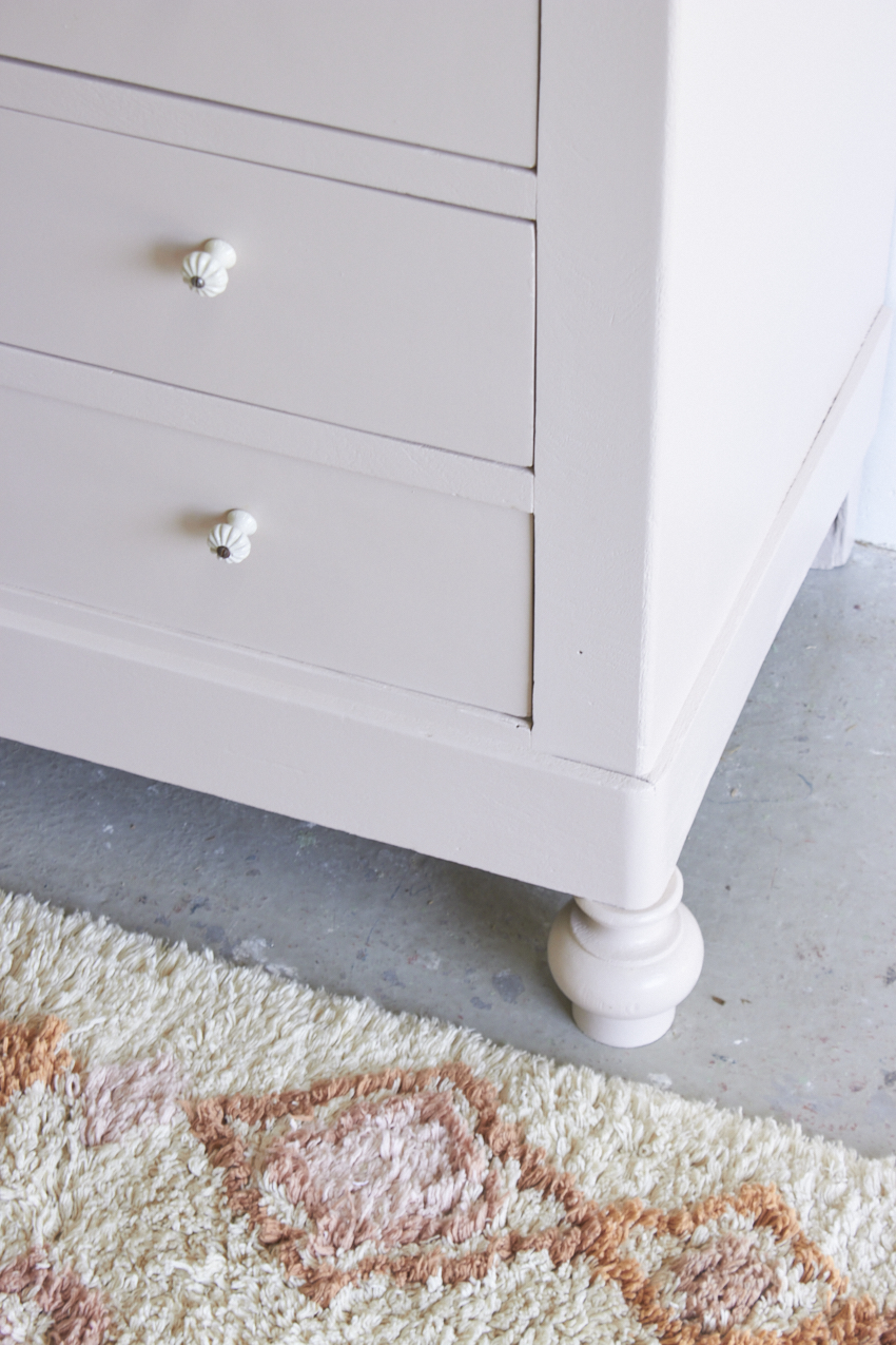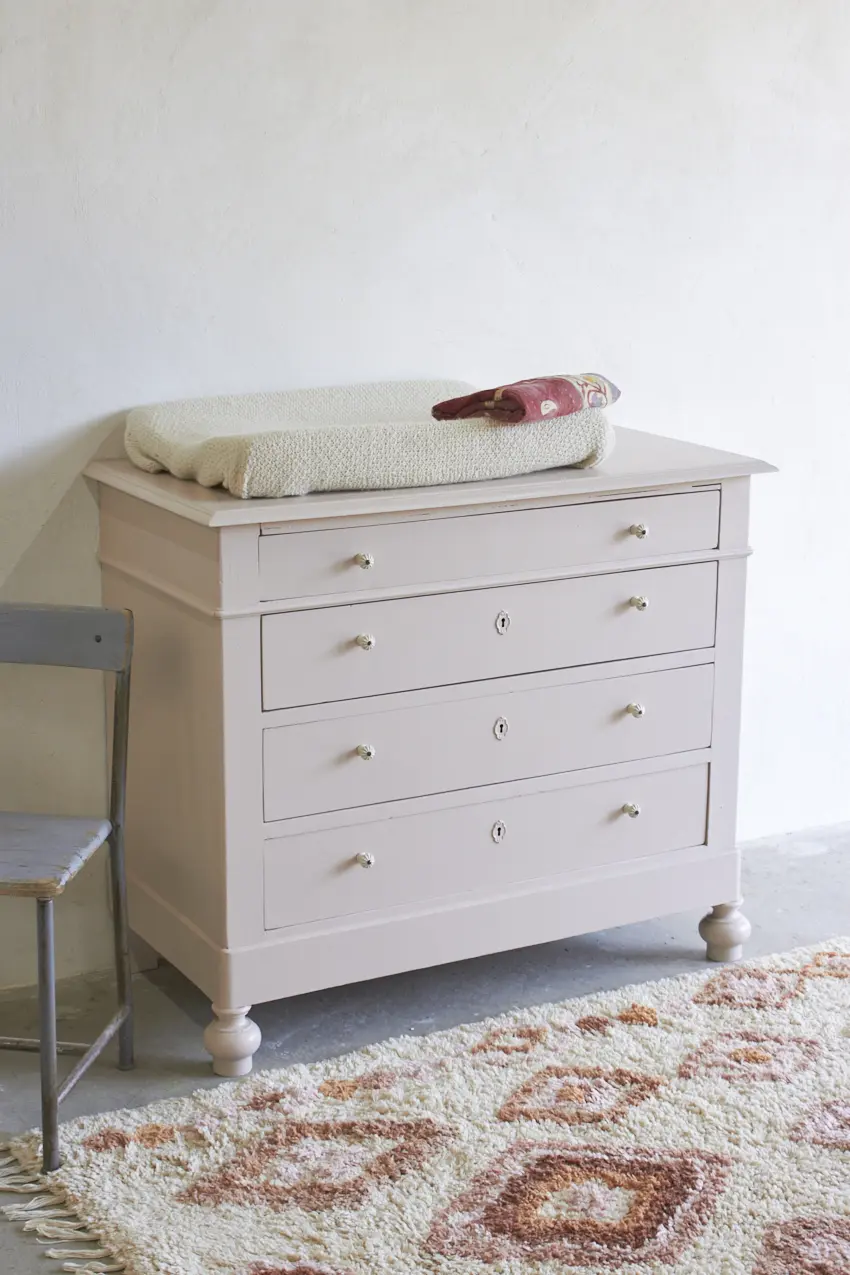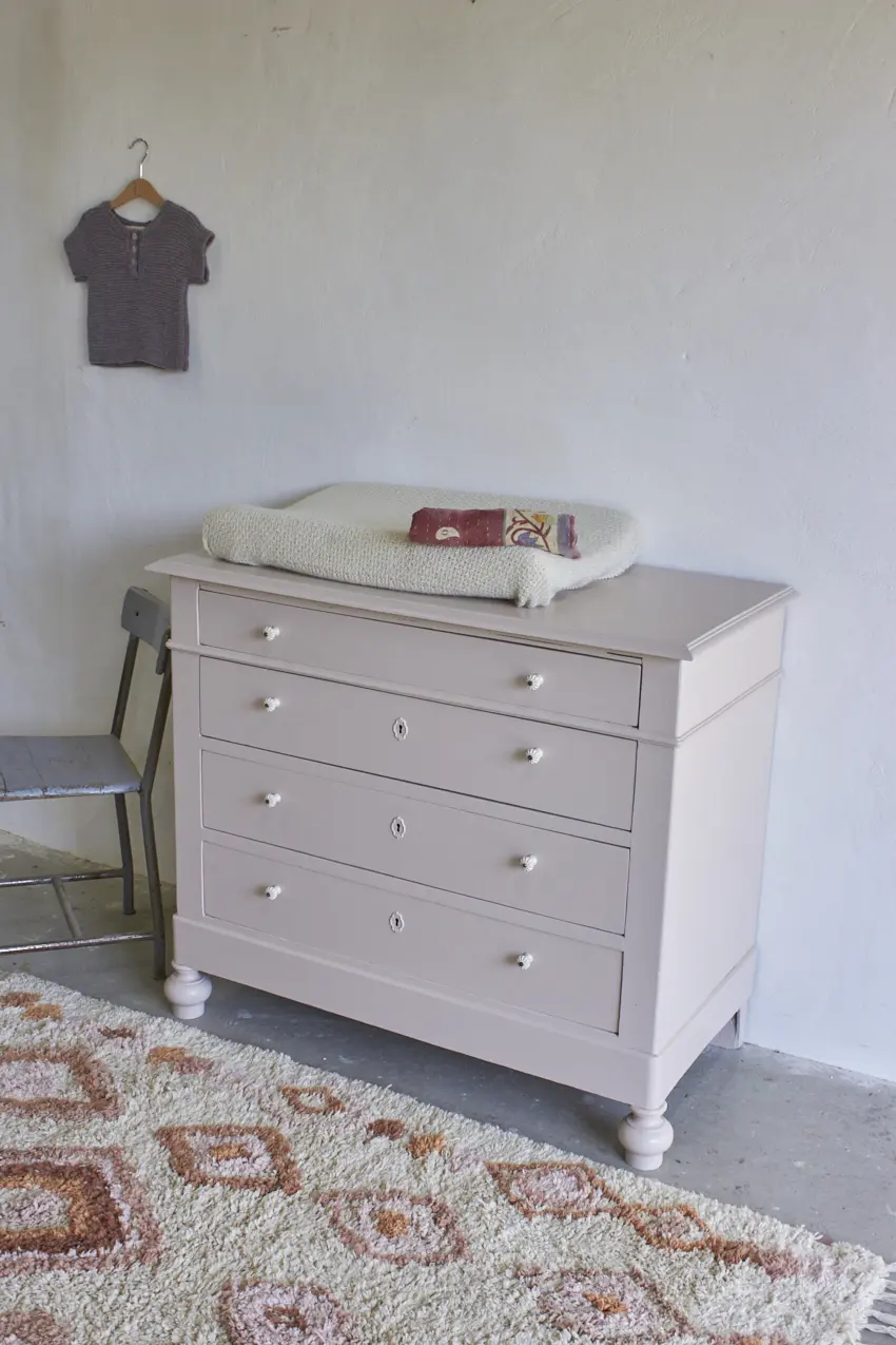 Wauw! Wat een plaatje, deze prachtige commode met in de kleur Bloesem. Ze is zo mooi geworden en lekker breed echt perfect om eerst als commode te gebruiken. Je hebt genoeg ruimte in de laatjes. Als de commode niet meer in functie is kan hij vervolgens ergens anders in huis een plekje krijgen, want deze kast zou natuurlijk ook fantastisch staan in de woonkamer als dressoir of als kledingkast in de kinderkamer. Kortom, je kan er alle kanten mee op! Wij zijn er heel blij mee.