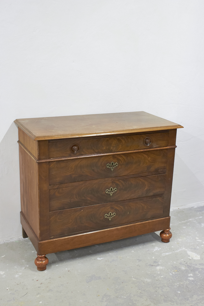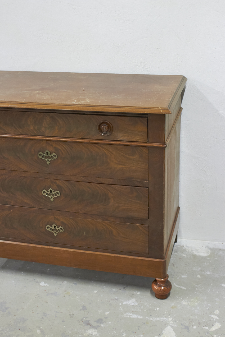 Een prachtige ladekast die een waardevolle toevoeging is aan ons assortiment. Het vintage meubel komt uit Belgie en heeft veel opbergruimte door vier lades en staat sierlijk op haar pootjes. En het leuke is: deze kast kan je helemaal naar wens door ons laten opknappen!