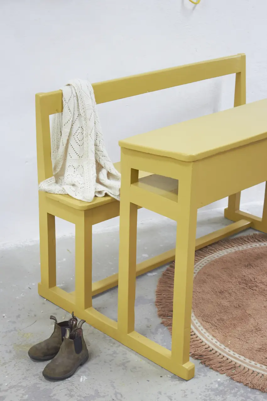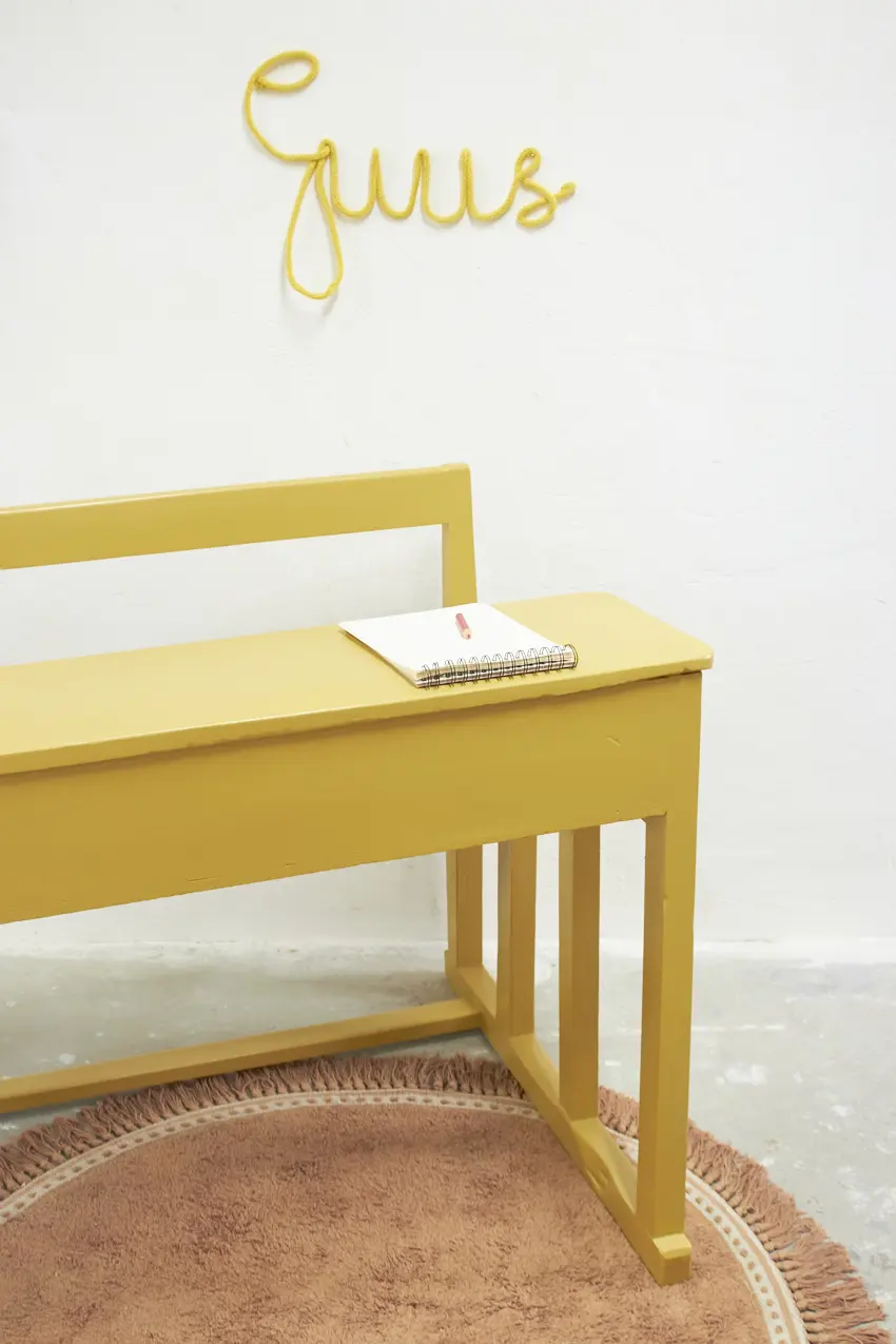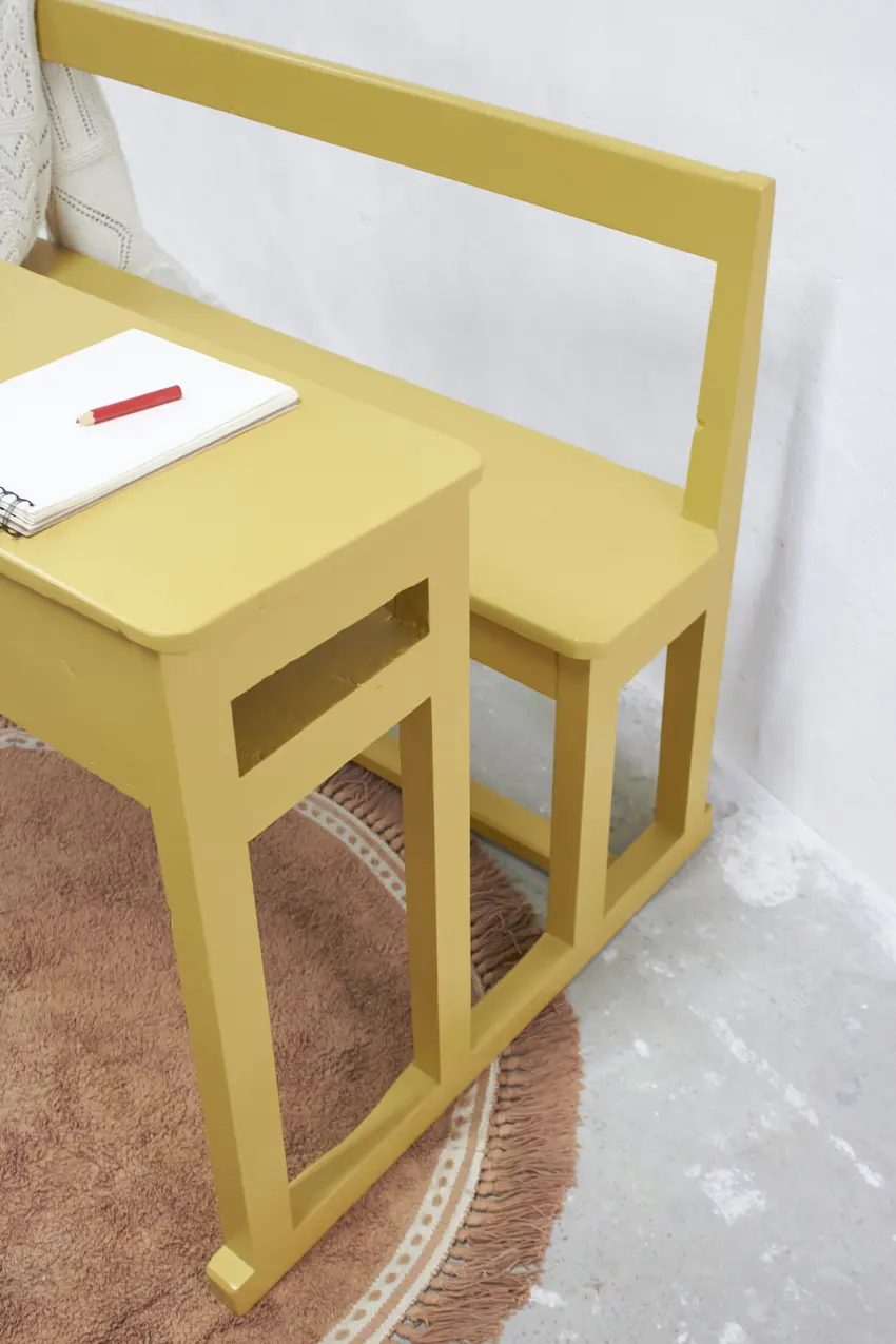 3348 vintage houten schoolbank in de kleur Saffraan