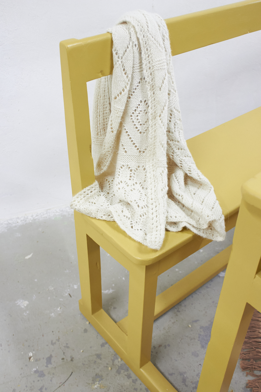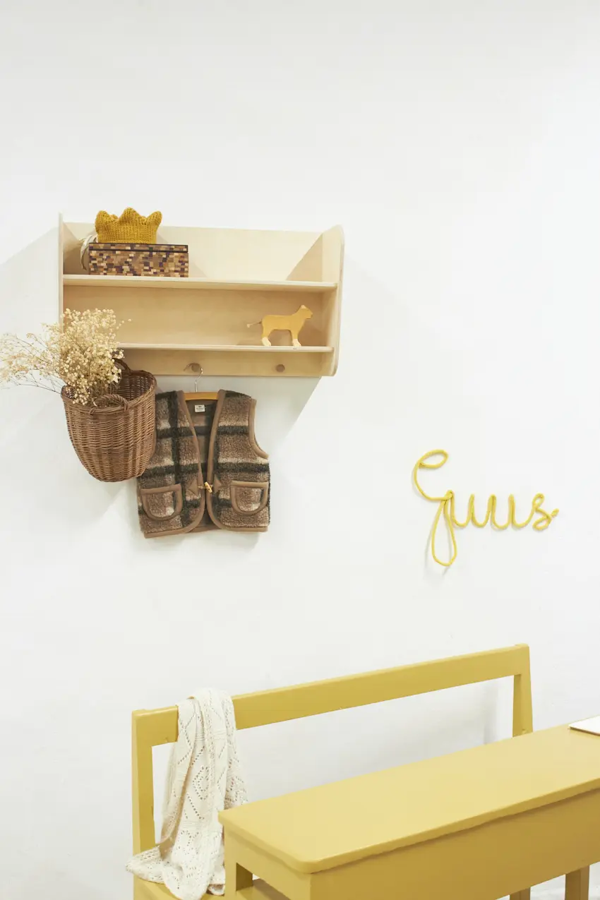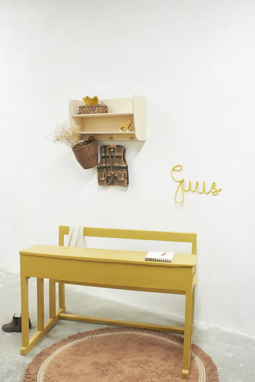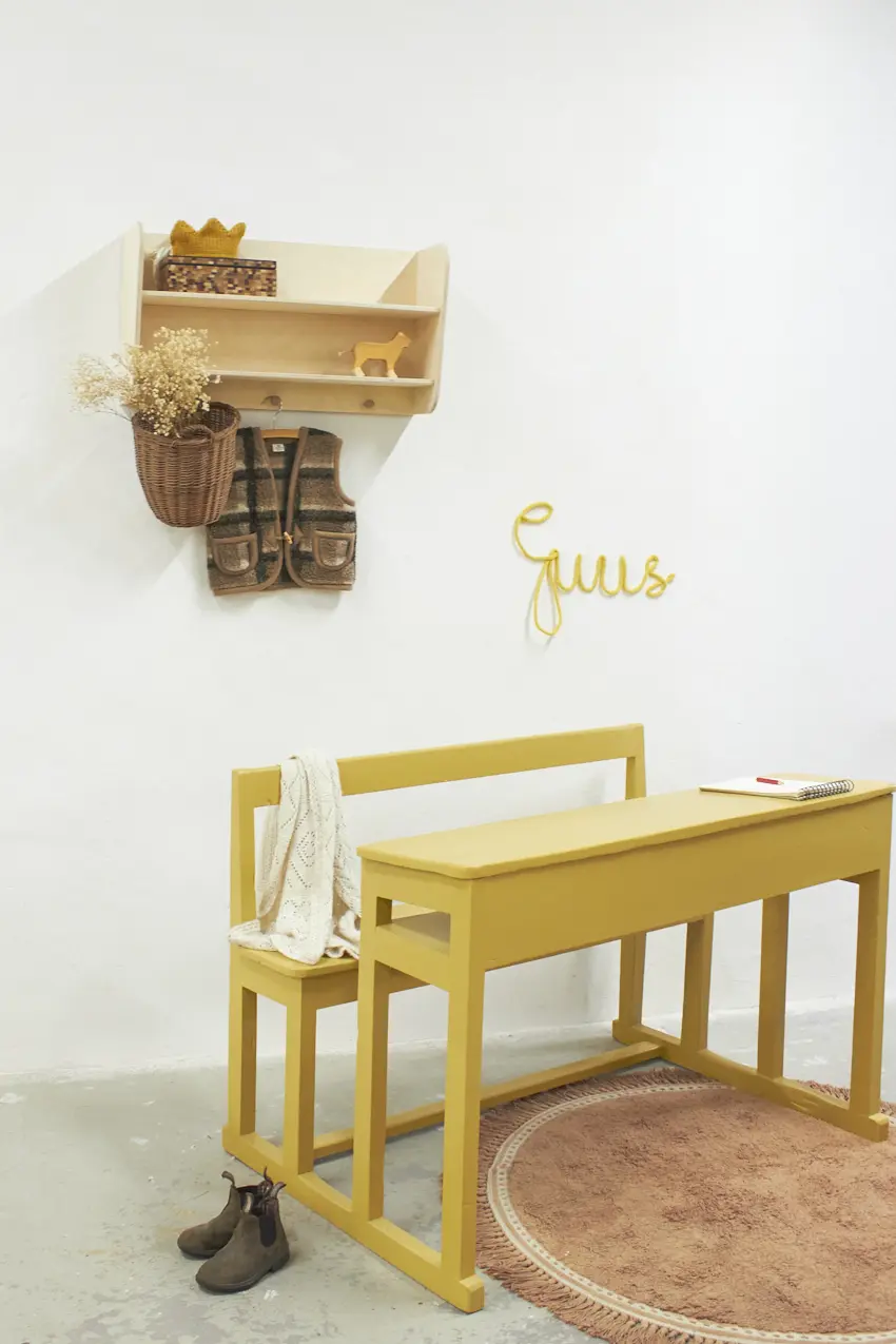 3348 vintage houten schoolbank in de kleur Saffraan