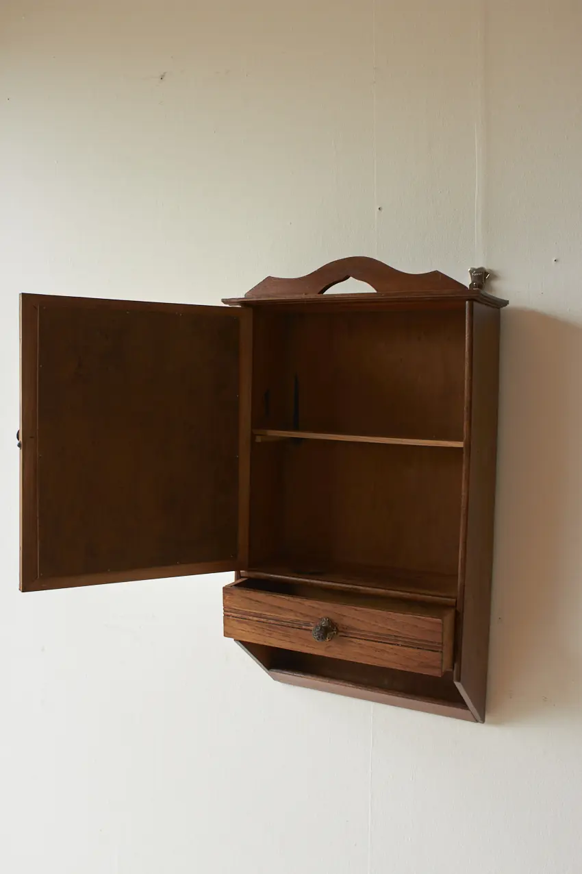 En onder het spiegeldeurtje zit nog een handig laatje voor al je kleine schatten. Elk hangkastje is goed schoongemaakt, behandeld tegen houtworm en gerepareerd waar nodig. En nu is hij weer helemaal klaar voor een nieuwe plek! Elk stuk is uniek, met een eigen karakter en een flinke dosis gezelligheid.