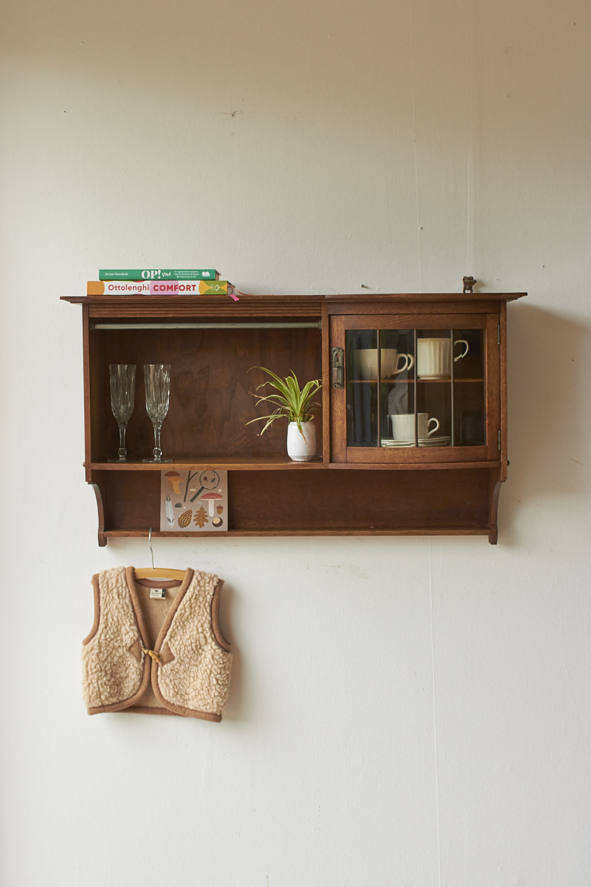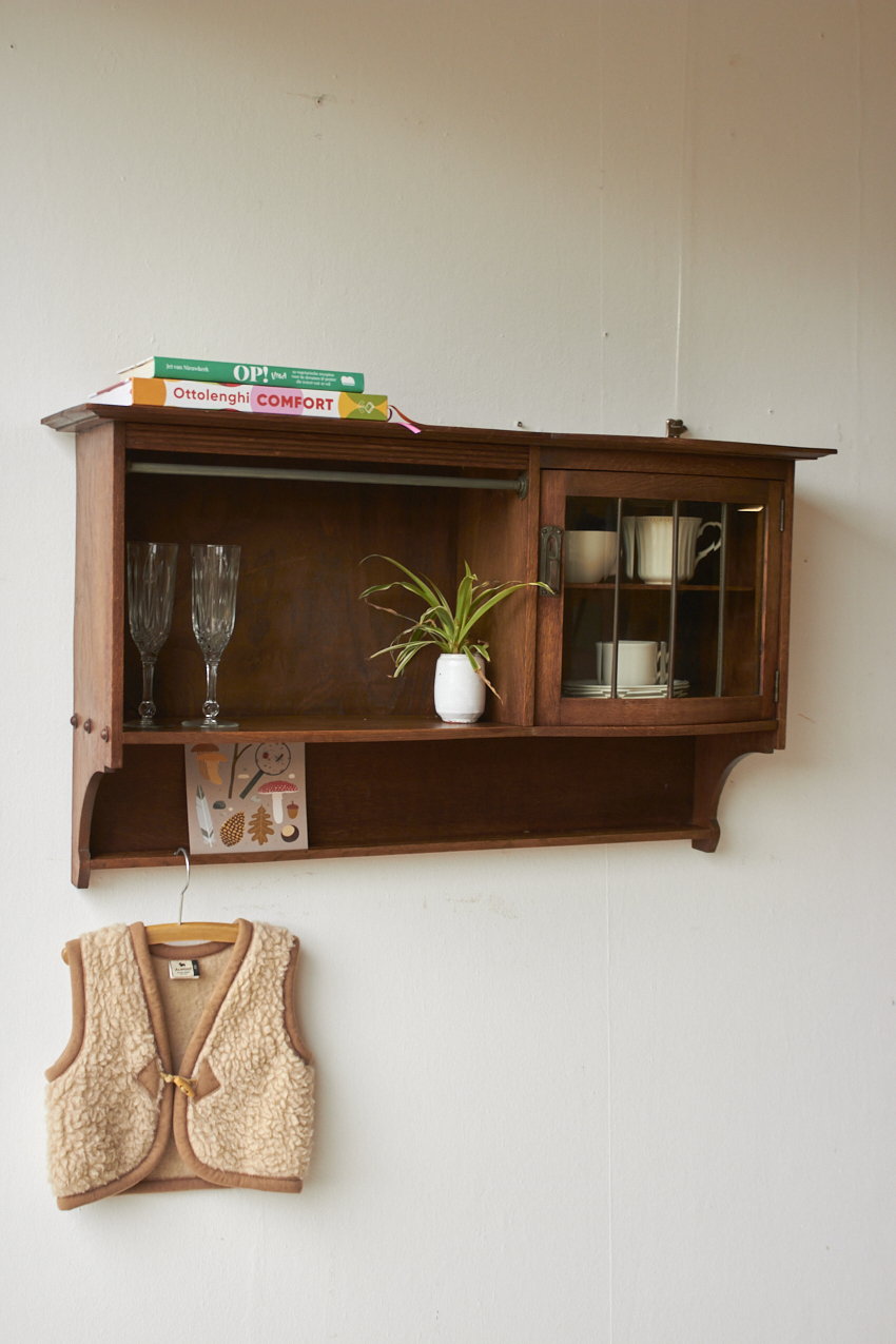 Dit specifieke hangkastje heeft prachtig geslepen vintage glas, oh wat zal deze leuk staan in de keuken, daaronder kunnen potjes kruiden bijvoorbeeld, of toch voor op de kinderkamer. Elk hangkastje is goed schoongemaakt, behandeld tegen houtworm en gerepareerd waar nodig. En nu is hij weer helemaal klaar voor een nieuwe plek! Elk stuk is uniek, met een eigen karakter en een flinke dosis gezelligheid.