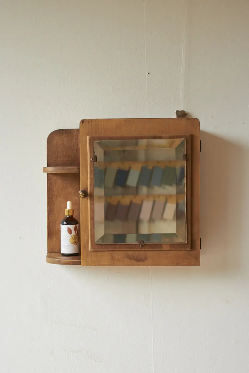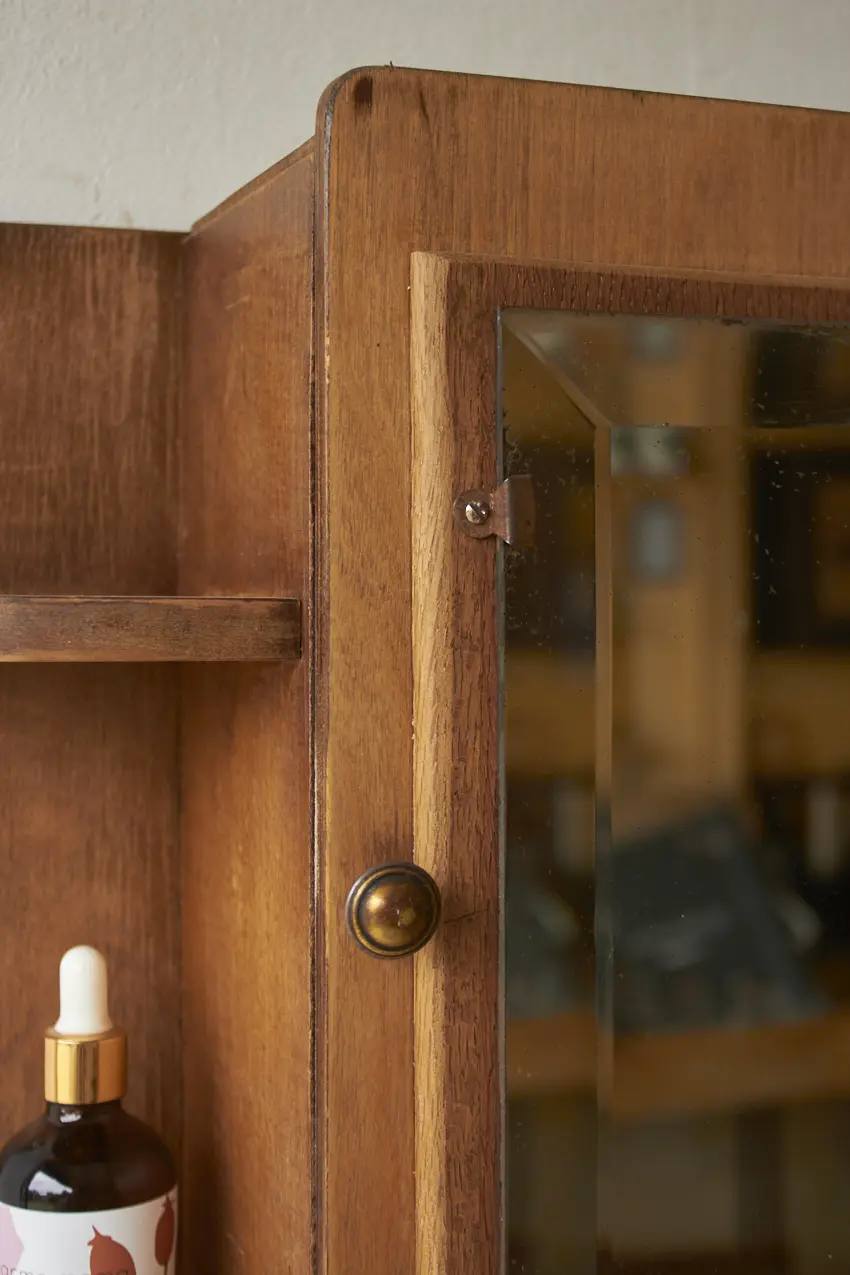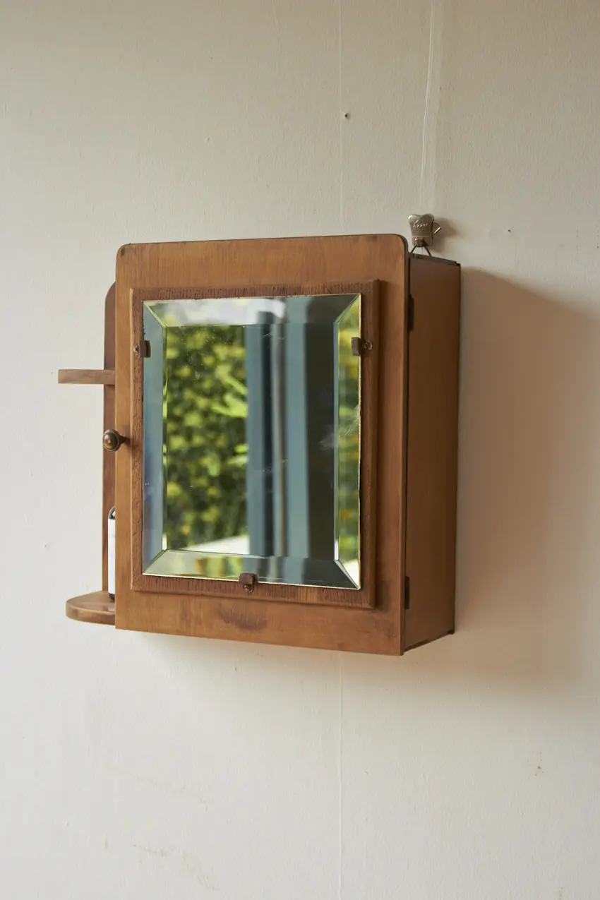 Dit specifieke hangkastje heeft een heel mooi vintage geslepen spiegel, met van die fijne vlekjes erop. Elk hangkastje is goed schoongemaakt, behandeld tegen houtworm en gerepareerd waar nodig. En nu is hij weer helemaal klaar voor een nieuwe plek! Elk stuk is uniek, met een eigen karakter en een flinke dosis gezelligheid.