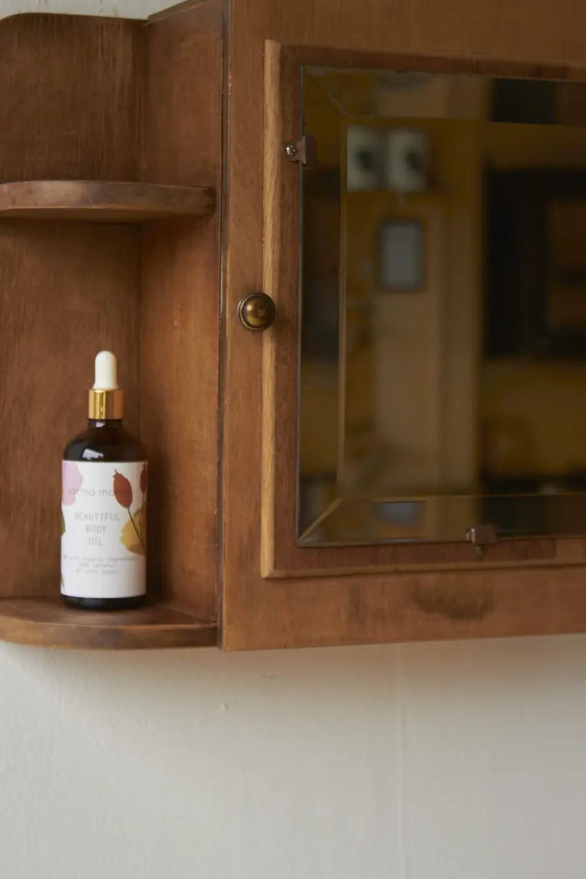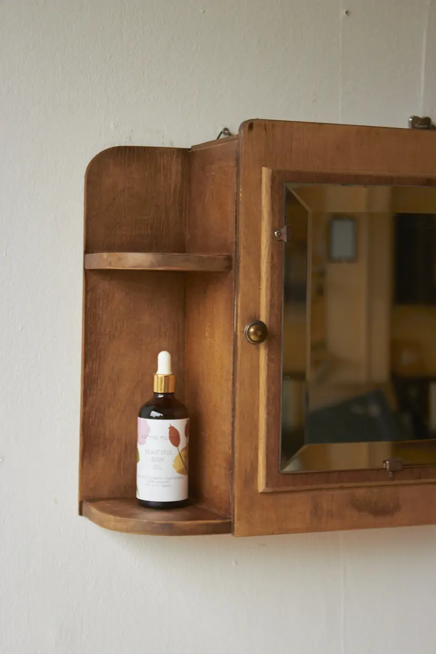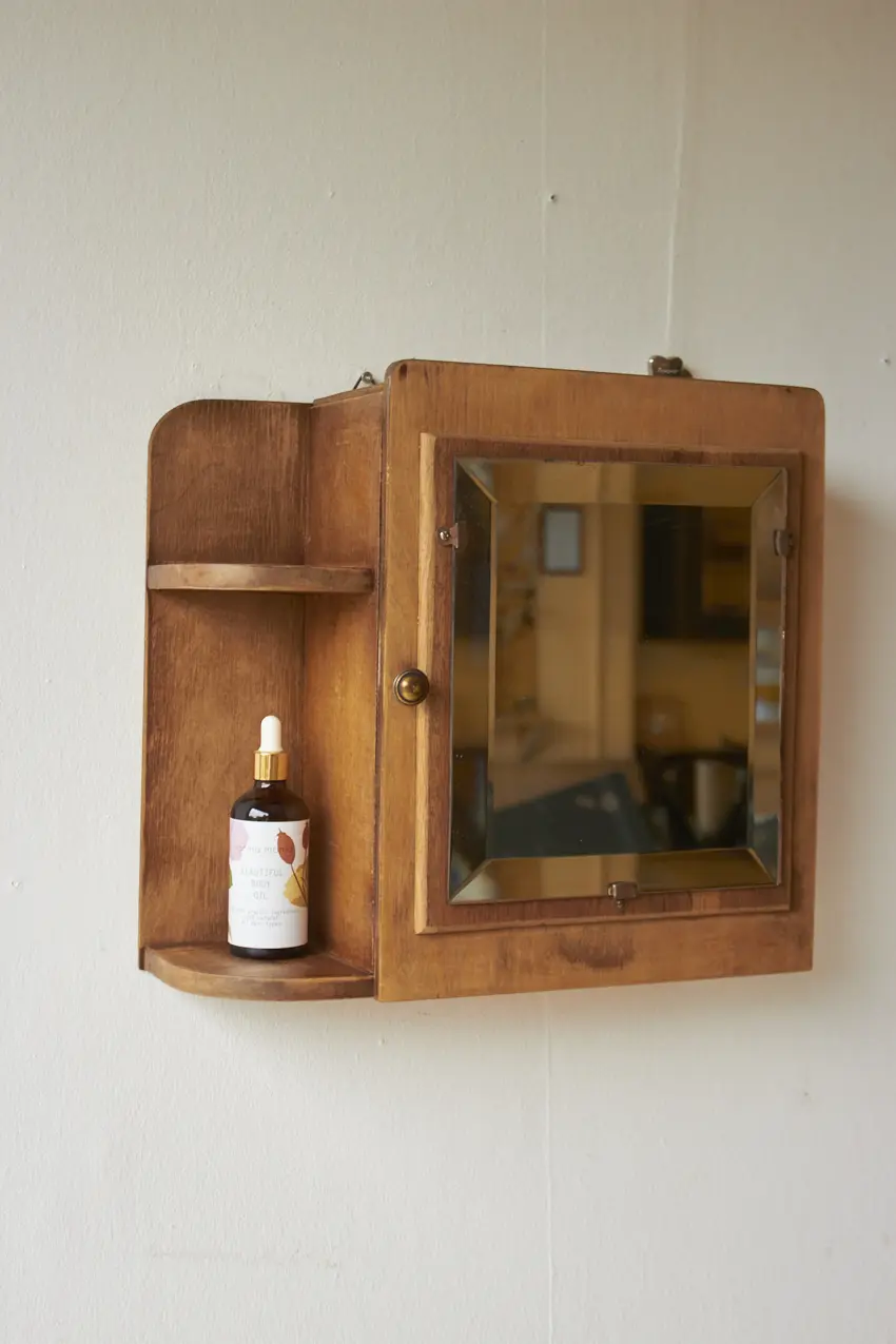 Dit specifieke hangkastje heeft een heel mooi vintage geslepen spiegel, met van die fijne vlekjes erop. Elk hangkastje is goed schoongemaakt, behandeld tegen houtworm en gerepareerd waar nodig. En nu is hij weer helemaal klaar voor een nieuwe plek! Elk stuk is uniek, met een eigen karakter en een flinke dosis gezelligheid.