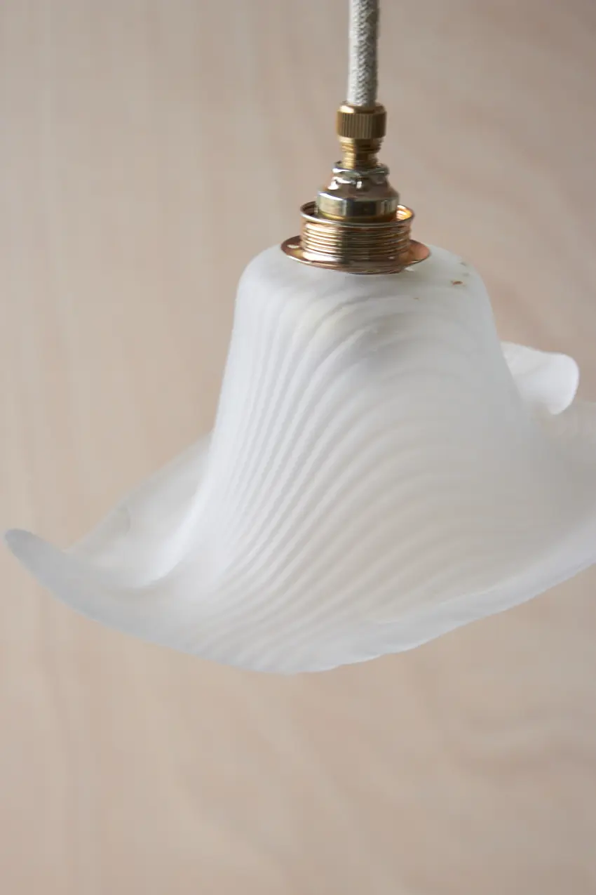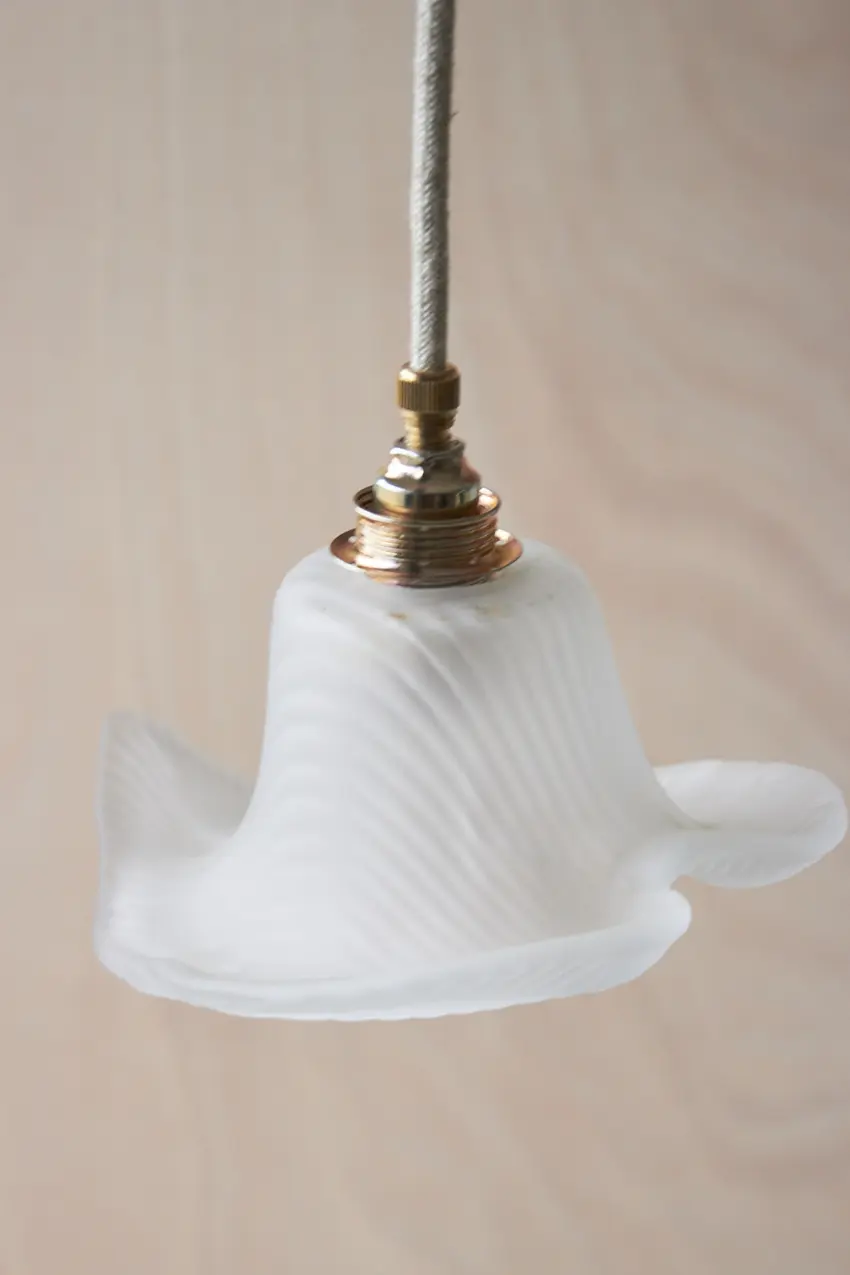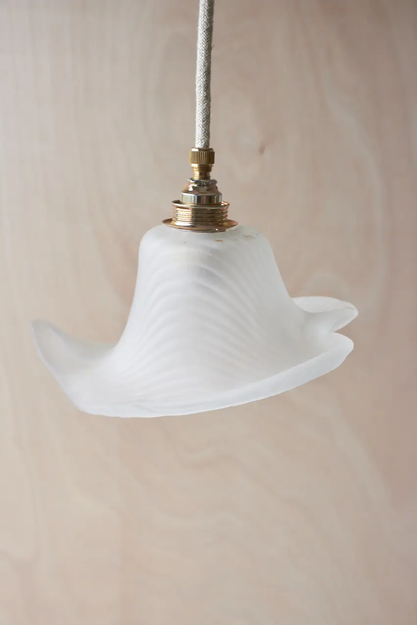 Al onze glazen lampenkapjes hebben we gevonden op diverse Franse en Belgische rommelmarkten en brocantes. Ze zijn allemaal uniek en geven zoveel sfeer! Een vintage hanglampje is een mooie toevoeging aan een ruimte en geeft meteen zoveel warmte, zelfs wanneer het lampje niet aan staat. We hebben ze allemaal een bijpassend snoer en fitting gegeven en nu zijn ze weer helemaal klaar voor een nieuwe plek in huis.