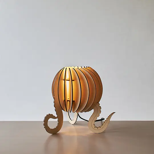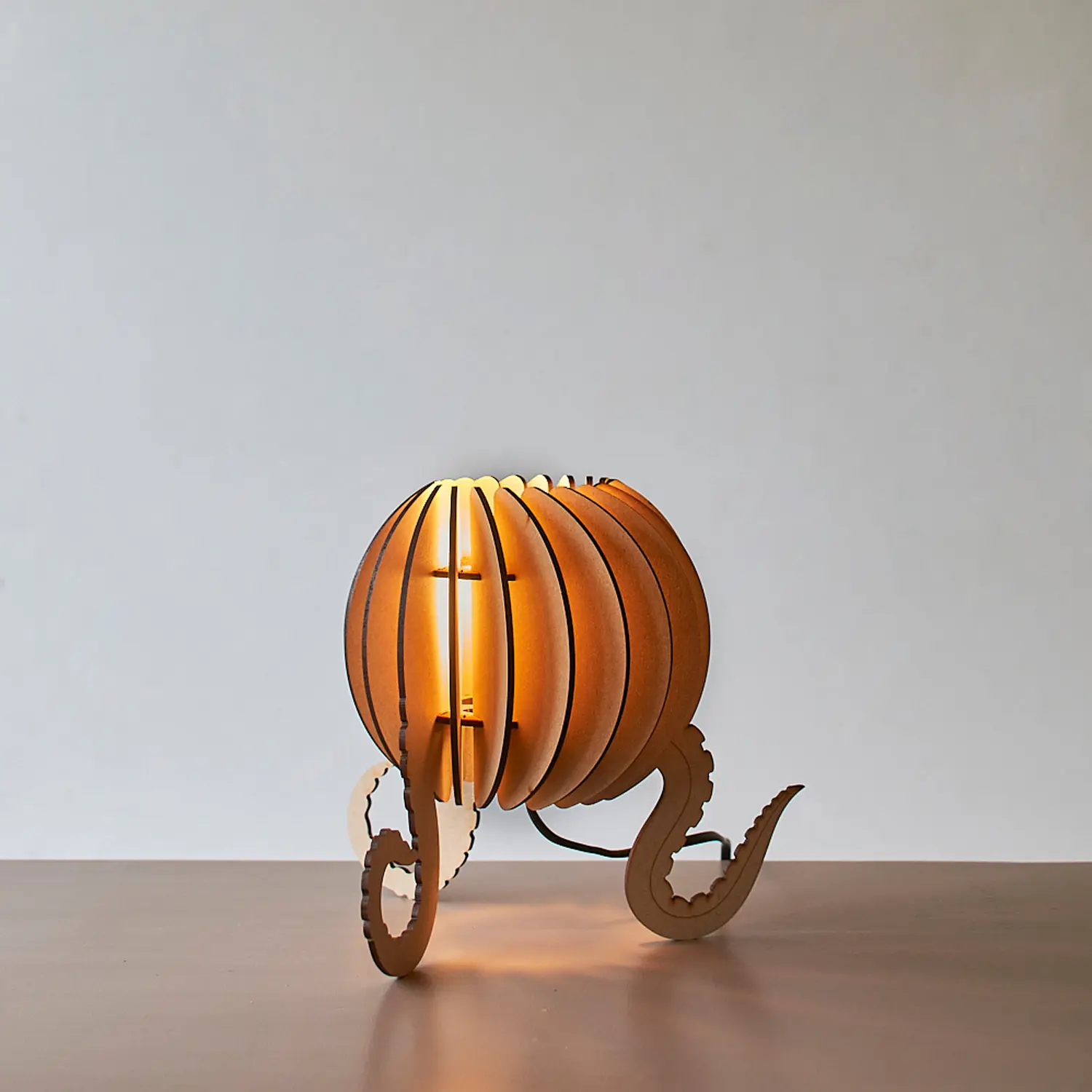 Maak van de kinderkamer een echte onderwaterwereld met dit grappige octopuslampje! Het tafellampje heeft 3 octopus tentakels en ziet er daardoor van elke kant net even anders uit. Hij is gemaakt van lasergesneden MDF en wordt geleverd als do-it-yourself pakket. Je zet hem gemakkelijk met de bijgeleverde instructie in een paar minuten in elkaar. Daarna plaats je de tentakels op de lamp en klaar is je echte octopus! Zelfs als de lamp uit staat is het een grappige toevoeging aan de kinderkamer.