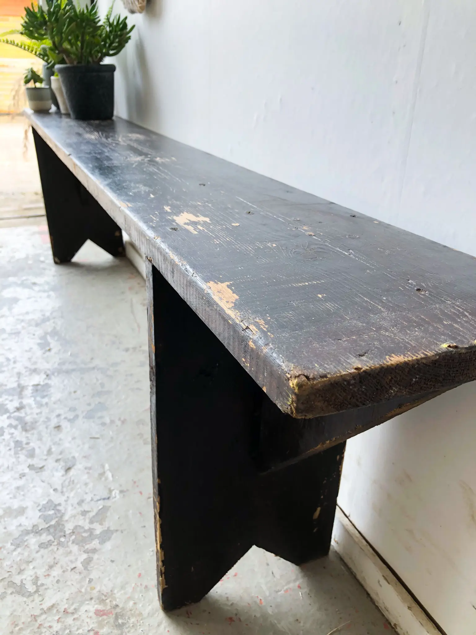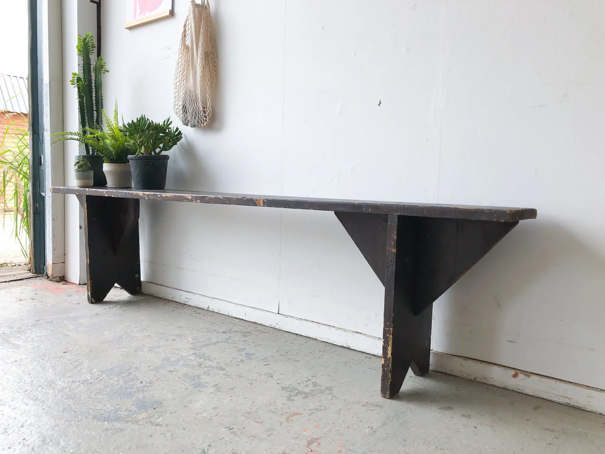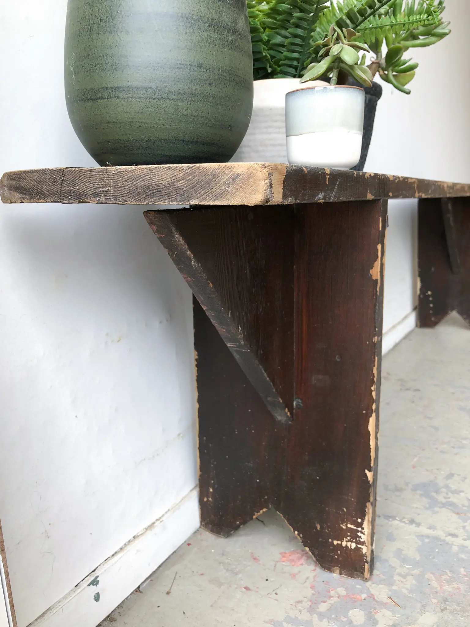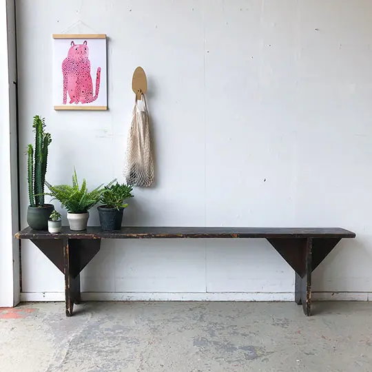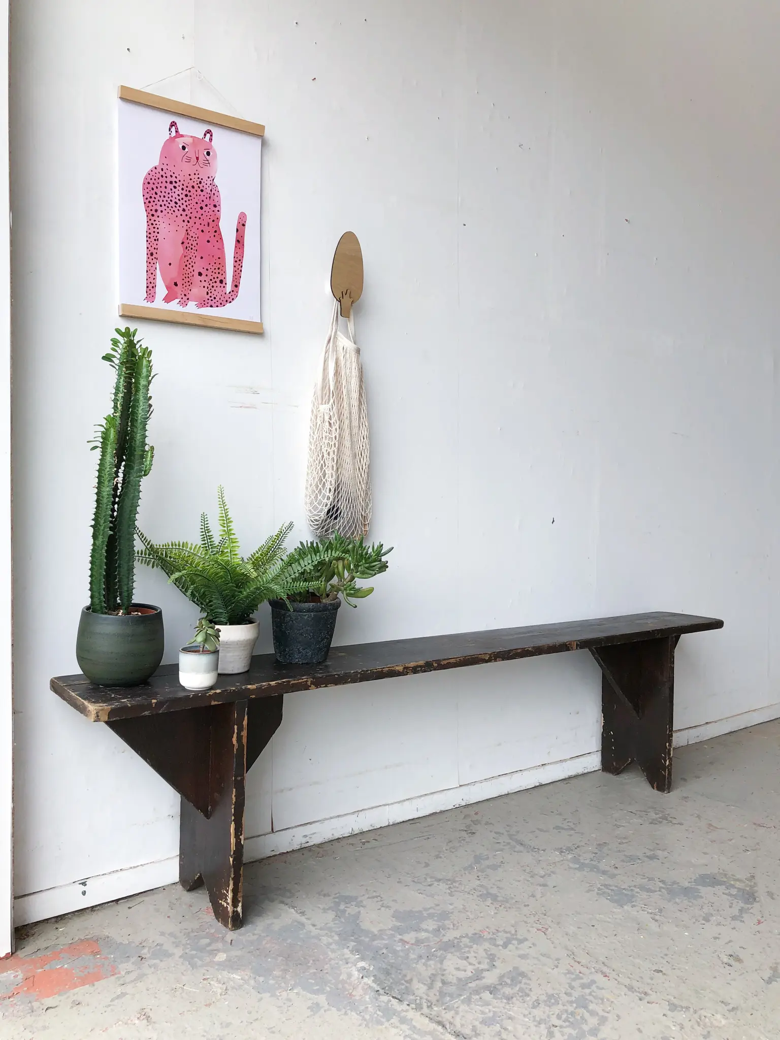 Deze leuke vintage bank komt uit België. En gelukkig hebben we er een stel van in kunnen slaan, want wat zijn ze leuk! We hebben het bankje helemaal nagelopen en gecheckt op stabiliteit. Gelukkig is hij in een nog erg goede staat en hoefde er verder niets aan te gebeuren. Daarna is het bankje goed schoongemaakt. Wat ons betreft, een geweldig bankje voor in de gang, om vetertjes op te strikken bijvoorbeeld. Klaar voor gebruik.