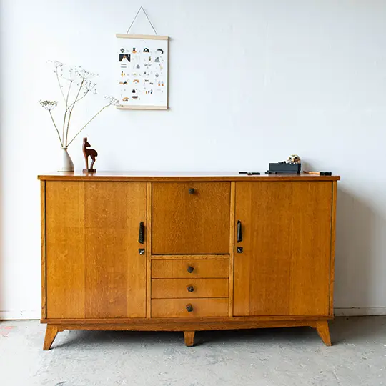 Brede houten retro commode