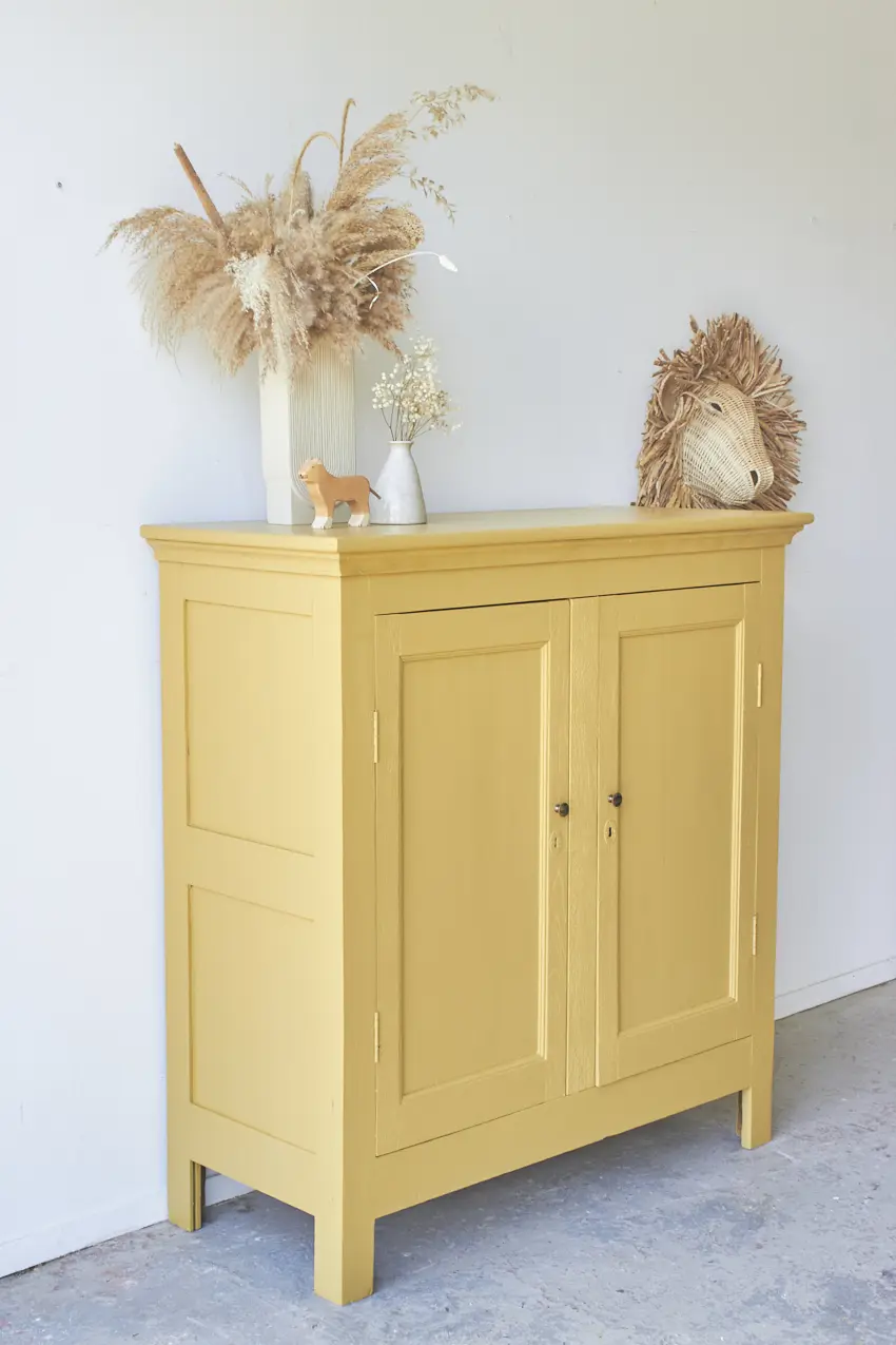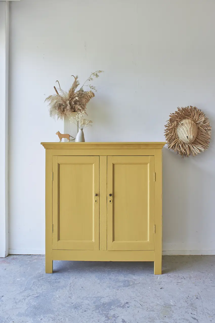 Wat een charmante halfhoge speelgoedkast in okergeel. Ben je op zoek naar een stijlvolle en praktische oplossing voor het opbergen van speelgoed of andere spullen die je graag uit je zichtveld houdt? Deze halfhoge speelgoedkast in een warme okergele kleur is de perfecte keuze. Met zijn klassieke ontwerp en functionele indeling voegt hij niet alleen charme toe aan de kinderkamer, maar zorgt hij ook voor orde. Saffraan staat deze kast toch fantastisch?