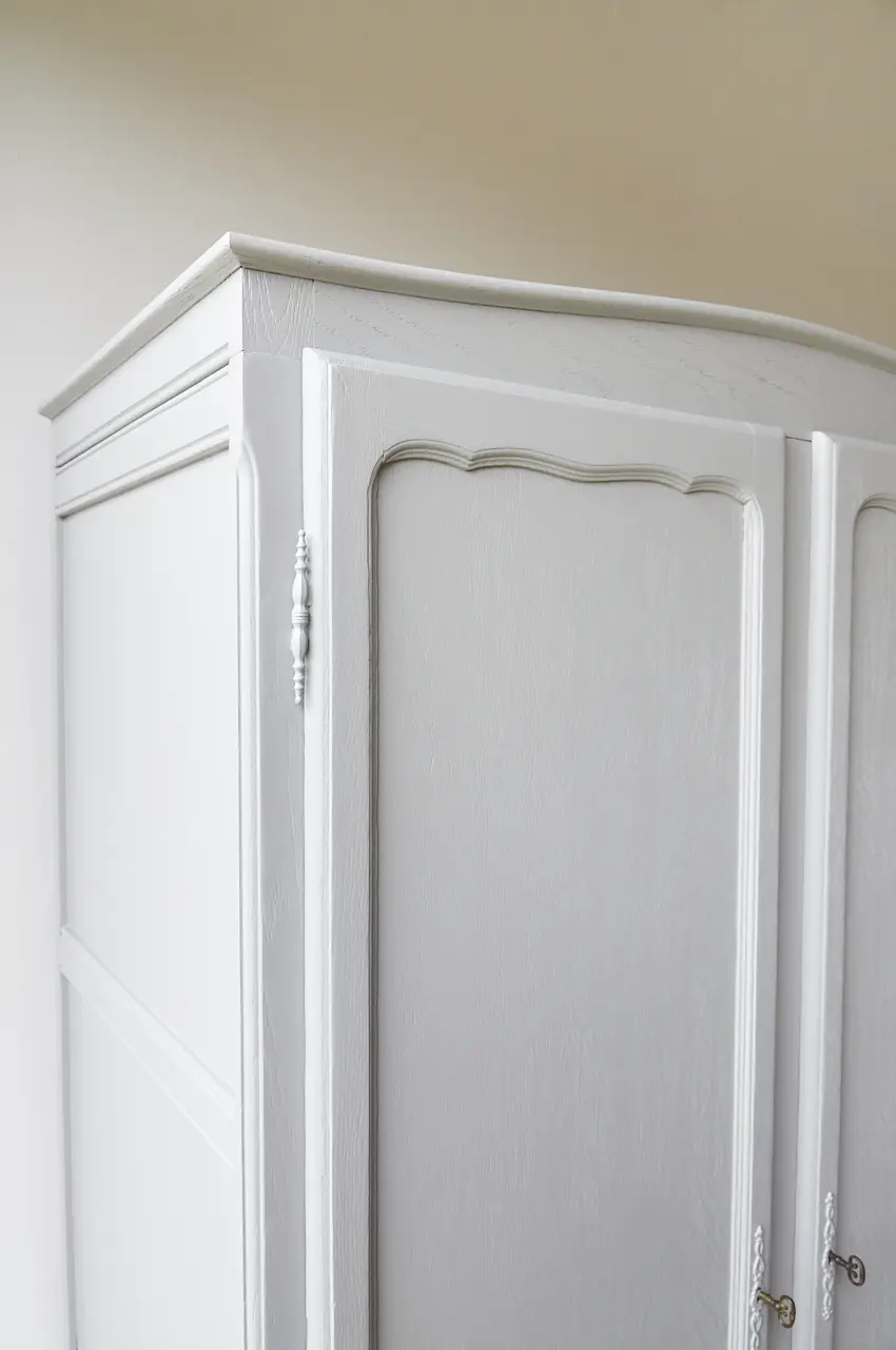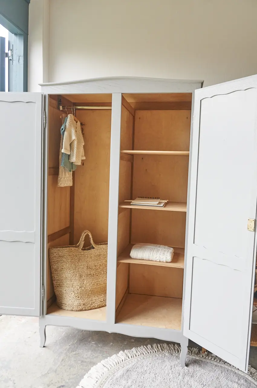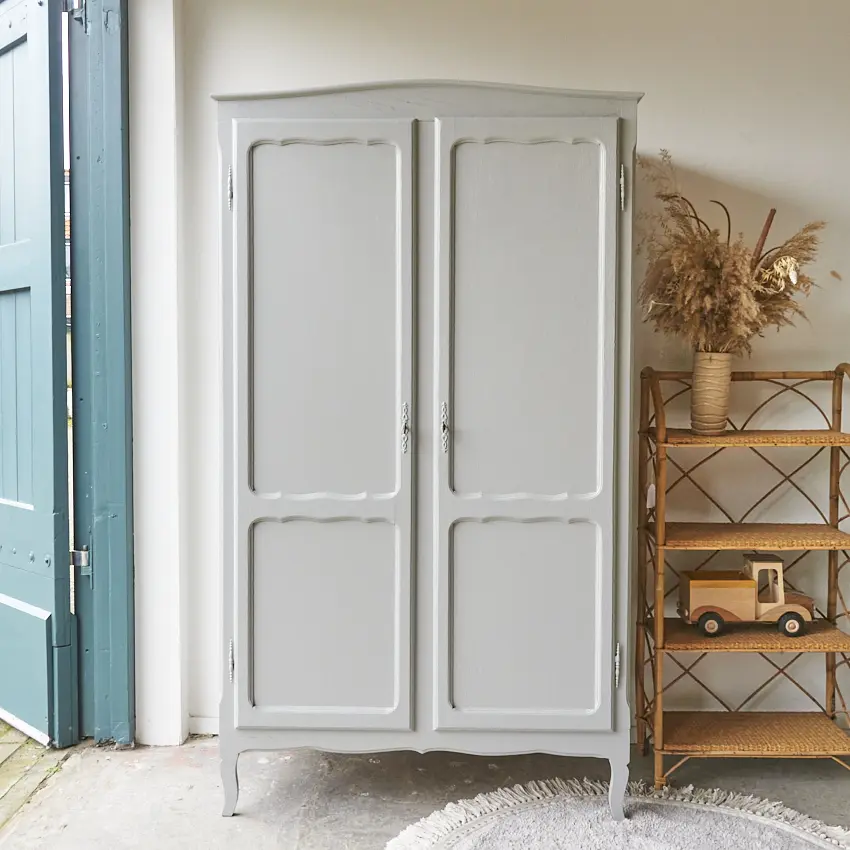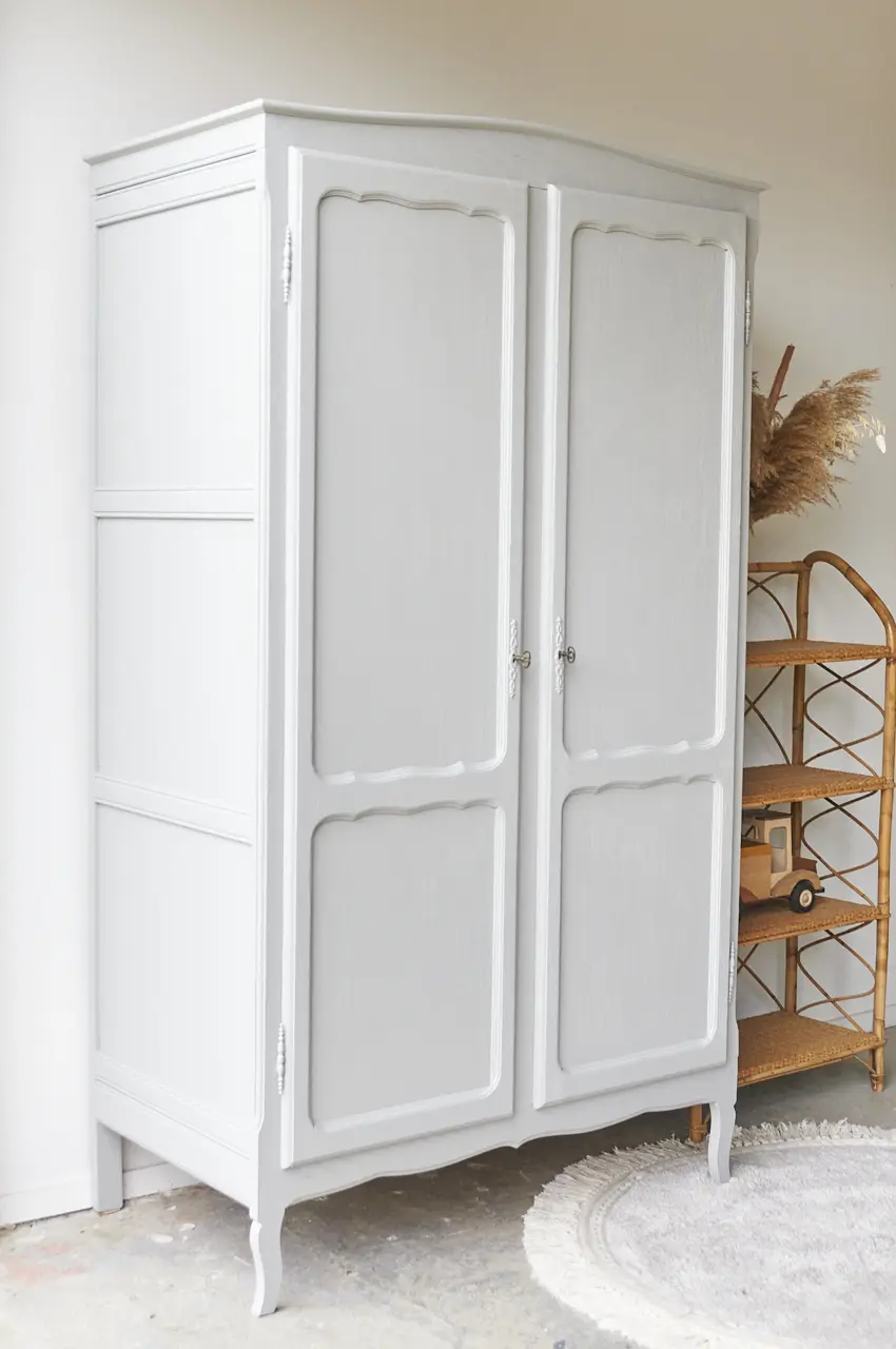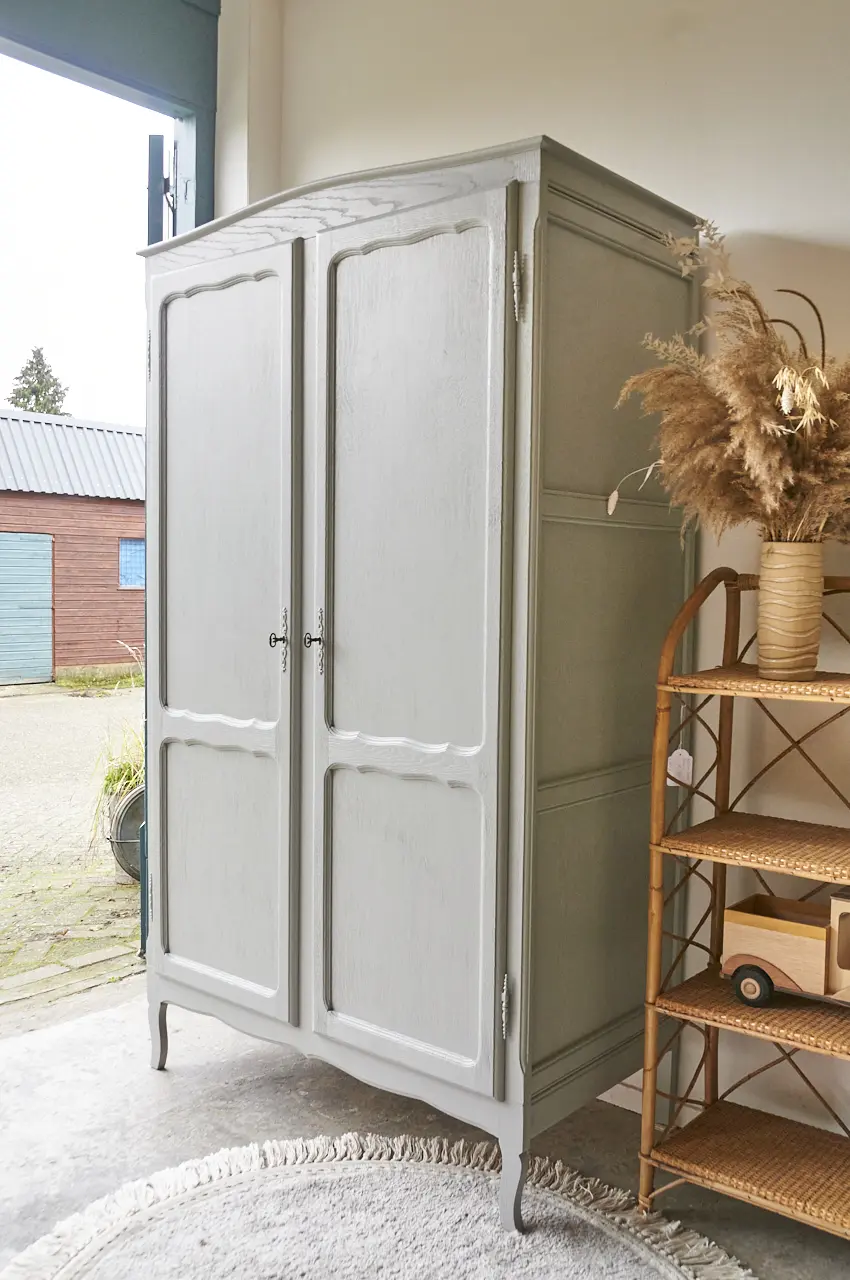Wat zijn ze toch altijd fijn, deze kasten. Allemaal net een beetje anders. Niet te groot, maar wel groot genoeg voor alle kinderkleding. Nadat hij terugkwam van de zandstralers hebben we hem grondig schoongemaakt en behandeld tegen houtworm. De indeling is orgineel, hij heeft een fijne roede en 3 legplanken. De deuren sluiten met de originele sleutels. We hebben hem uiteindelijk onze kleur Maan gegeven, een echte allemansvriend. Het was even zoeken, naar een mooie grijstint. Dit is hem geworden! Maan is een heel lichtgrijze kleur, maar wel met een fijne warme ondertoon. En dat maakt hem heel speciaal. Meubels in Maan stralen een bepaald soort rust uit, heerlijk! Een kleur die goed combineert met iedere andere kleur uit onze collectie. Ideaal! Nu is deze kast helemaal klaar voor een nieuwe plek!