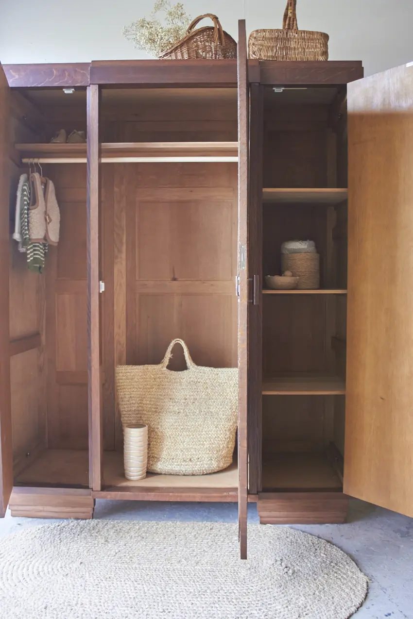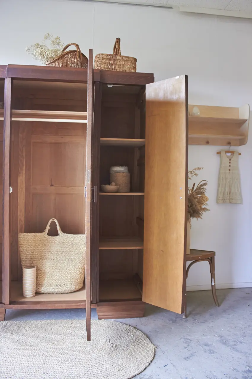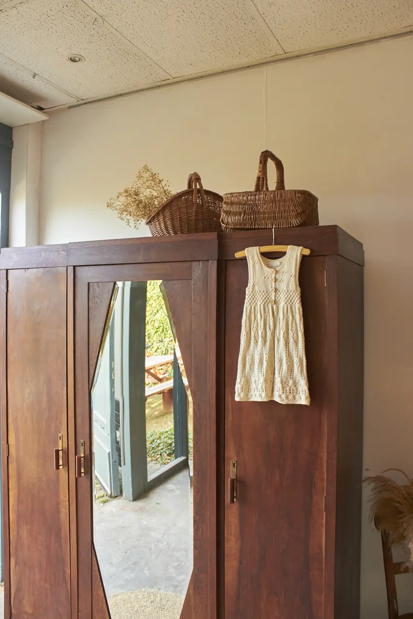 Er is heel veel opbergruimte om kleding op te hangen en neer te leggen! Alle deuren sluiten met een magneetje. Wat zal hij mooi staan in huis. Hij is weer helemaal klaar voor een nieuwe plek!