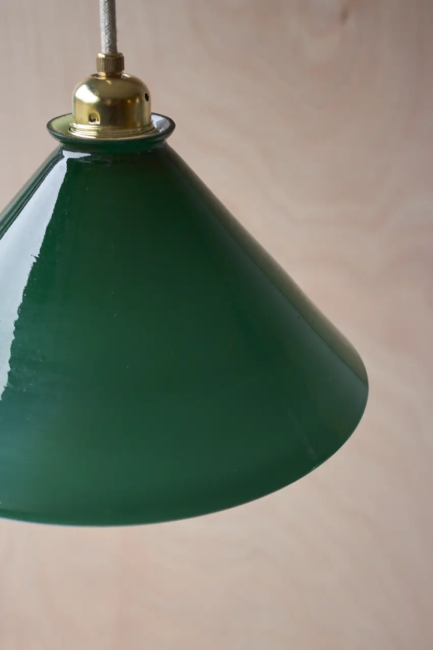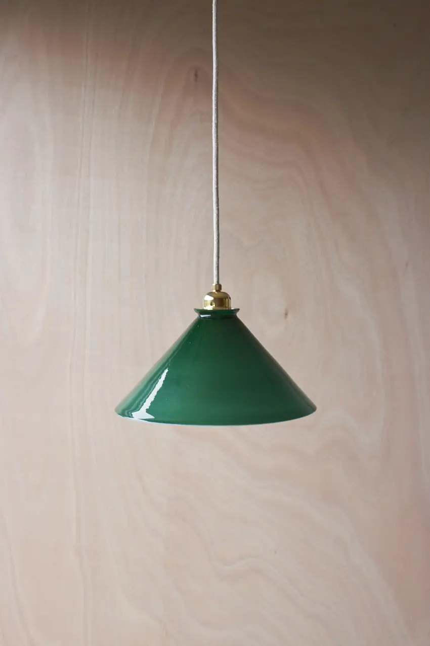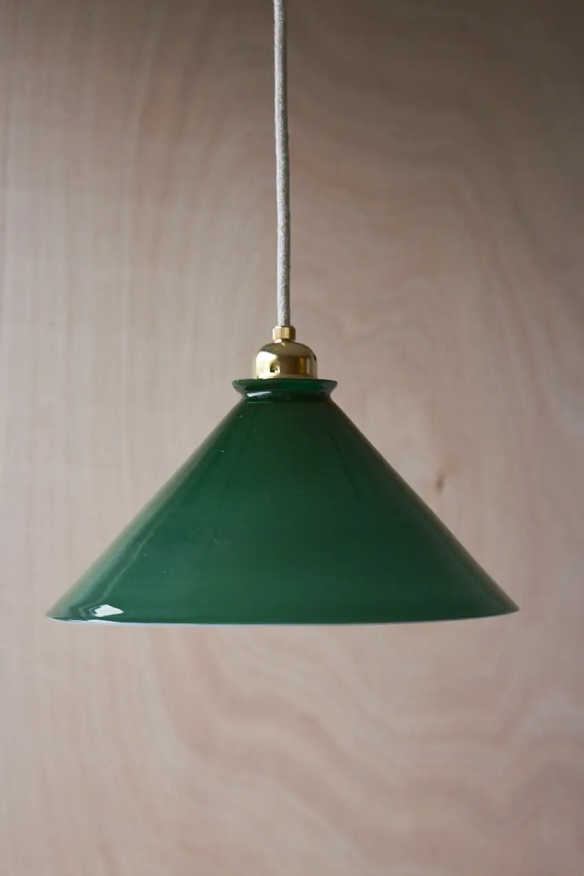 Deze diep groene glazen hanglamp is een echte blikvanger. Met zijn simpele klassieke ontwerp en zijn prachtig groene kleur past deze hanglamp vrijwel overal bij. Een fijn lampje voor in je leeshoek? Een sfeervol nachtlampje of juist die extra lichtbron voor in de keuken? Dit lampje past overal.