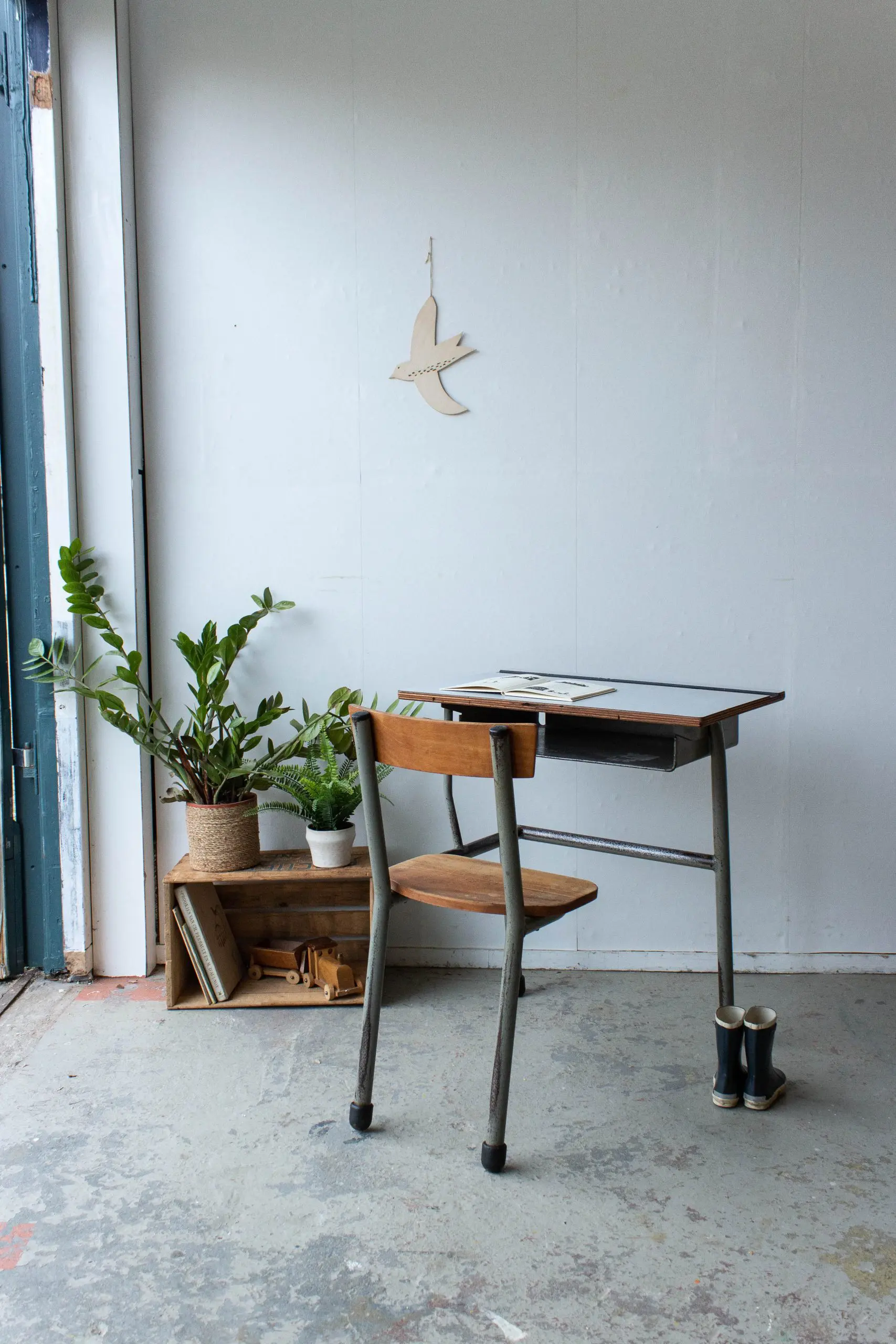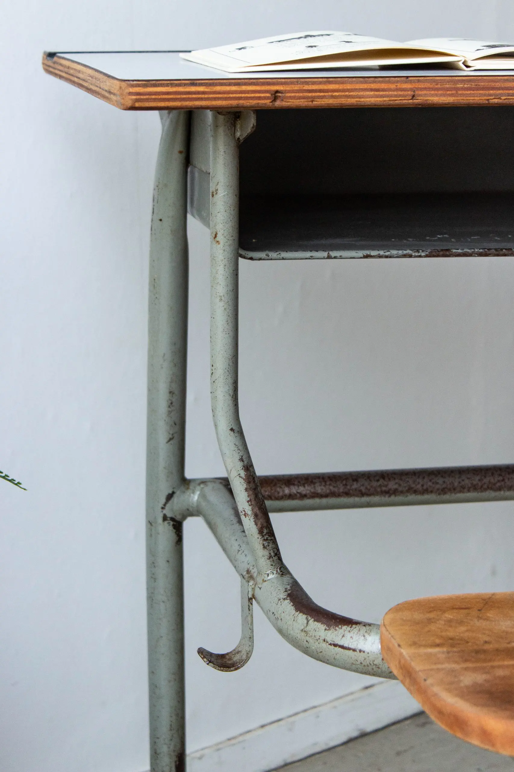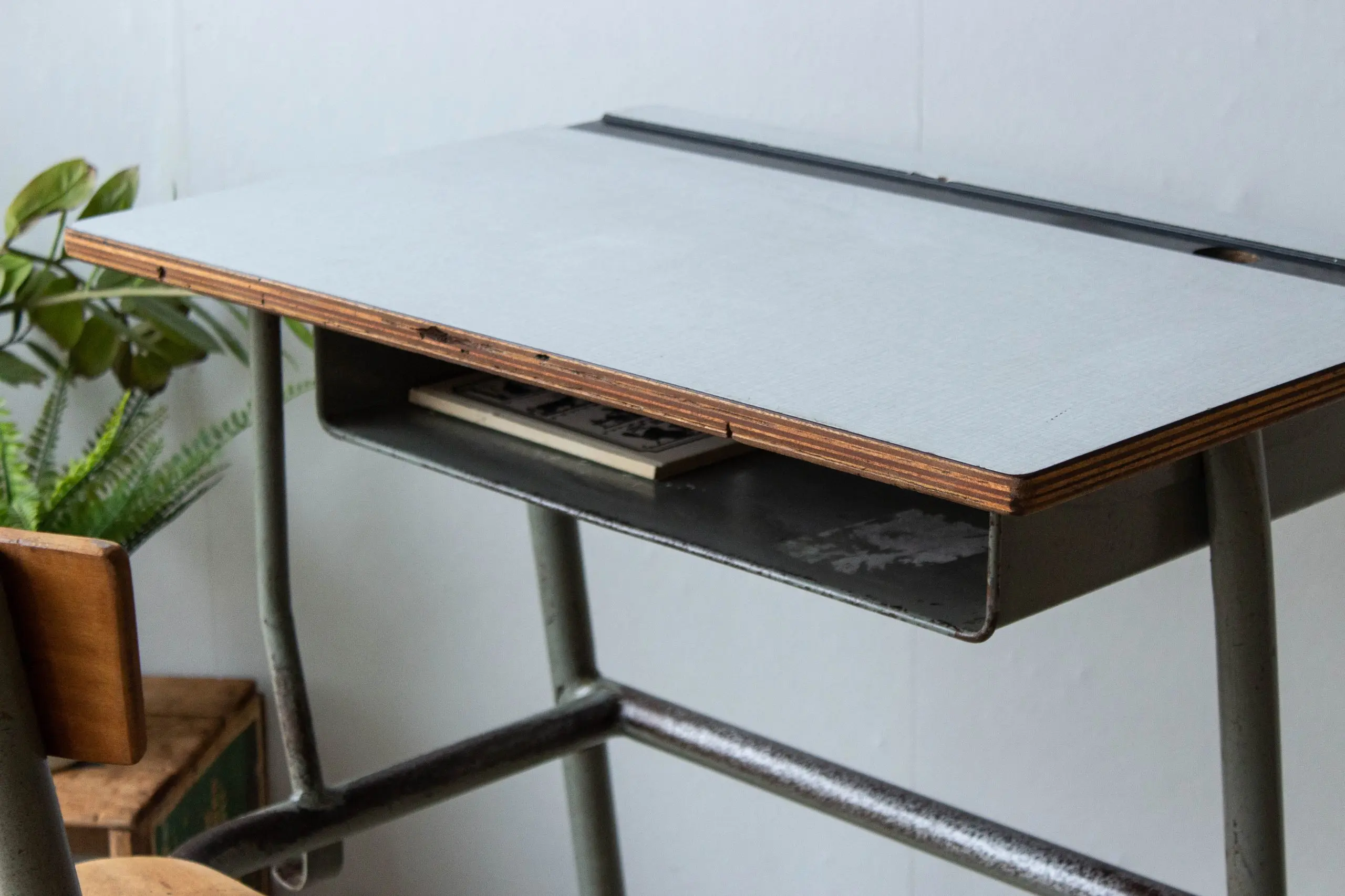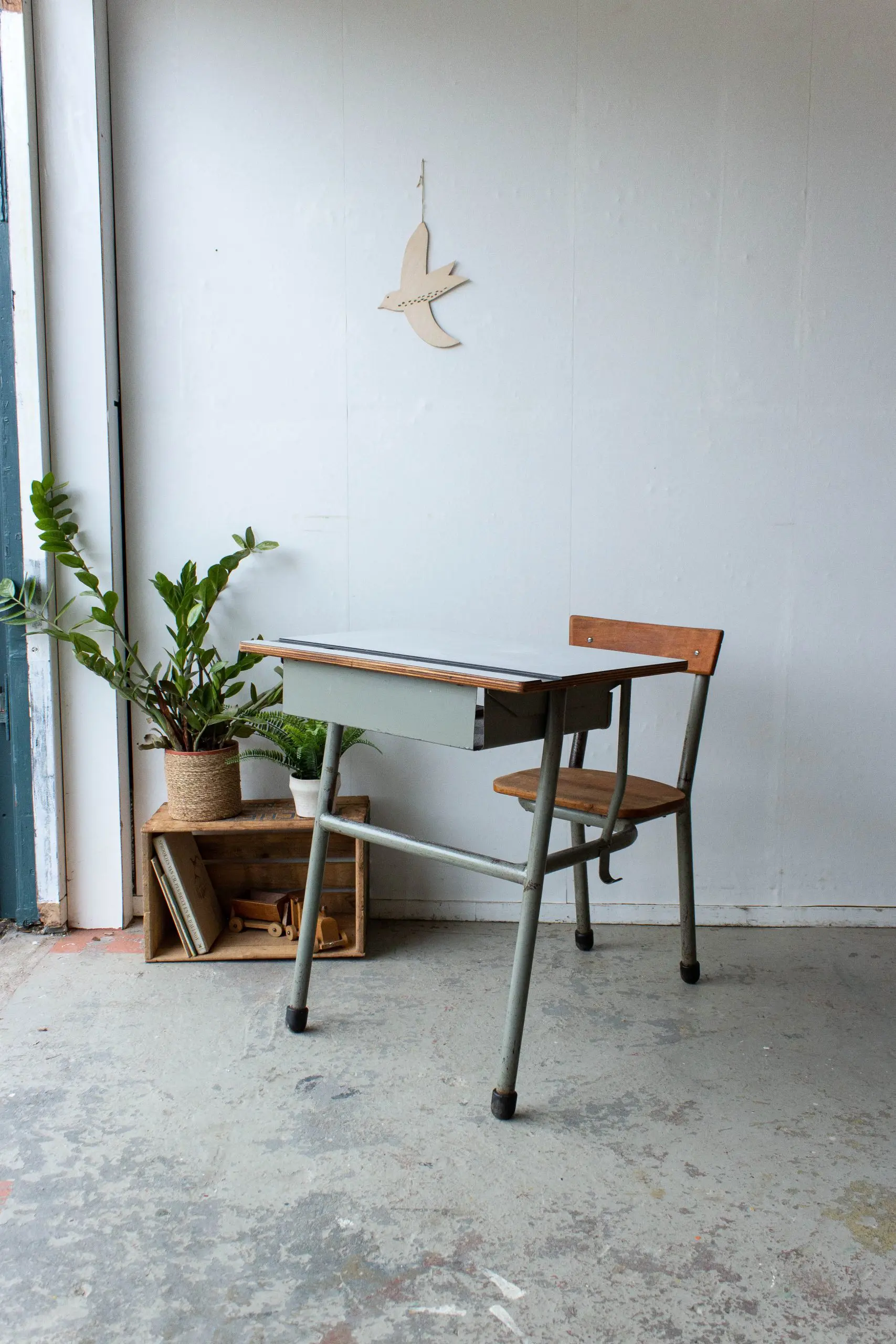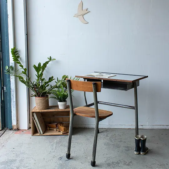 Wat een leuk eenpersoon schoolbankje! We hebben het Franse bankje goed schoongemaakt en nagelopen. Hij is in een nog erg goede staat en kan nog járen mee! Heel handig is de opbergruimte onder het werkblad. Ideaal om teken- en knutselspul in op te bergen! Het schoolbankje heeft een mooie hoogte voor kinderen vanaf ongeveer 4 jaar.