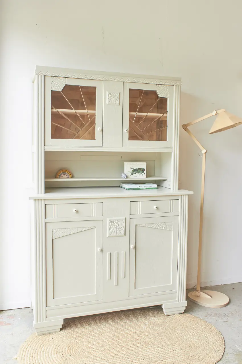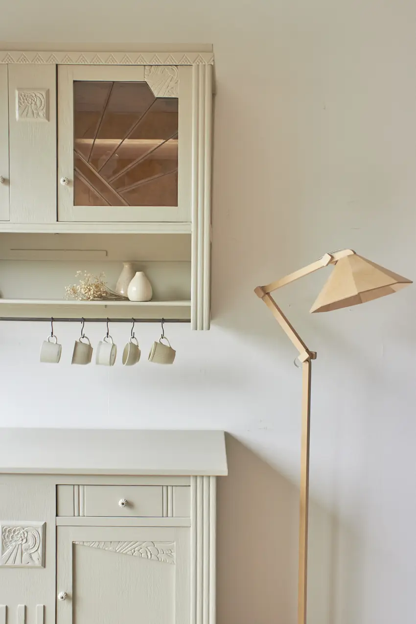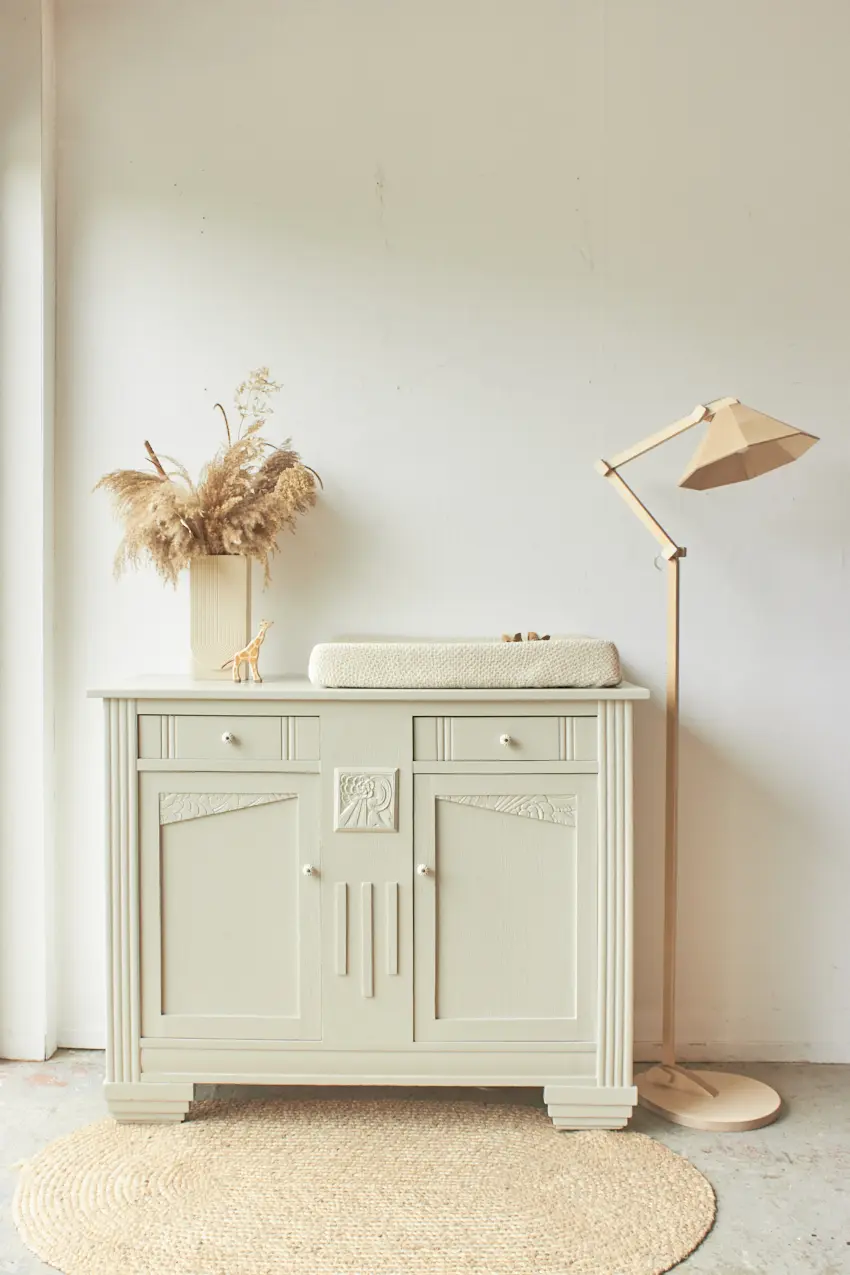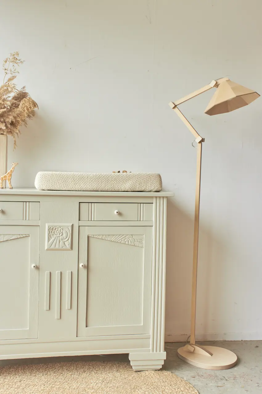 Ze is zo mooi geworden in deze off white kleur ‘Linnen’ Het resultaat mag er zijn! Helemaal klaar voor gebruik! Zo fijn samen met het jute vloerkleed en de prachtige staande lamp van Henk.