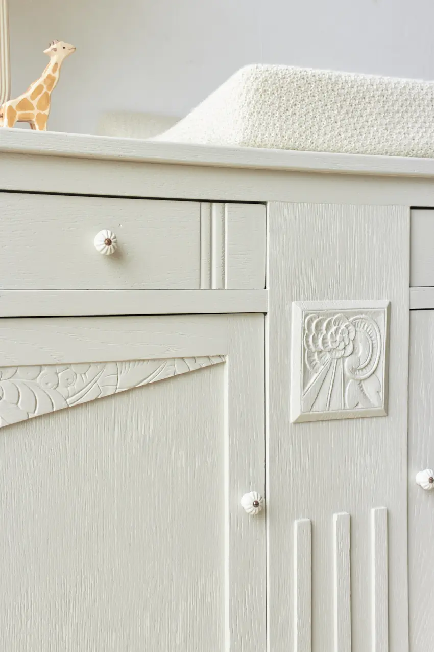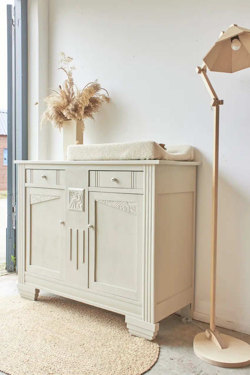 Zoveel mooie details heeft deze vintage commode in een off white kleur. Oorspronkelijk was dit de onderkant van een kast die jaren lang in een Franse klooster heeft gestaan. Wij hebben er een commode van gemaakt. Het was echt een feestje om deze kast op te knappen. Nu helemaal klaar voor een nieuwe plek.